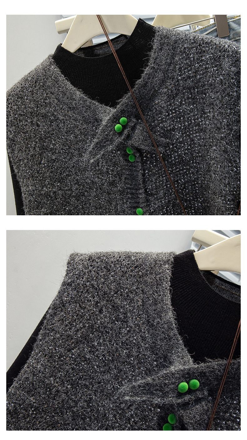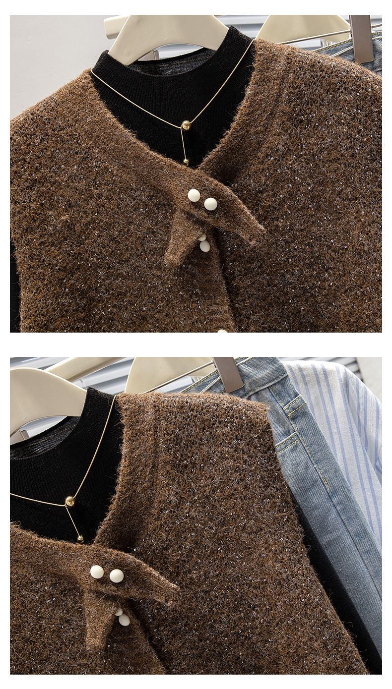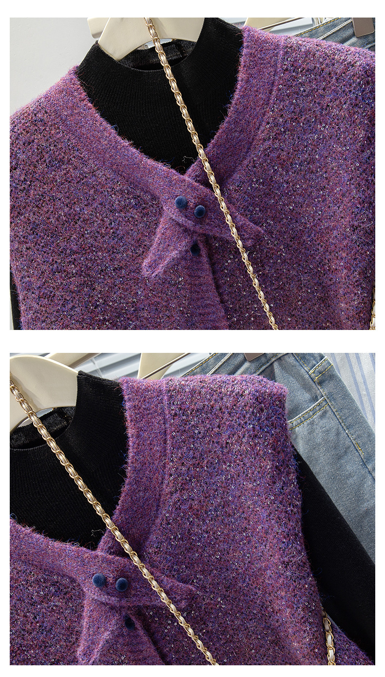 丁摩 蝴蝶领亮闪闪马甲女韩版秋冬新款针织坎肩时髦叠穿款5ZF-510024