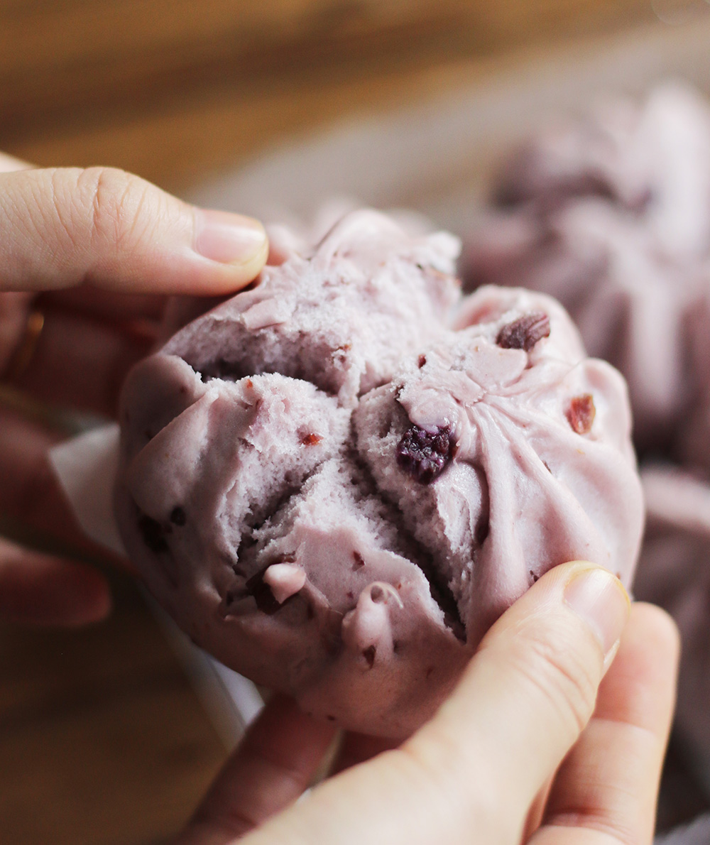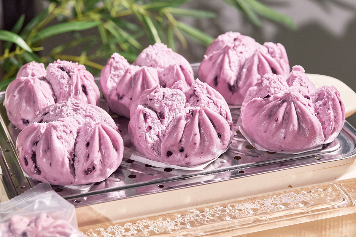 紫薯开花馒头:小麦粉、紫薯、白砂糖、饮用水、紫薯粉、植物油、酵母粉