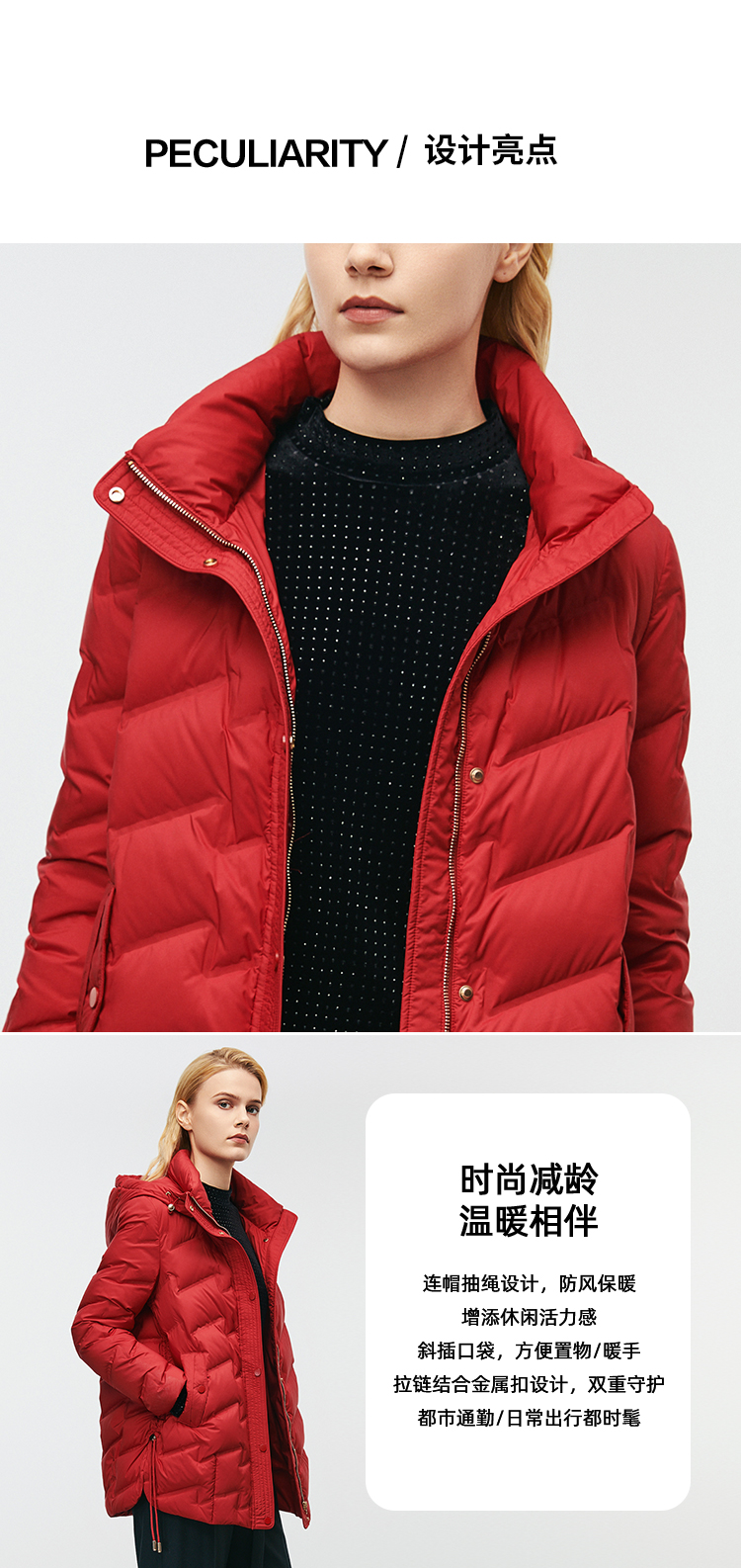 EITIE爱特爱冬季新款时尚舒适茧型保暖简约百搭连帽羽绒服8011721