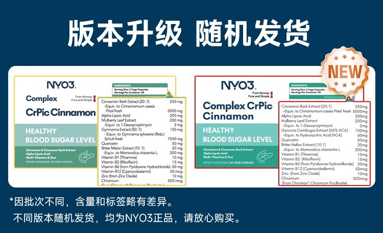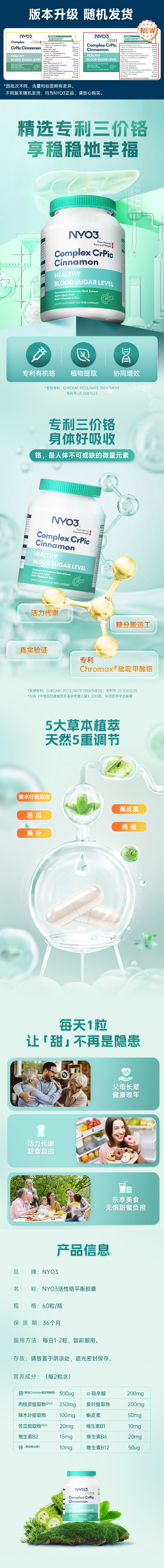 NYO3诺威佳官方旗舰店血糖平胶囊铬元素吡啶甲酸铬三价铬天然口服胰素苦瓜素非皂苷60粒