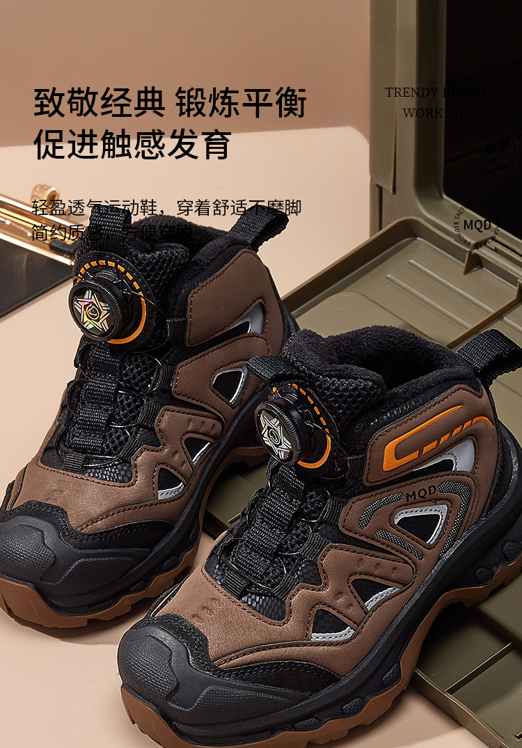 【ZY马骑顿】马骑顿男童秋季旋转纽扣篮球鞋秋冬加绒保暖软底儿童运动鞋