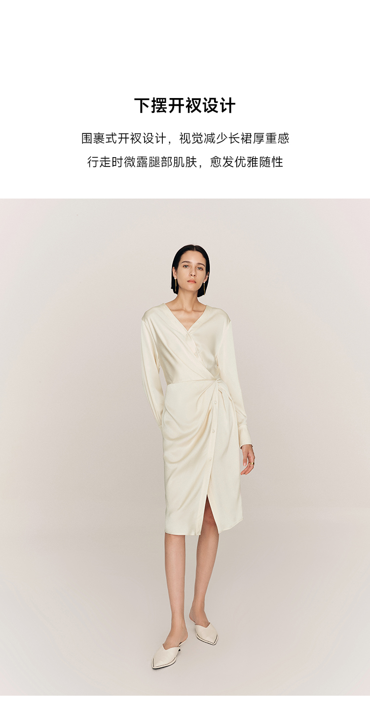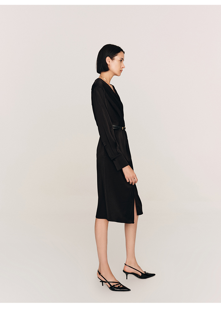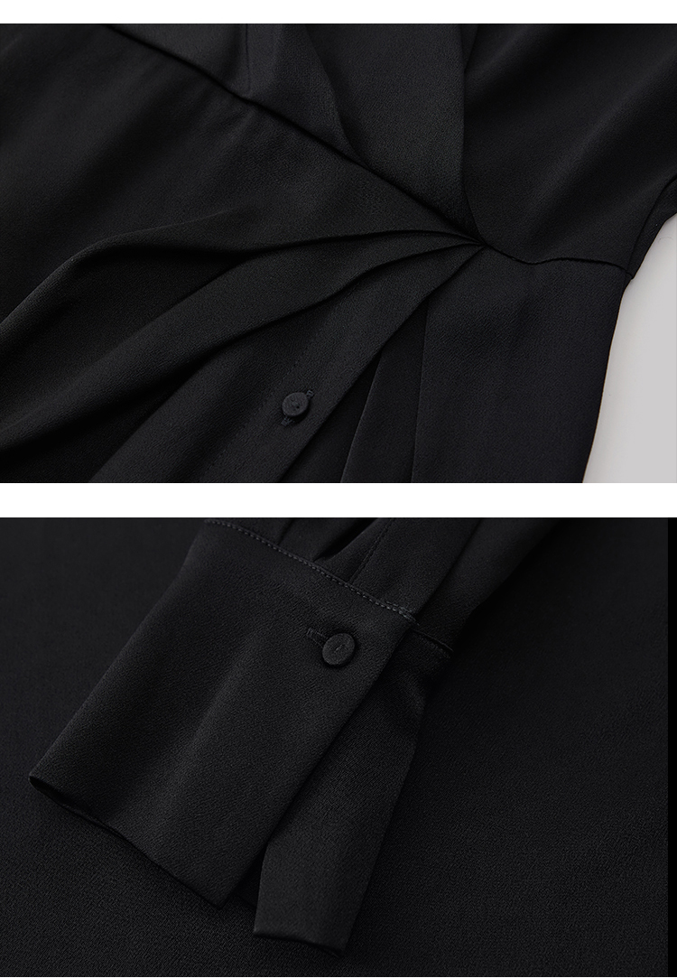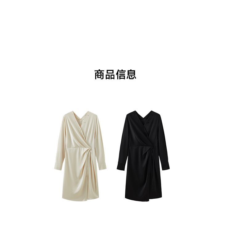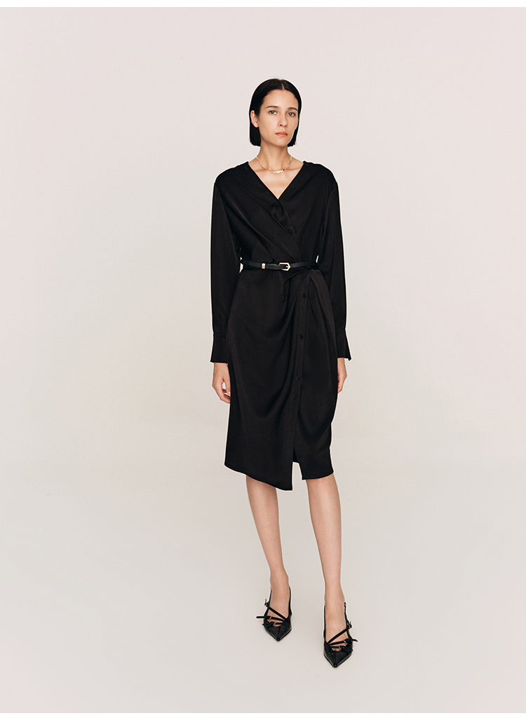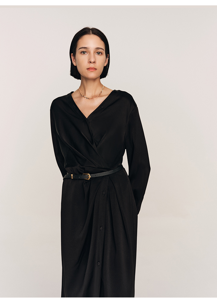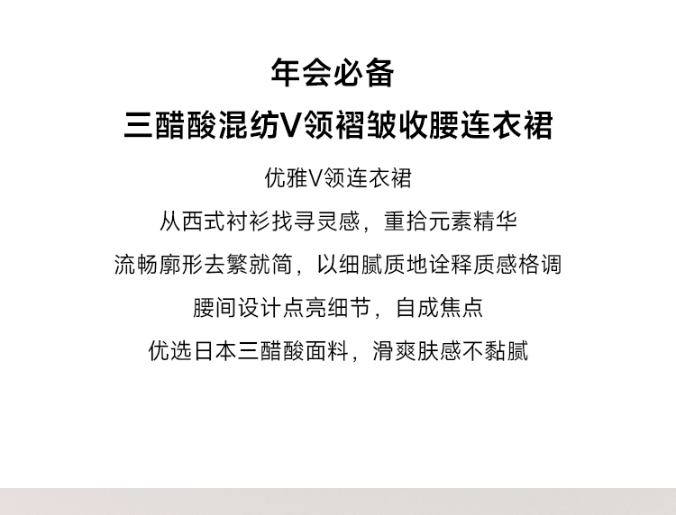 年会必备 三醋酸混纺V领褶皱收腰连衣裙FD477323N