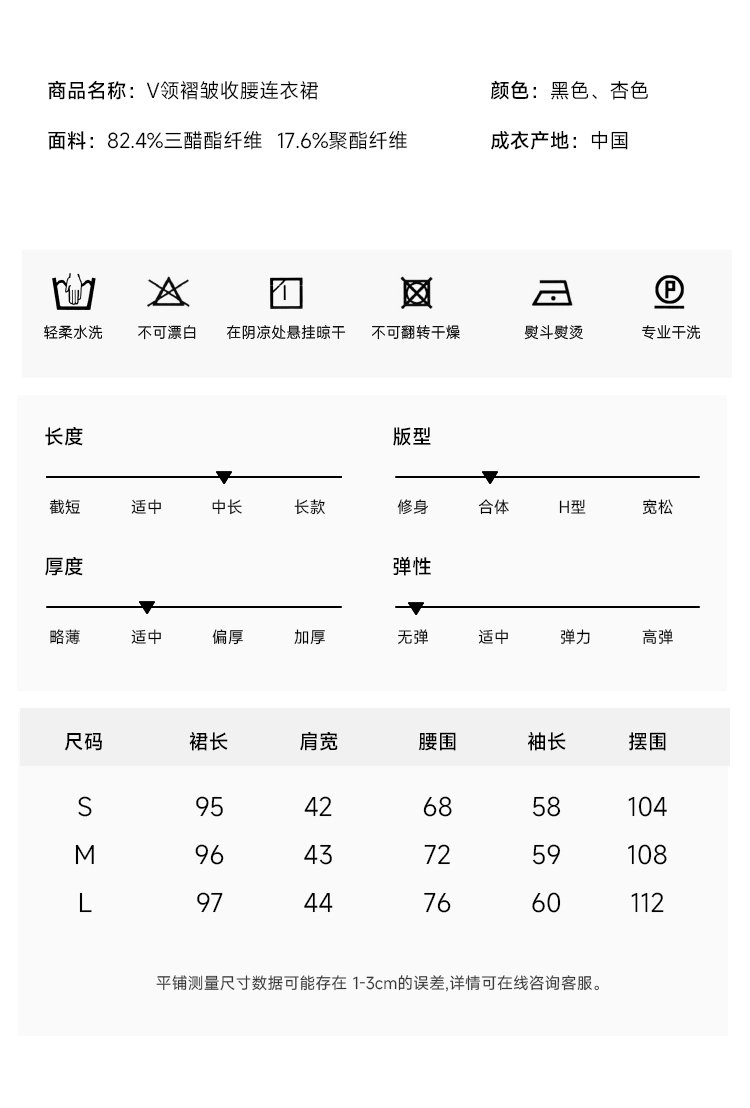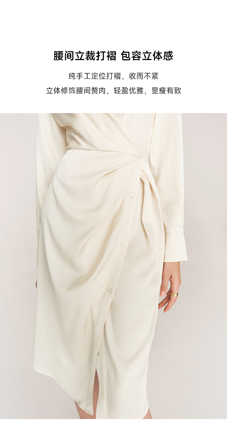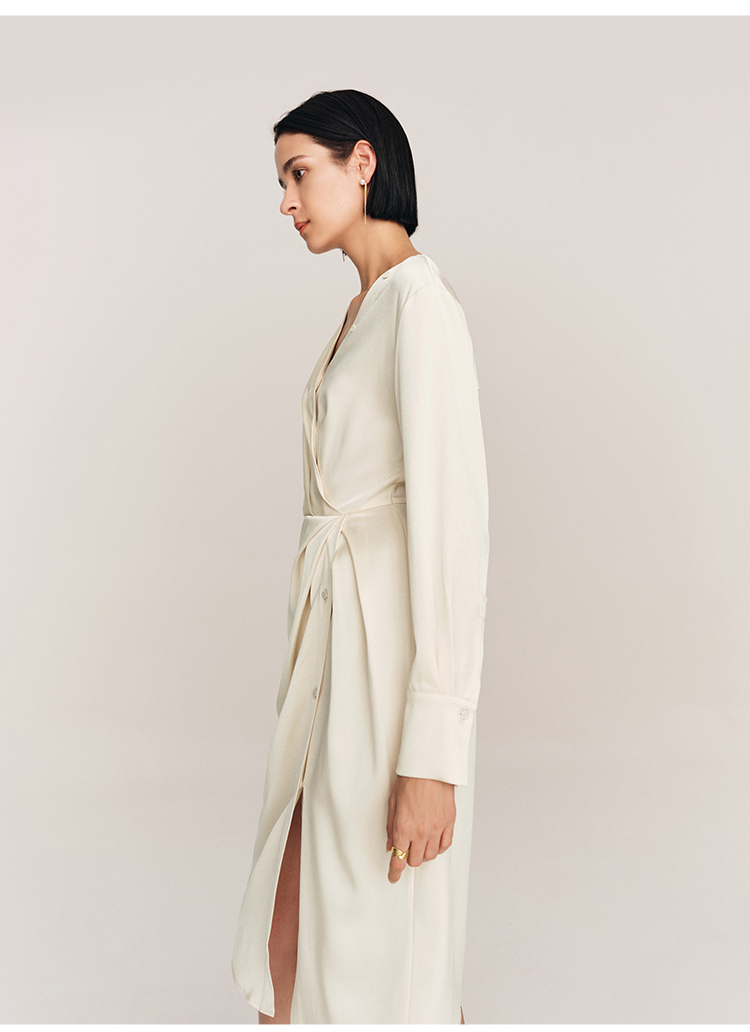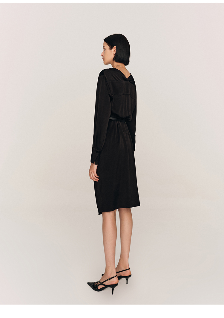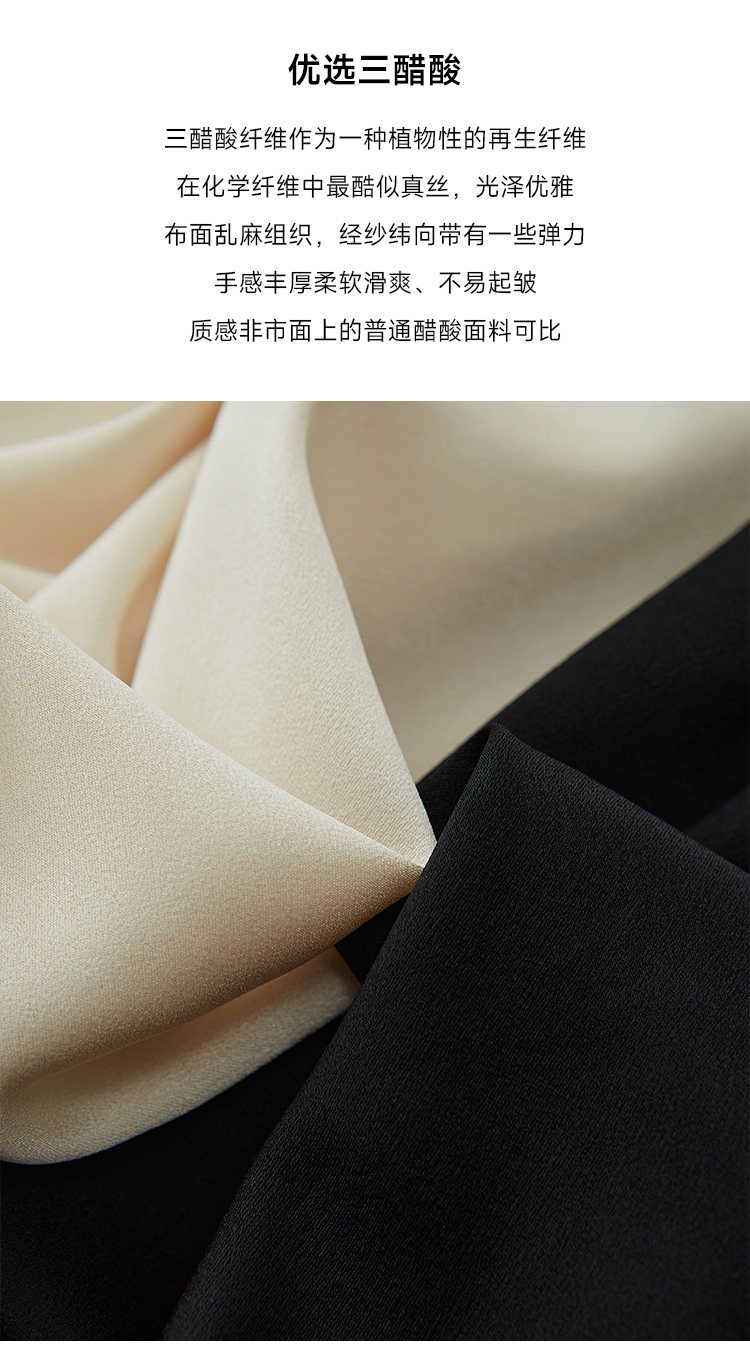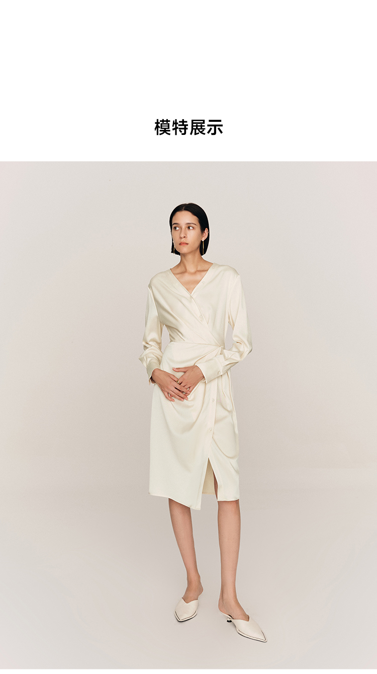 年会必备 三醋酸混纺V领褶皱收腰连衣裙FD477323N