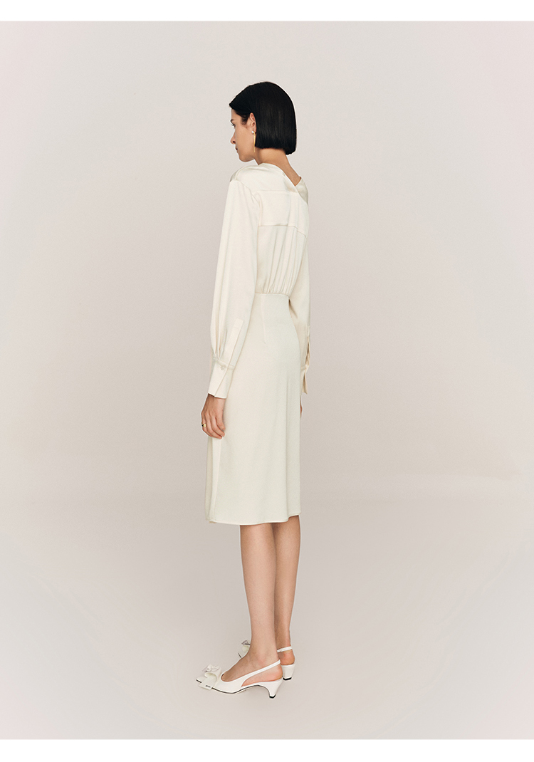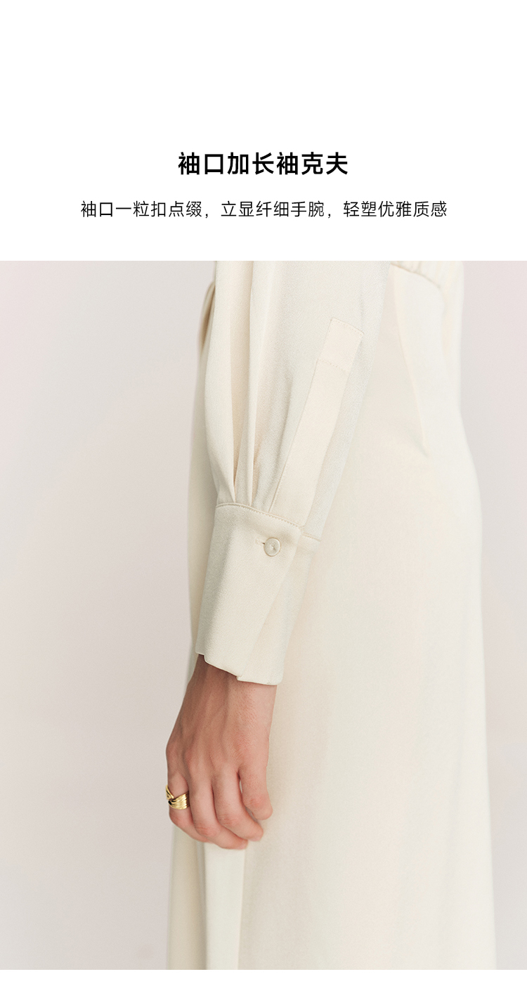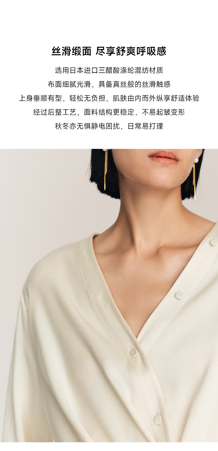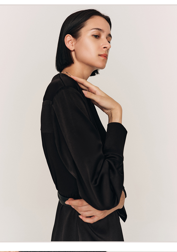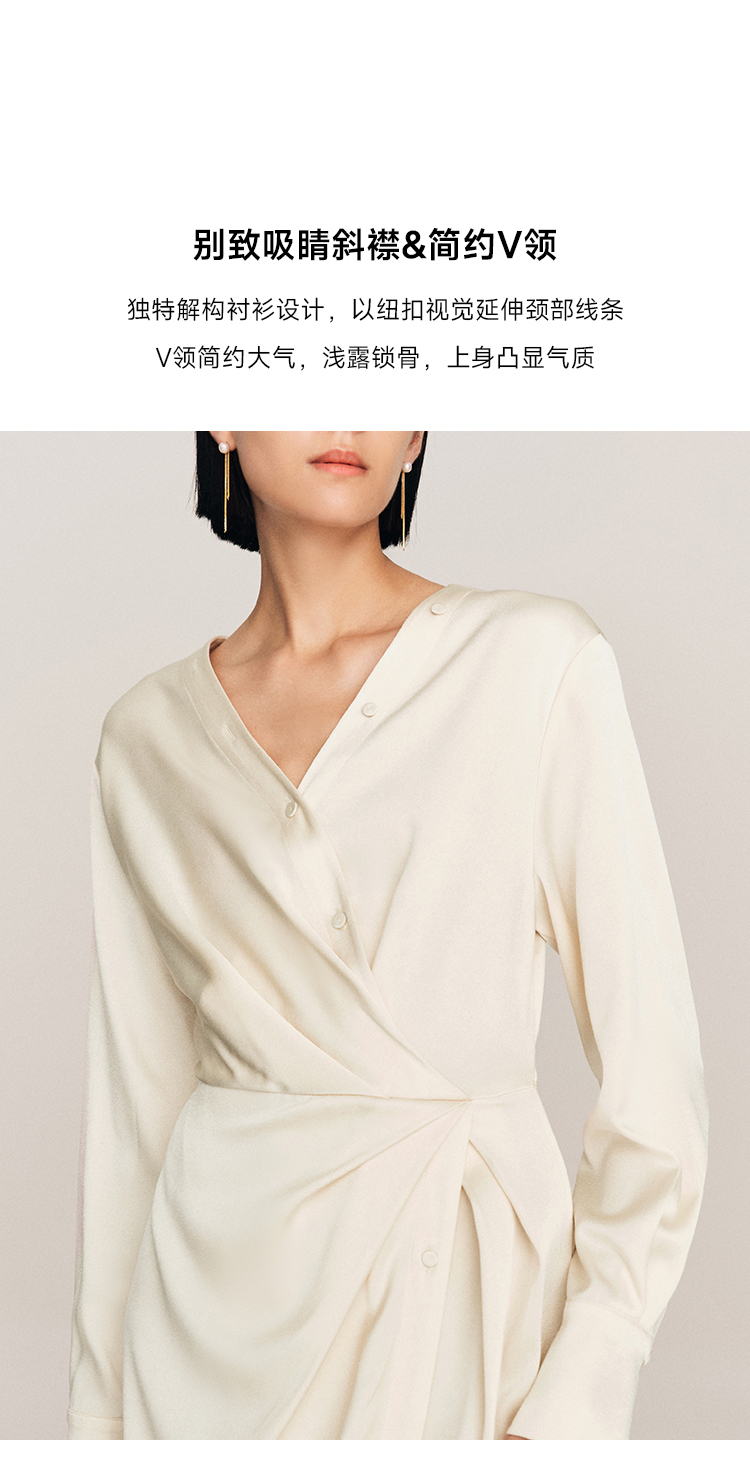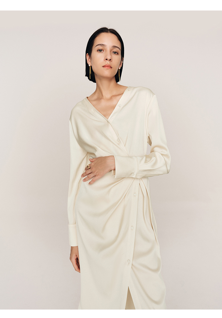 年会必备 三醋酸混纺V领褶皱收腰连衣裙FD477323N