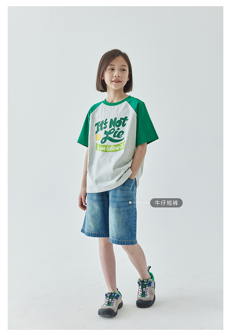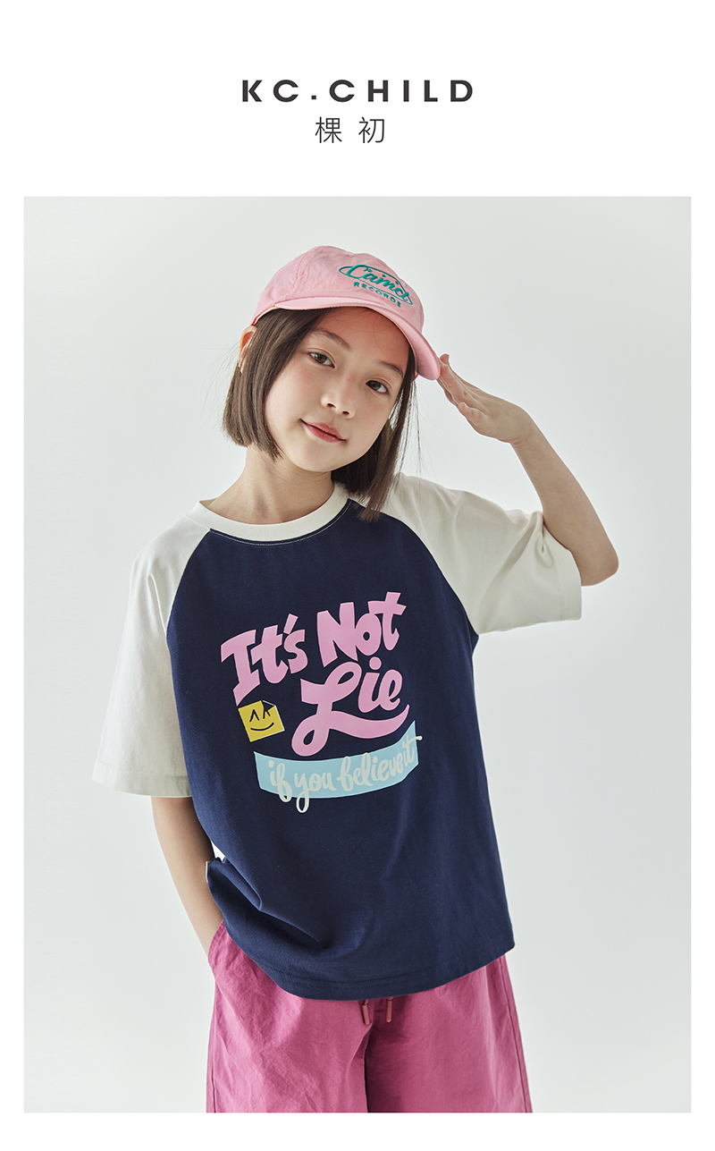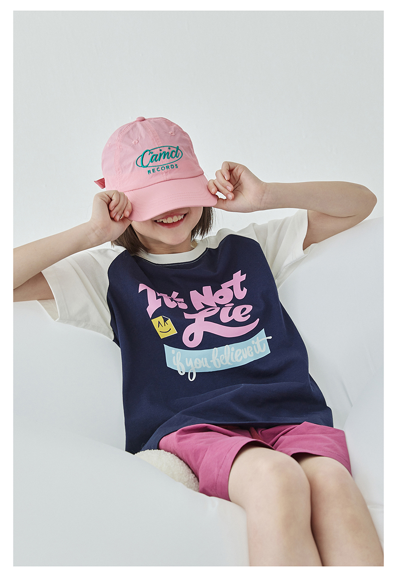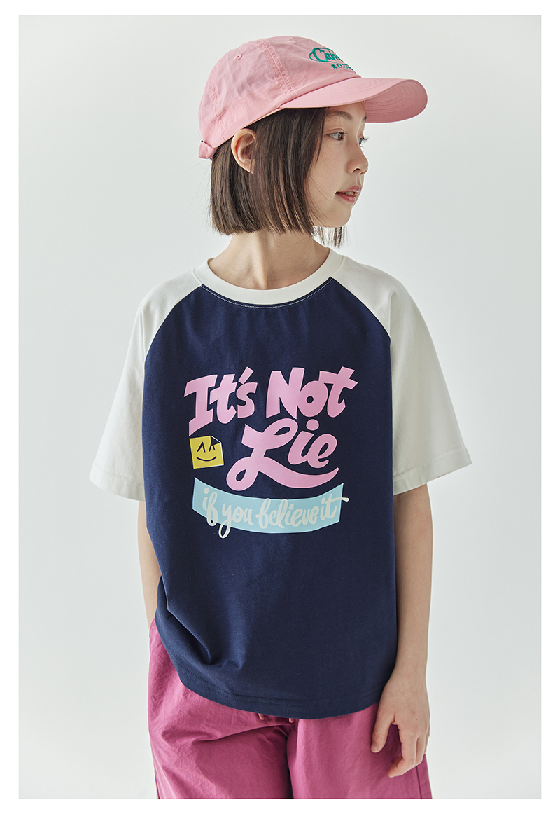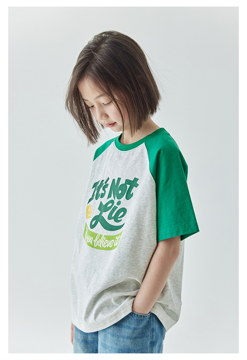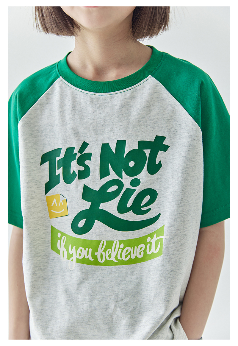 棵初夏季款儿童美式复古撞色短袖T恤亲子款字母印花插肩袖上衣