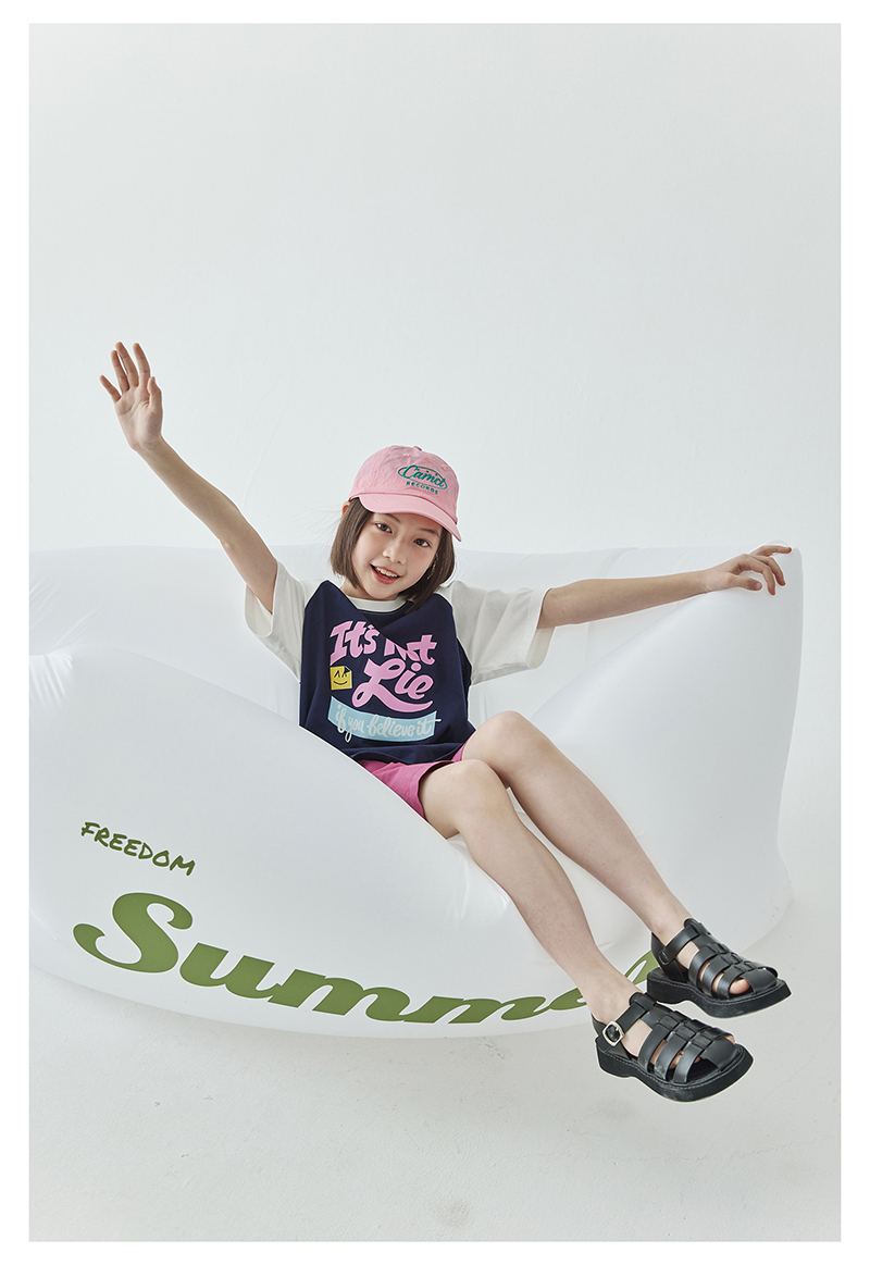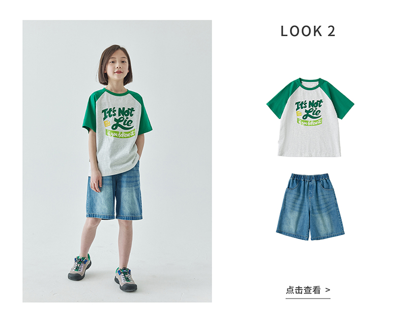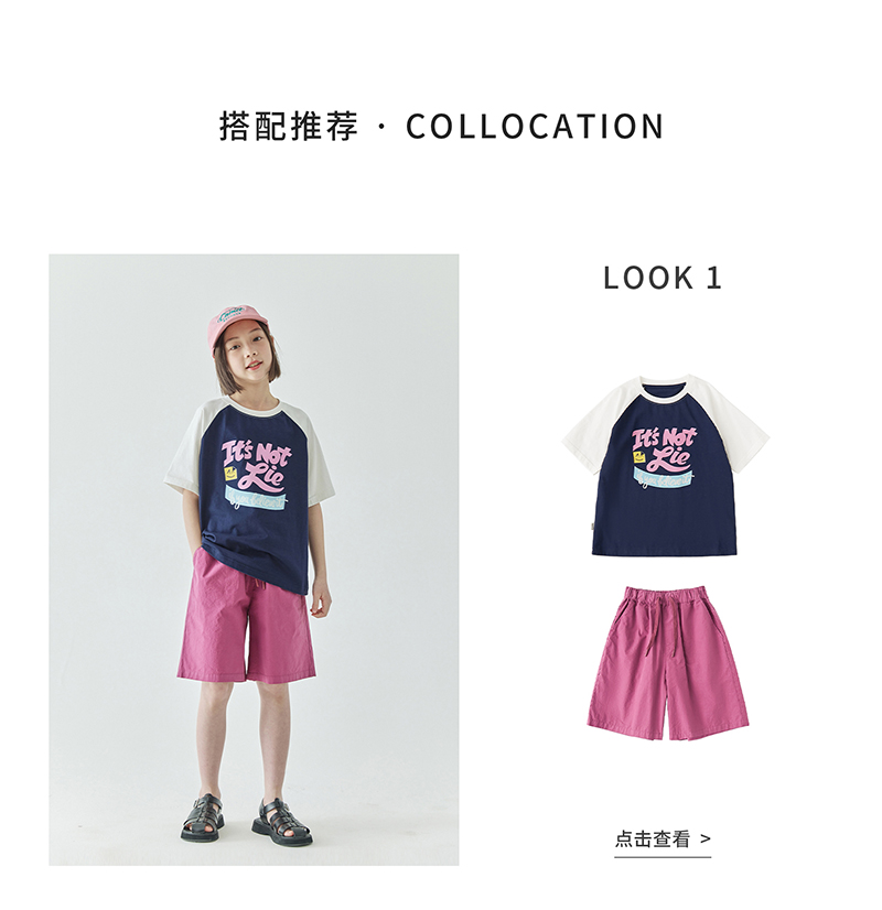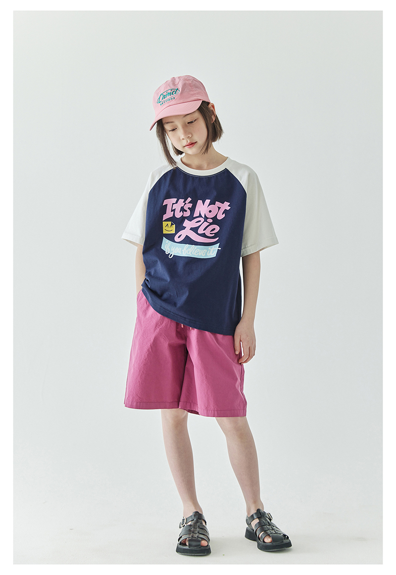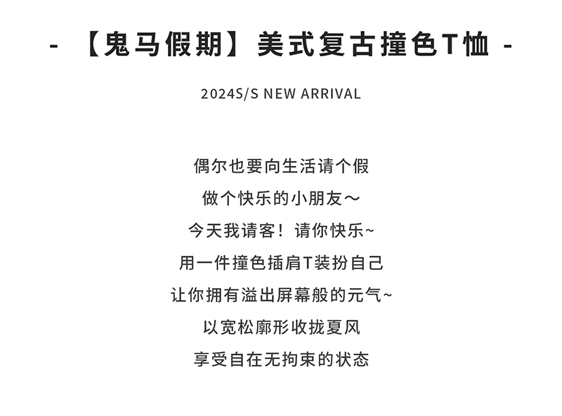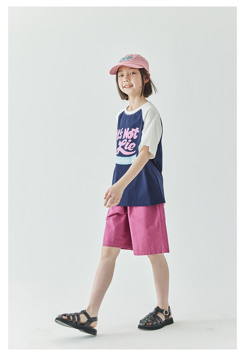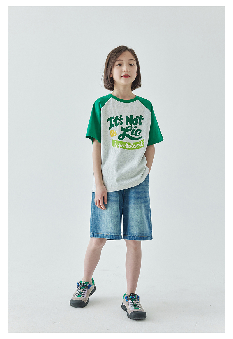 棵初夏季款儿童美式复古撞色短袖T恤亲子款字母印花插肩袖上衣