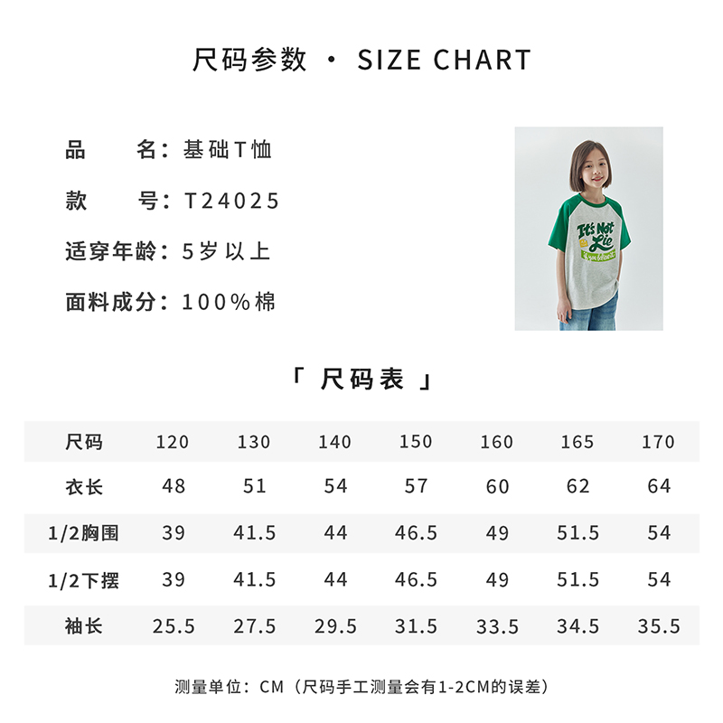 【撞色插肩棉感速干短袖】森林棠26春款儿童棉柔亲肤速干T恤40162001
