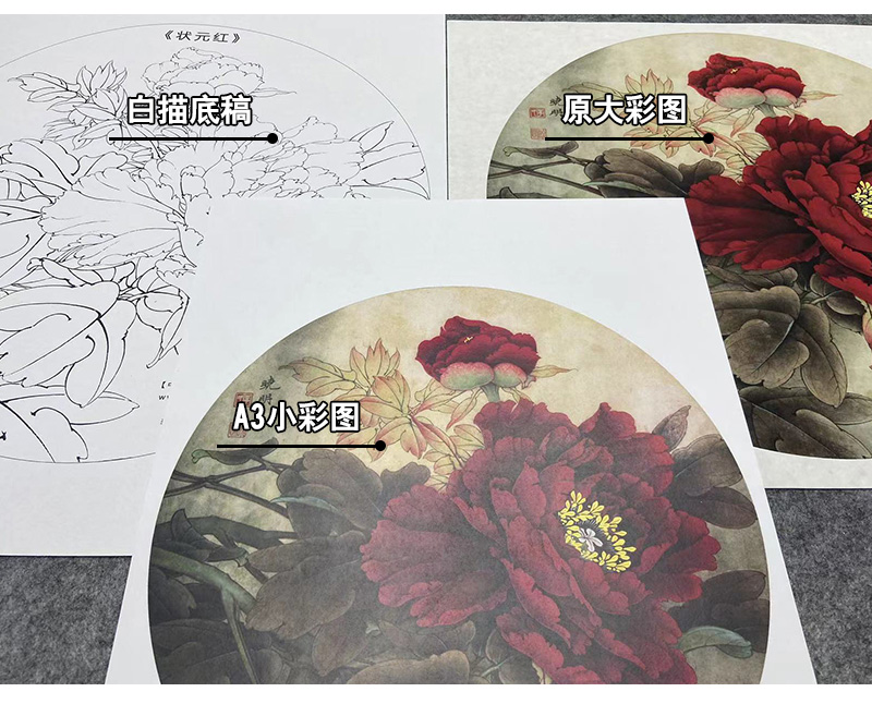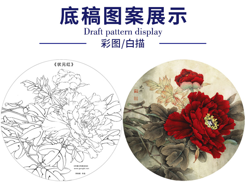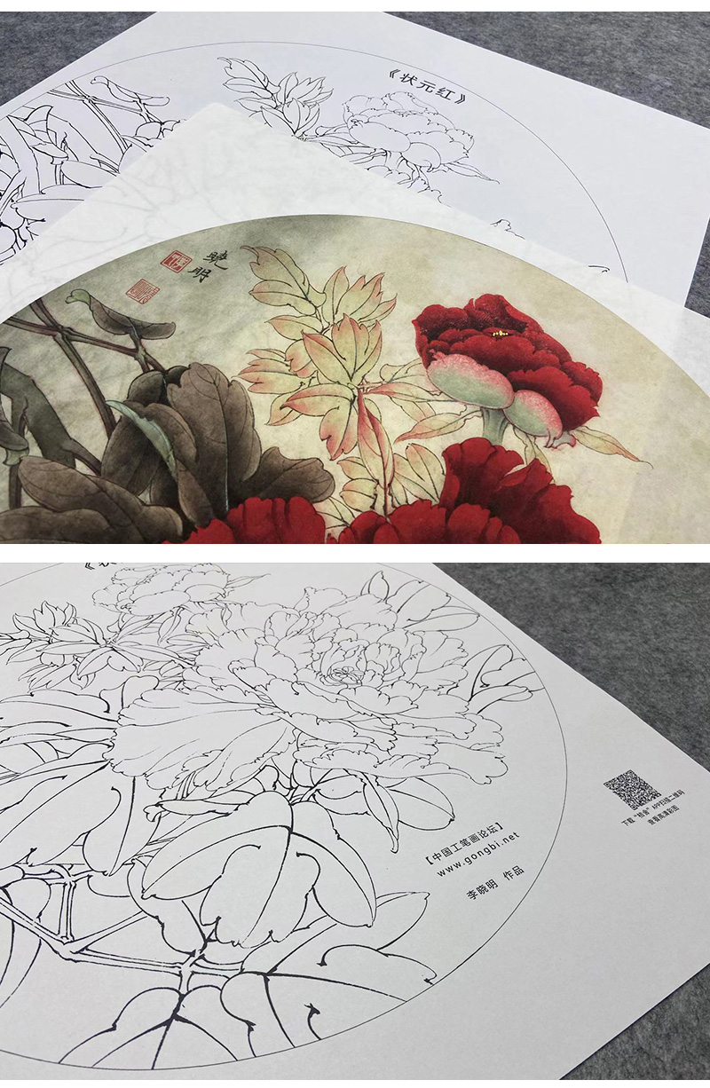 【大彩图】李晓明工笔画白描底稿小品《状元红》牡丹临摹勾线花鸟线稿K018