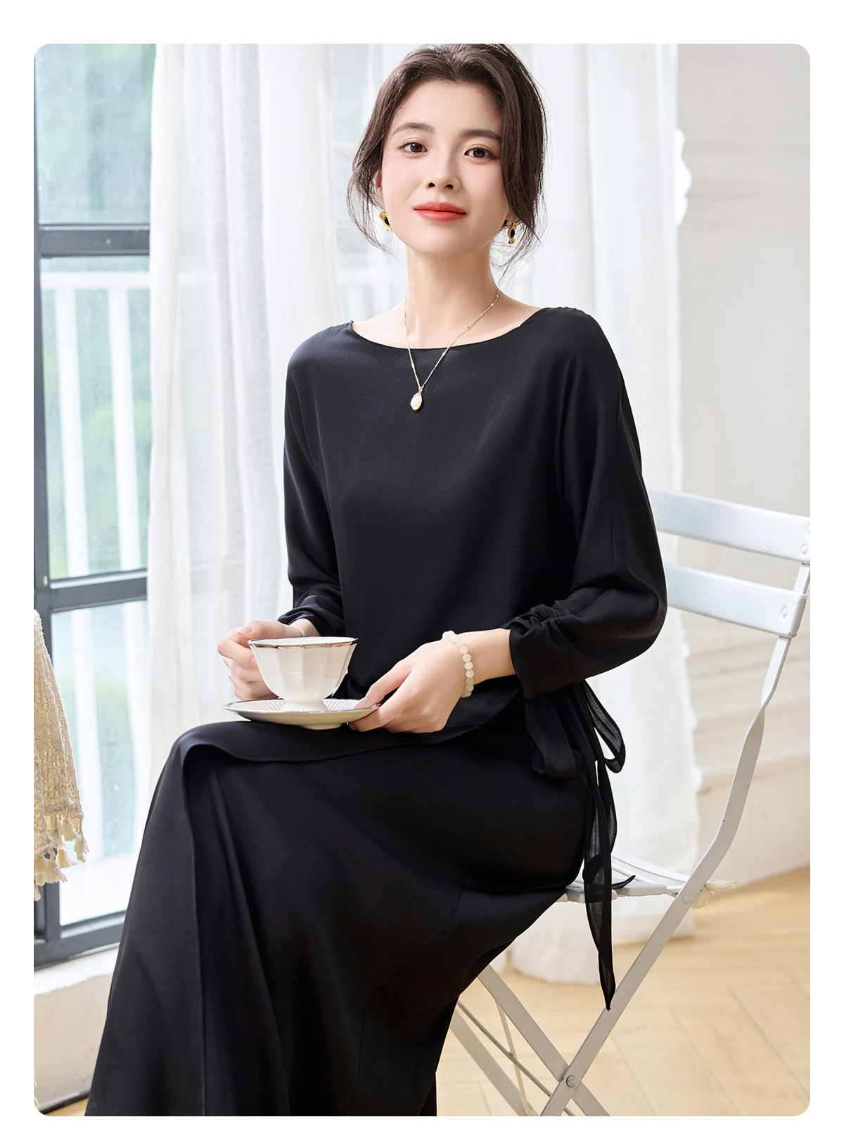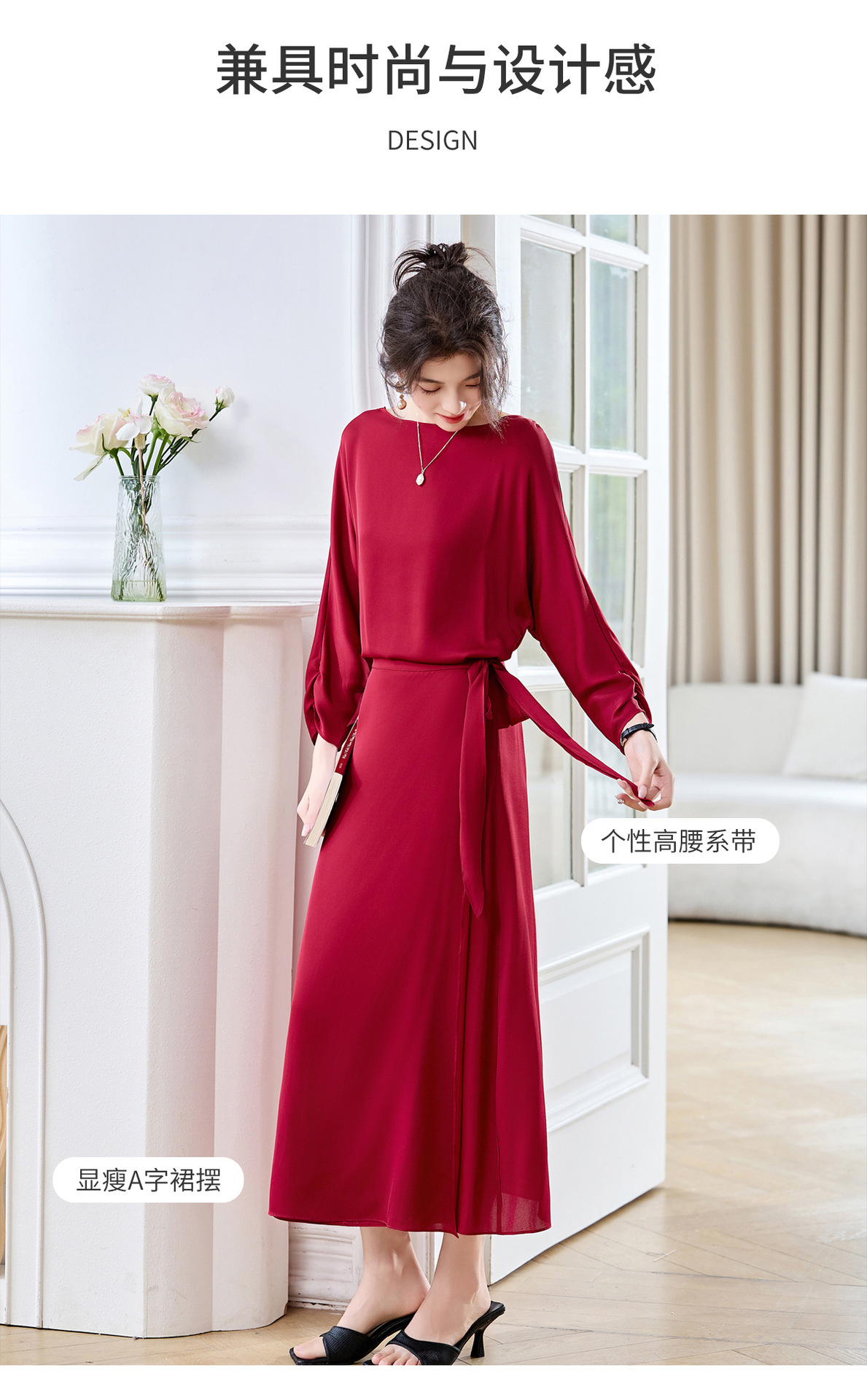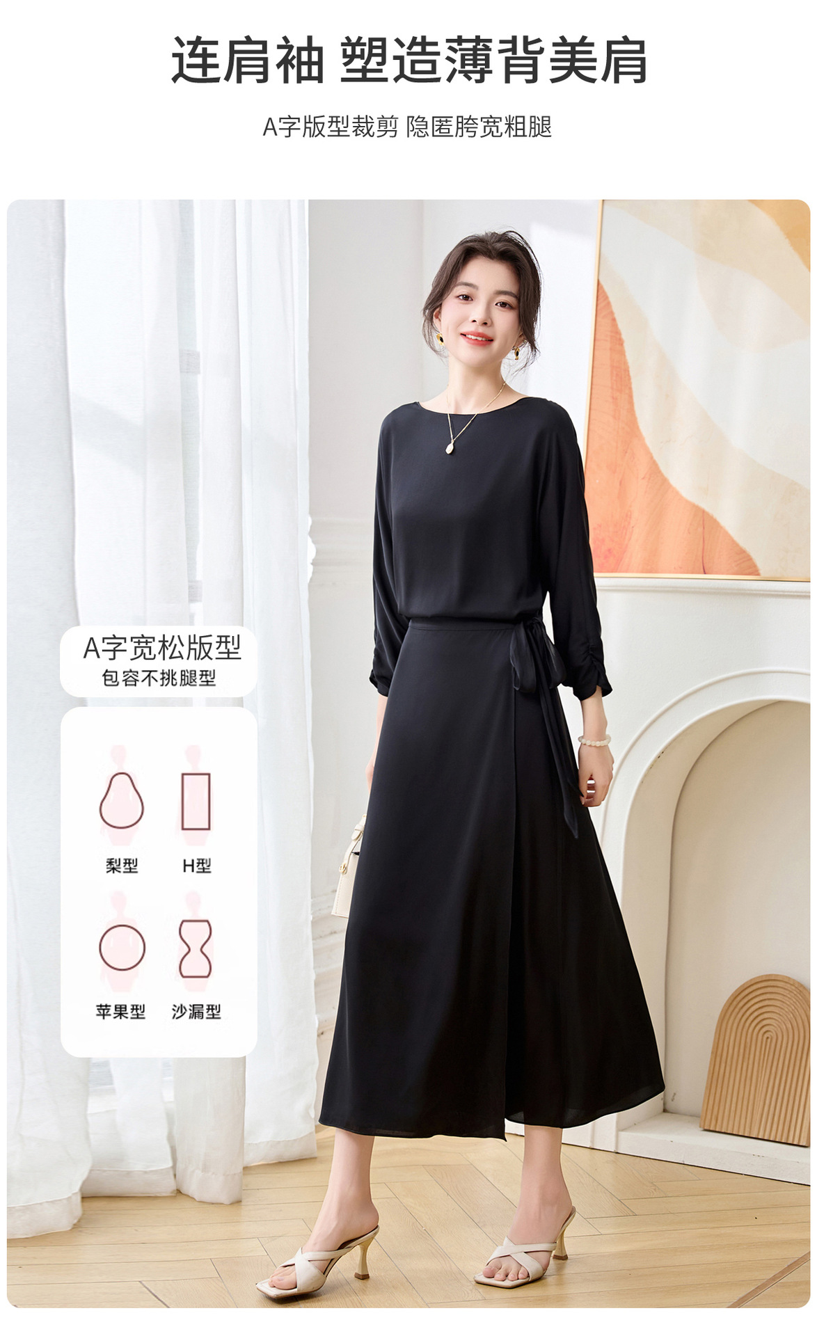 ASE 25037弹力双乔桑蚕丝宽松显瘦过膝宽松大码真丝连衣裙