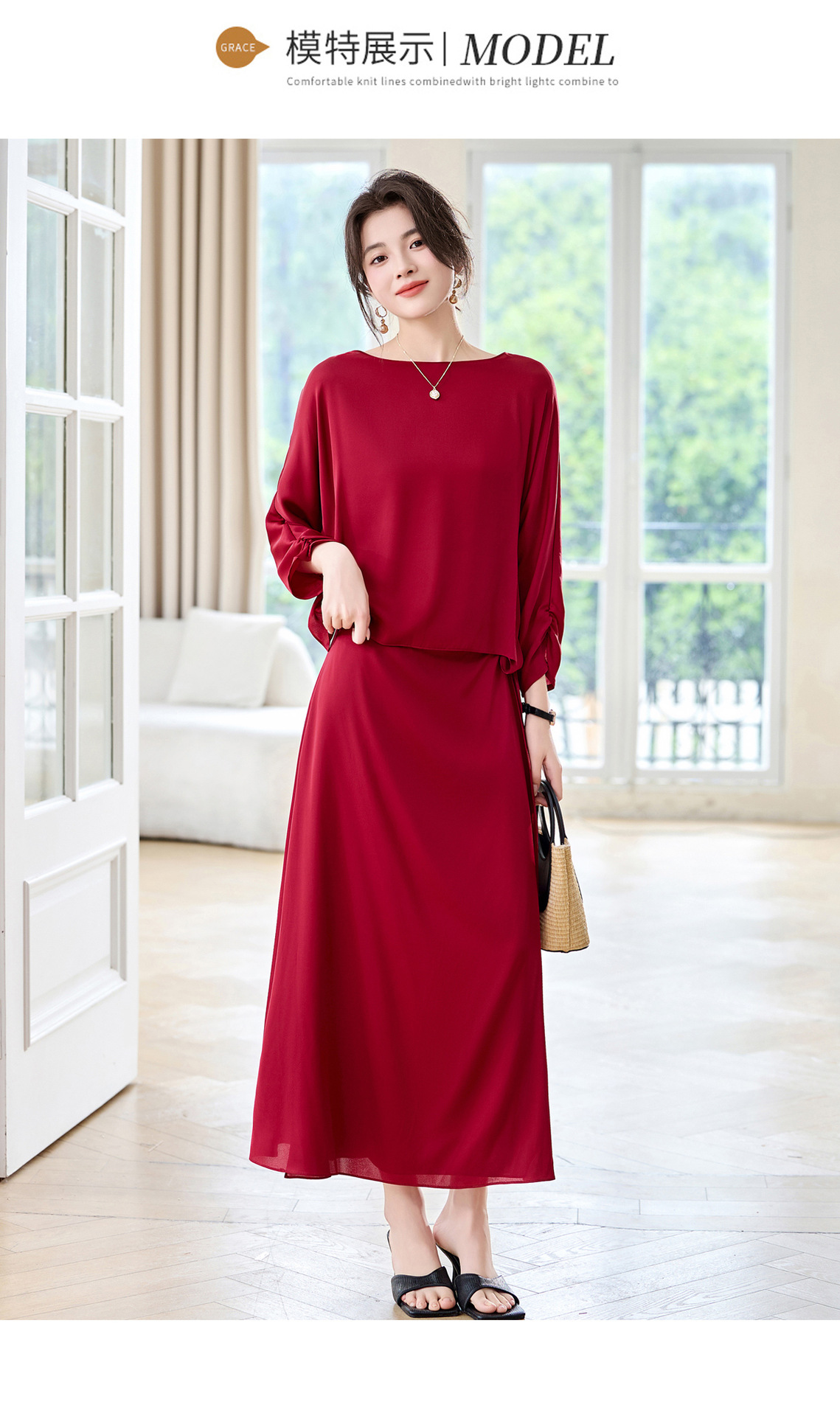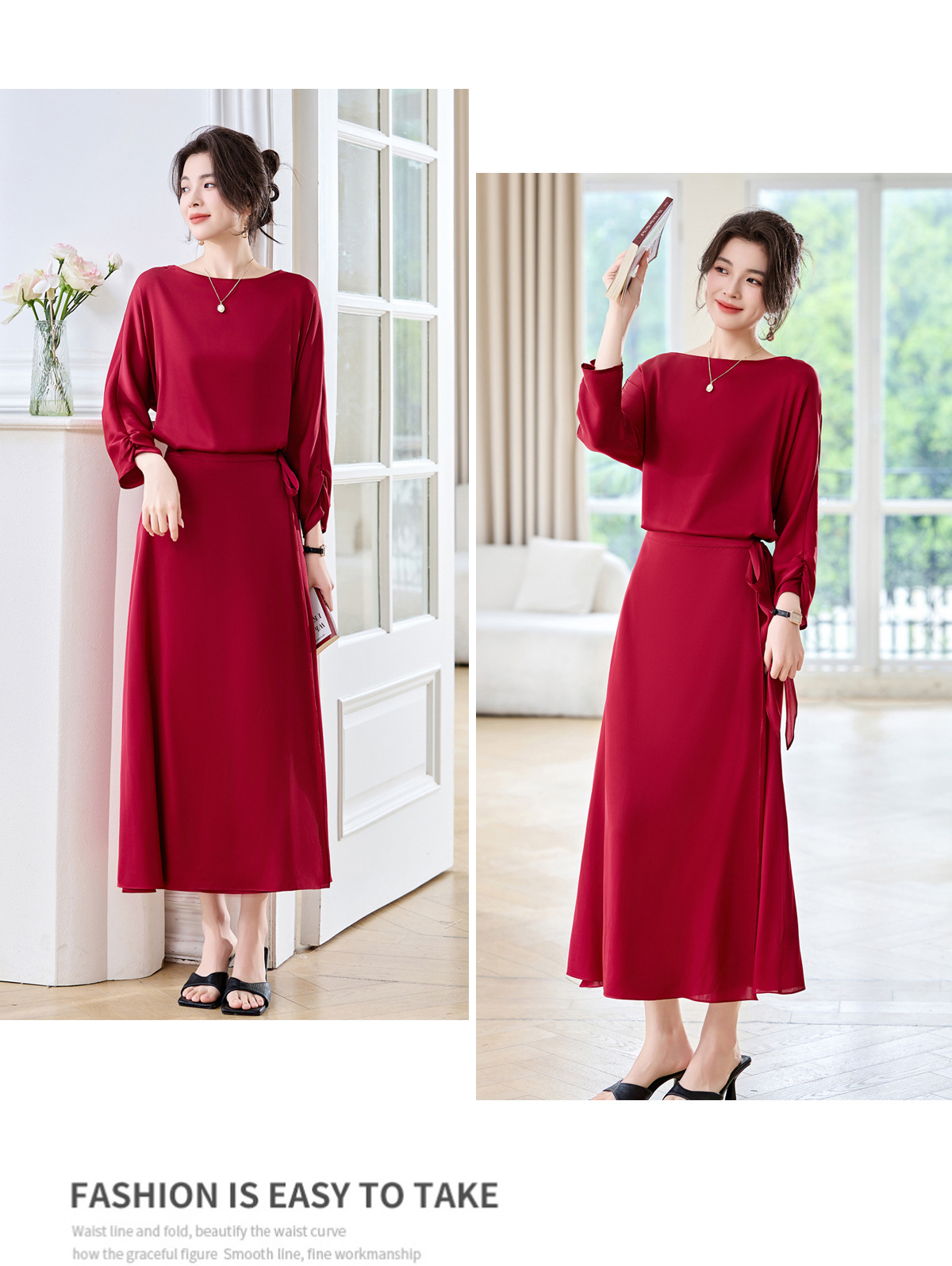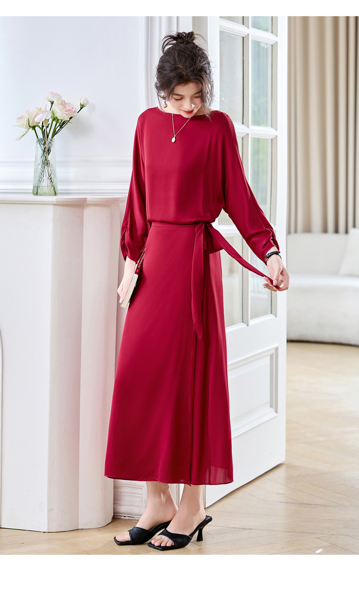ASE 25037弹力双乔桑蚕丝宽松显瘦过膝宽松大码真丝连衣裙