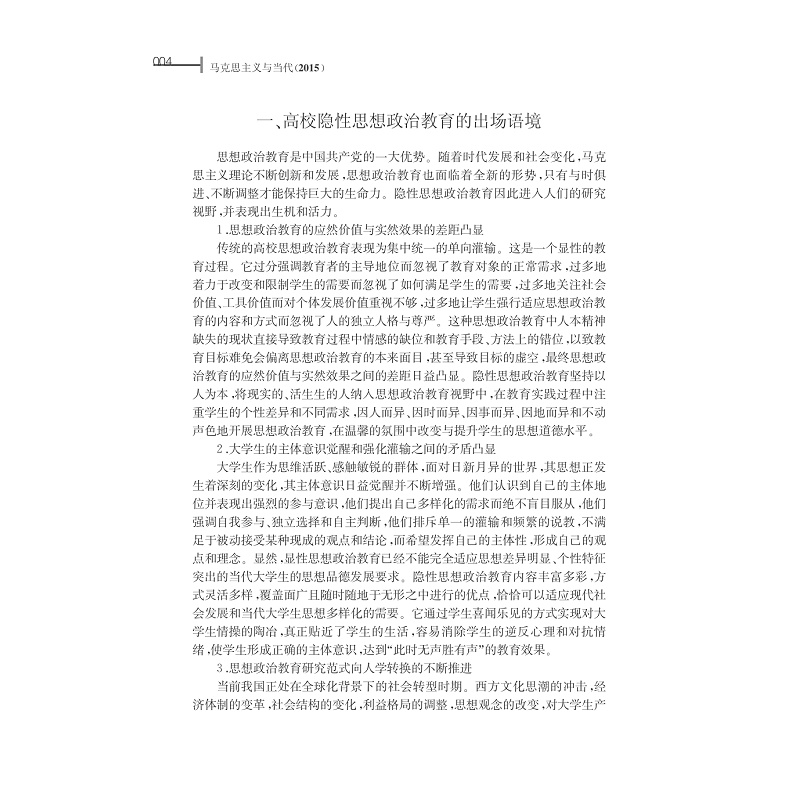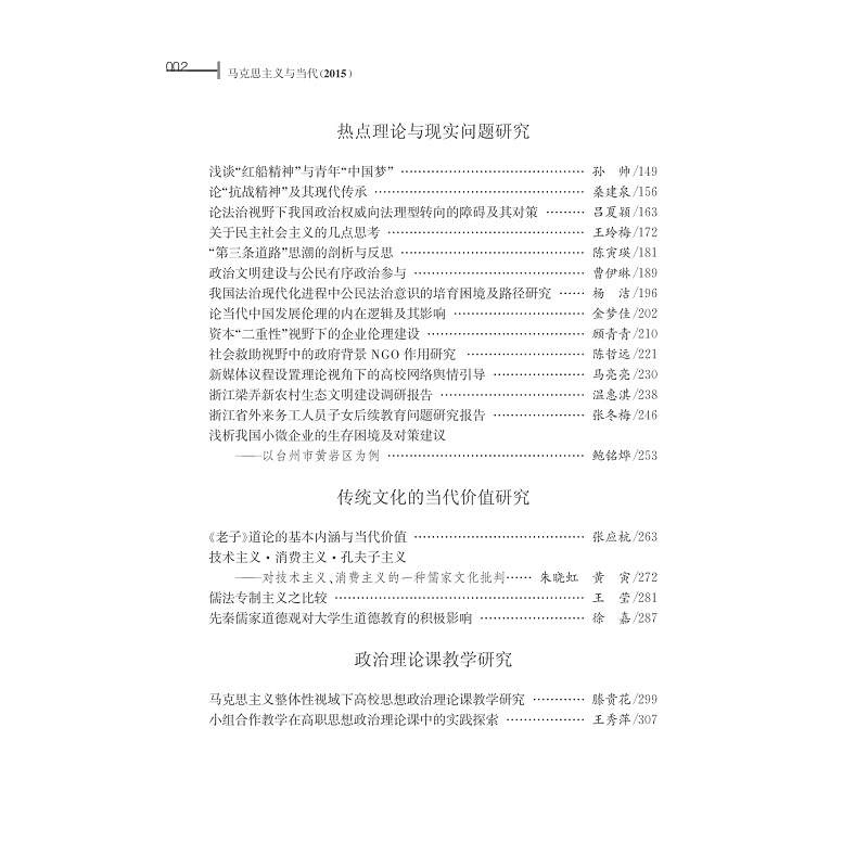 由以浙江大学为主的高校两课教师以及研究马哲与中国问题的学者所做的多个专题集合而成的关于马克思主义在当代发展以及两课教学研究主题的论文集,有理论与实践两方面的价值。