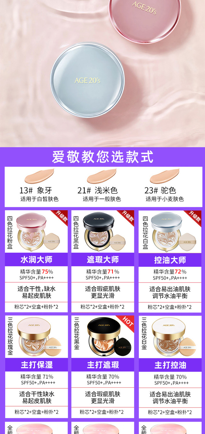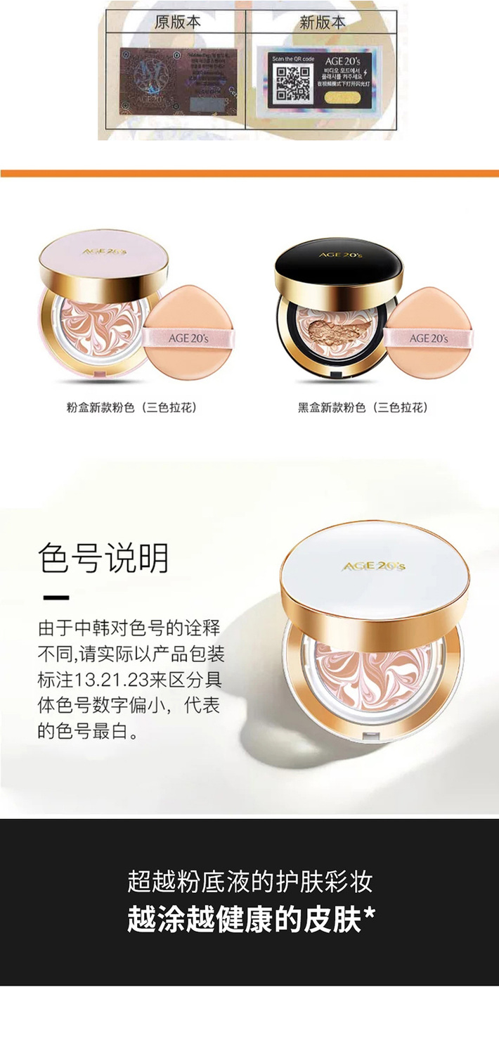 【门店直发】韩国AGE20`s爱敬四色三色拉花气垫bb霜遮瑕保湿持久全能气垫粉底控油不脱妆