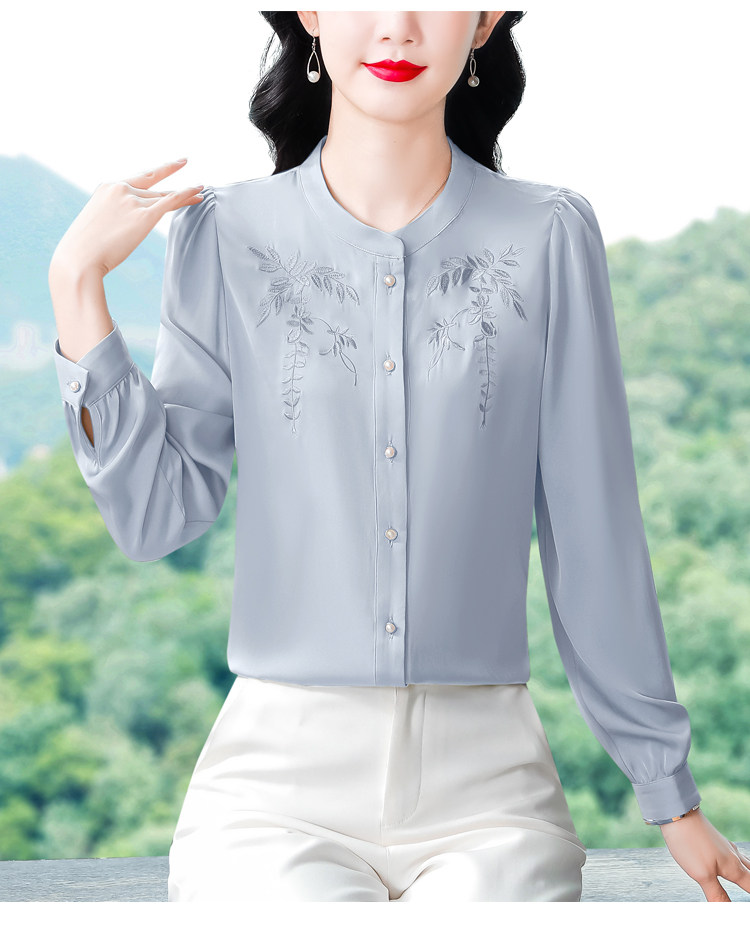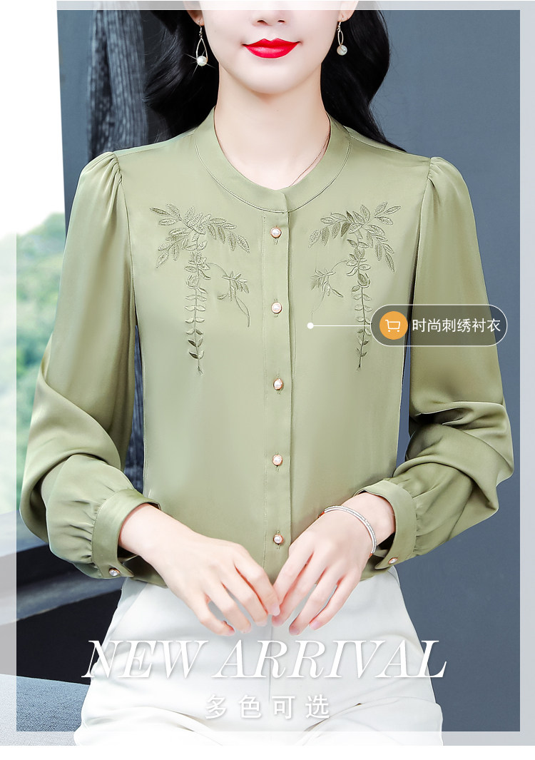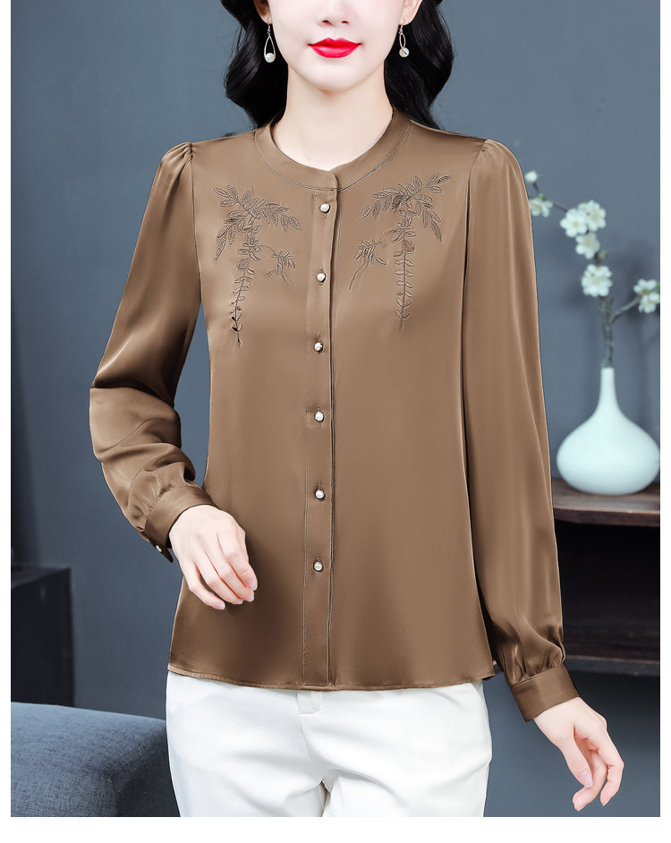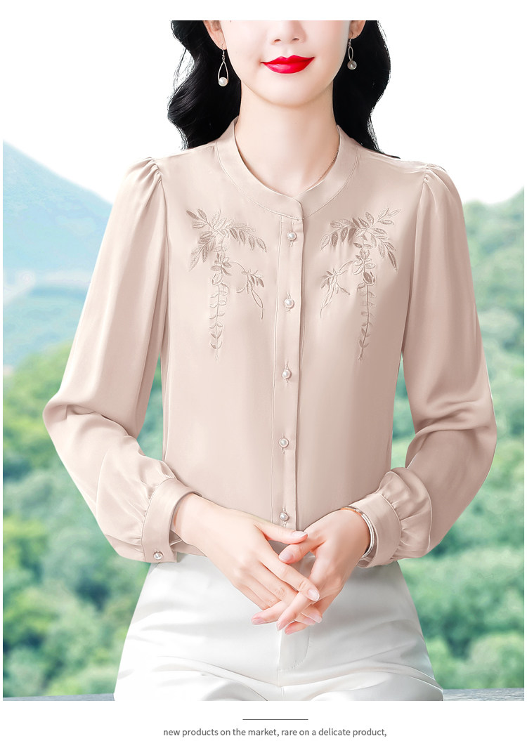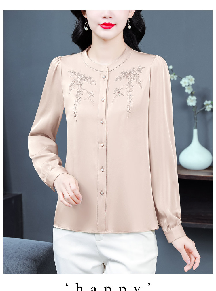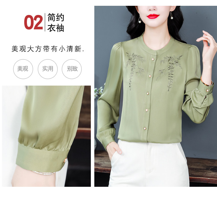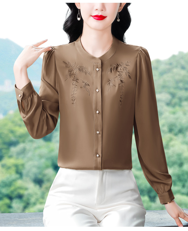 中国风真丝衬衫女妈妈装2025春秋刺绣立领杭州桑蚕丝缎面长袖上衣