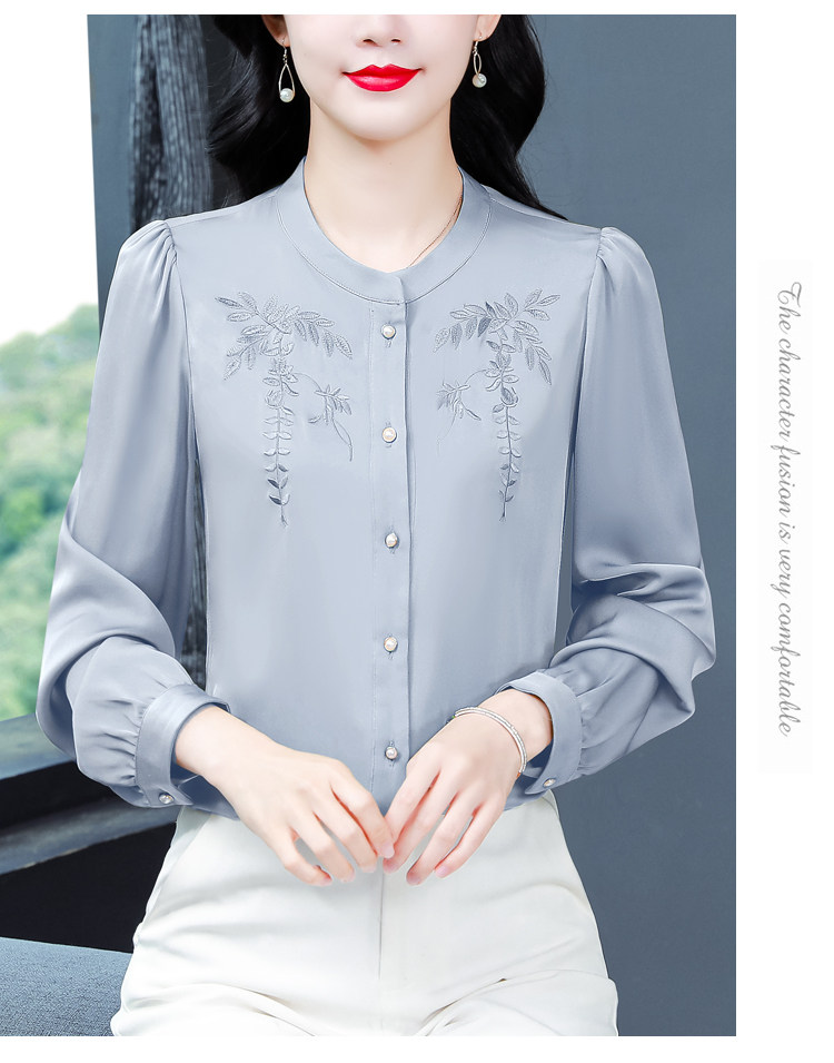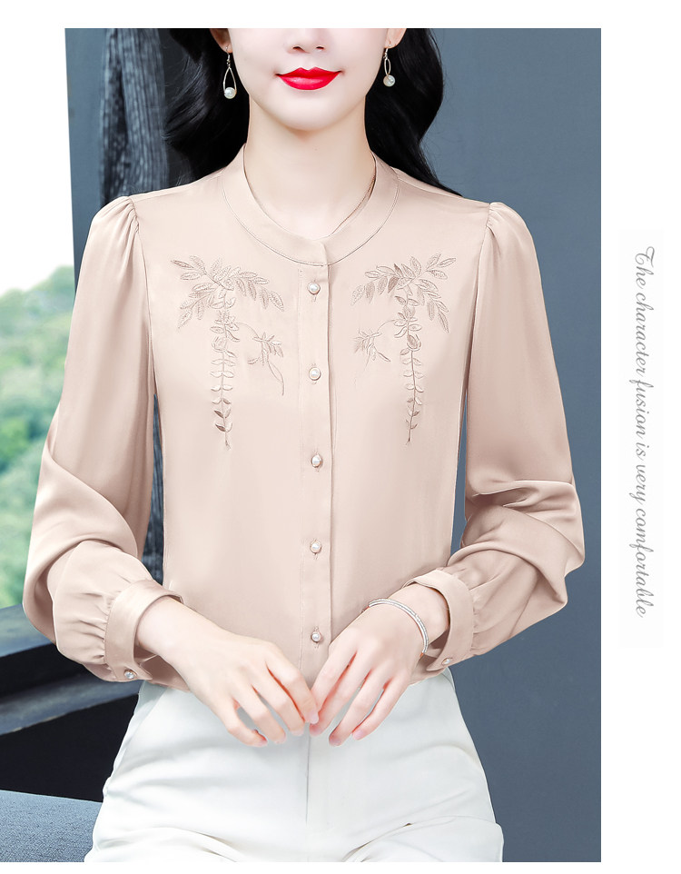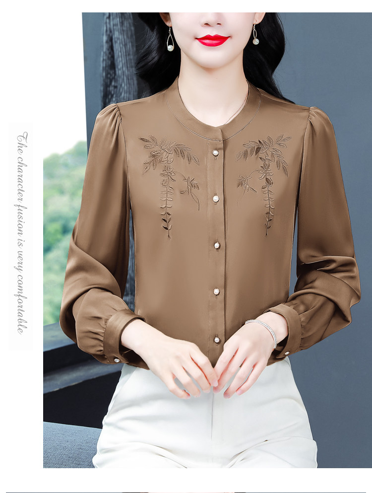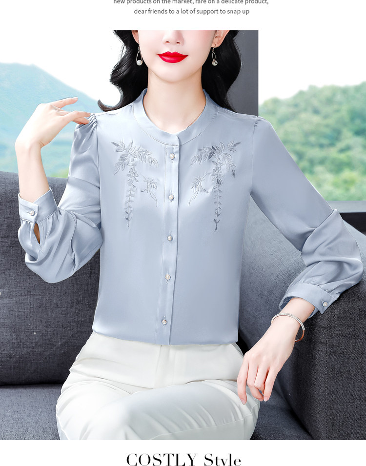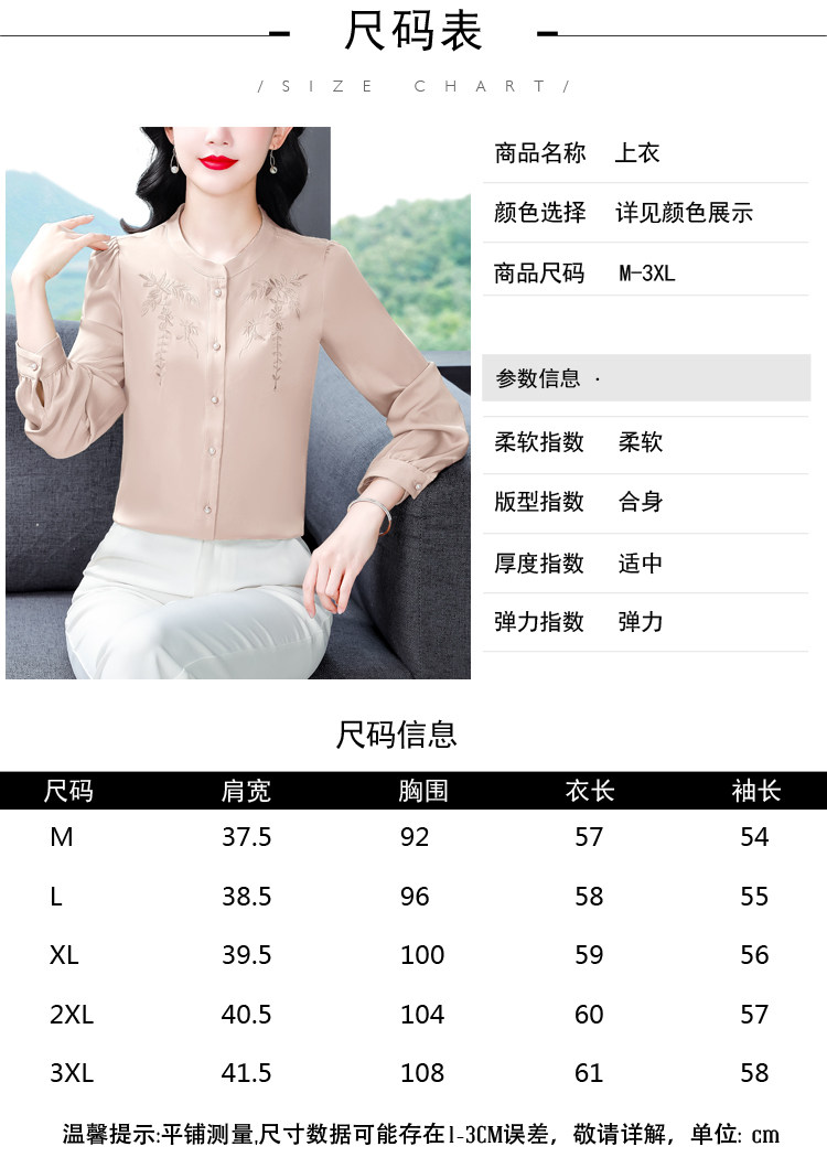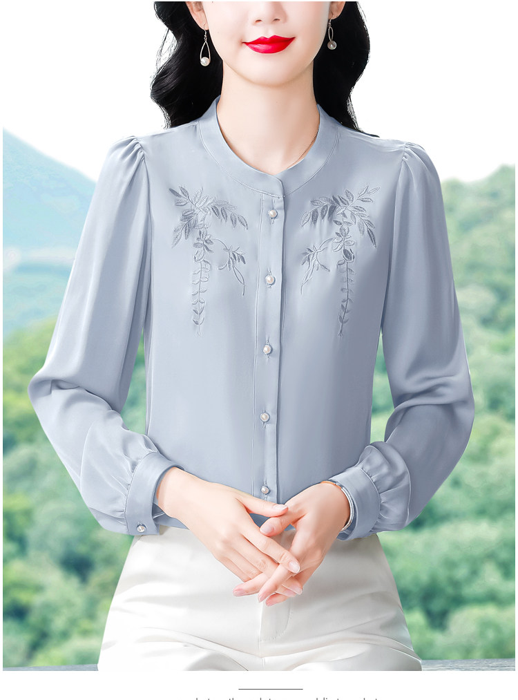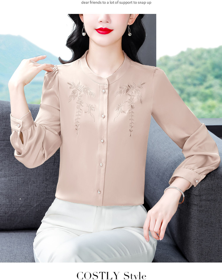 中国风真丝衬衫女妈妈装2025春秋刺绣立领杭州桑蚕丝缎面长袖上衣