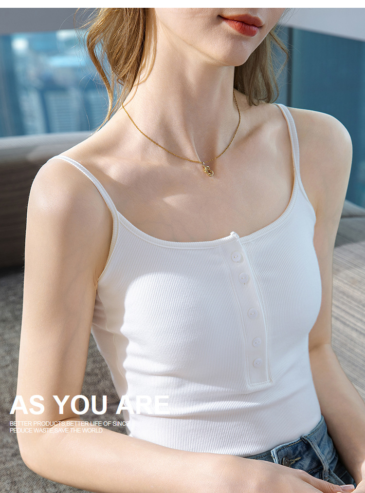 X5X2419-HCL螺纹吊带背心女夏2025新款女装带胸垫固定背可开扣小吊带气质上衣