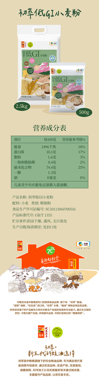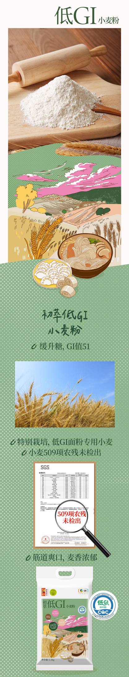 【慢升糖面粉礼盒】中粮初萃低GI面粉礼盒 人体实测慢升糖 老人孕妇控糖人群可食