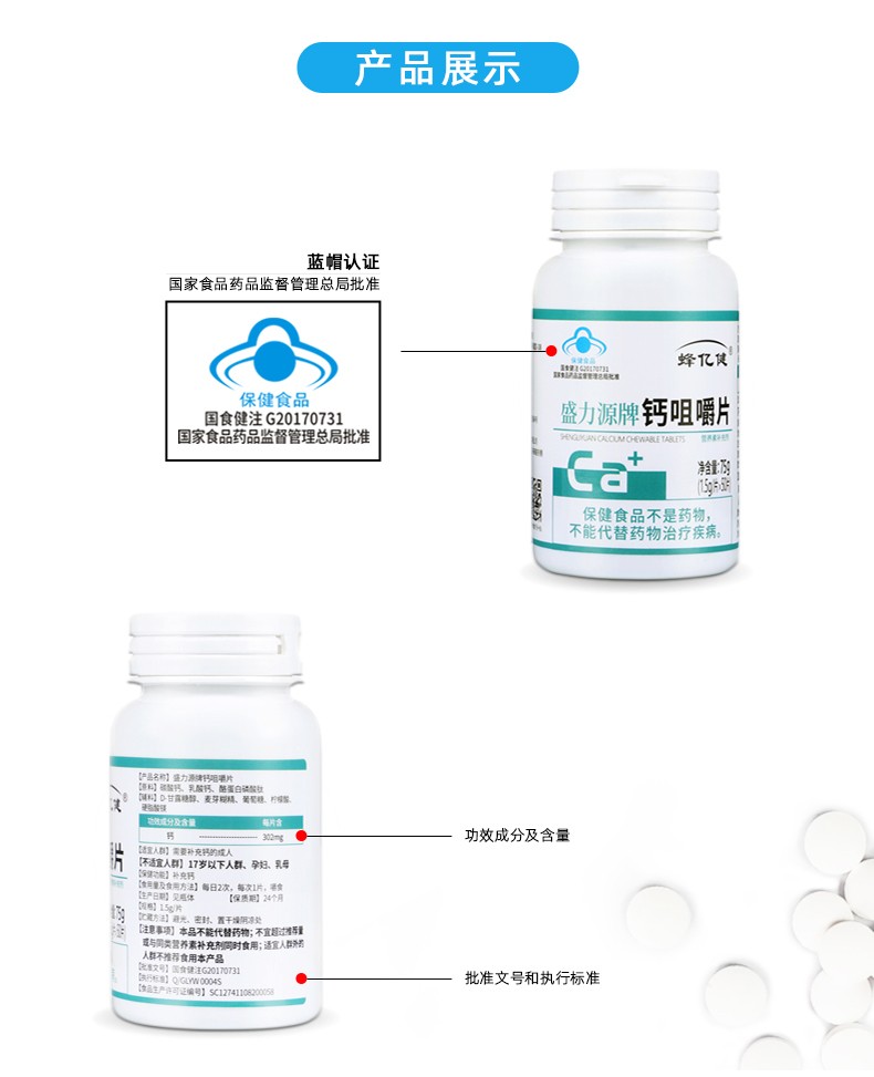 蜂亿健钙咀嚼片 75g/瓶/50片