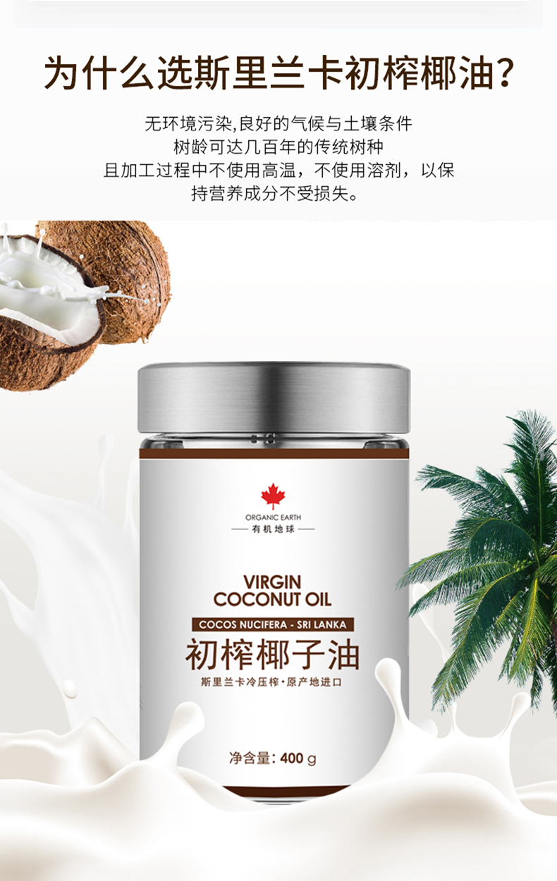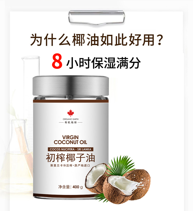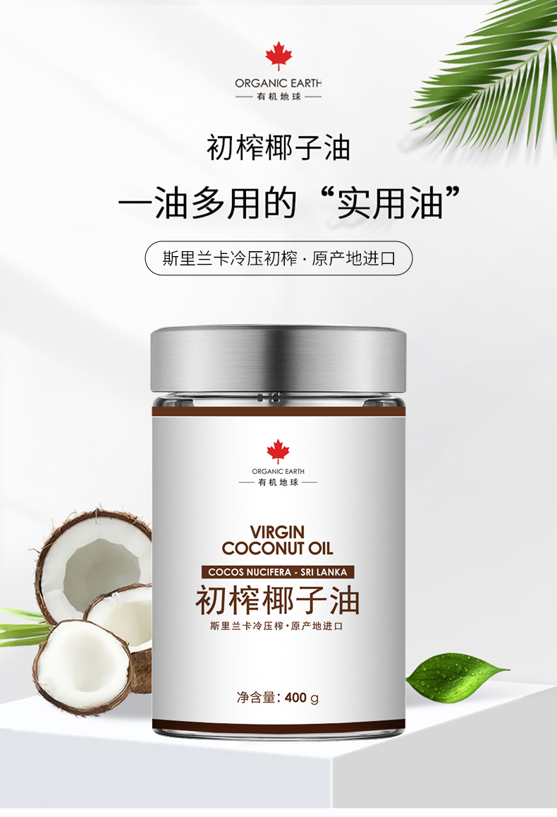 冷压初榨椰子油 | 400g/瓶 肌肤水润 身体按摩油 斯里兰卡原产地进口 玻璃瓶装 有机地球