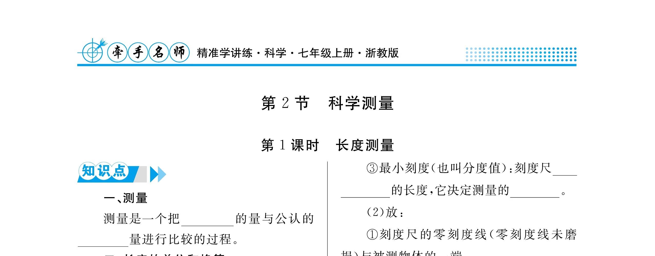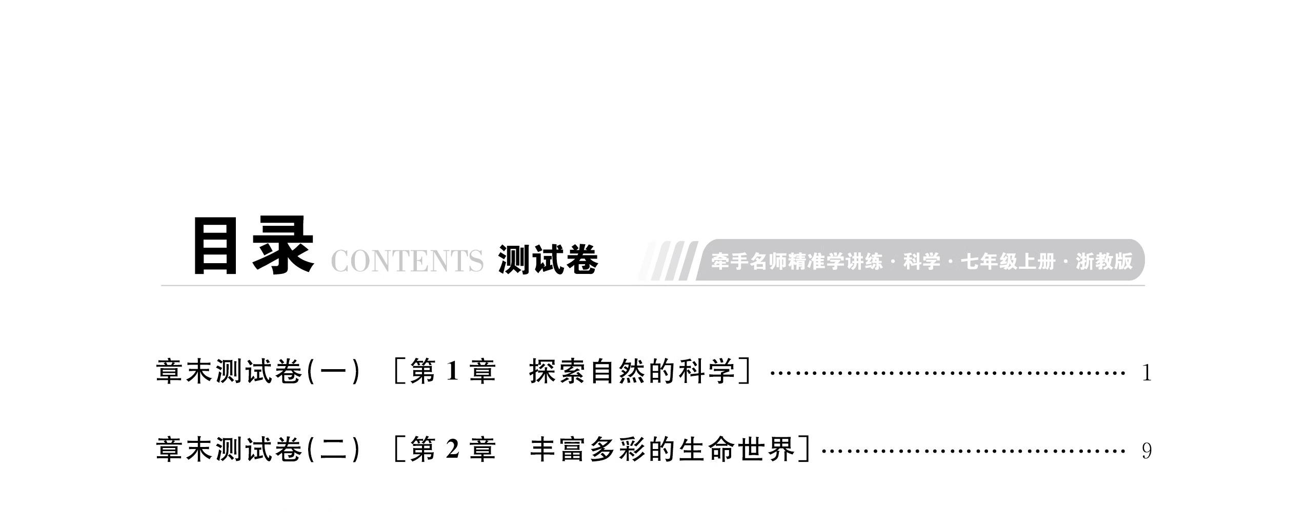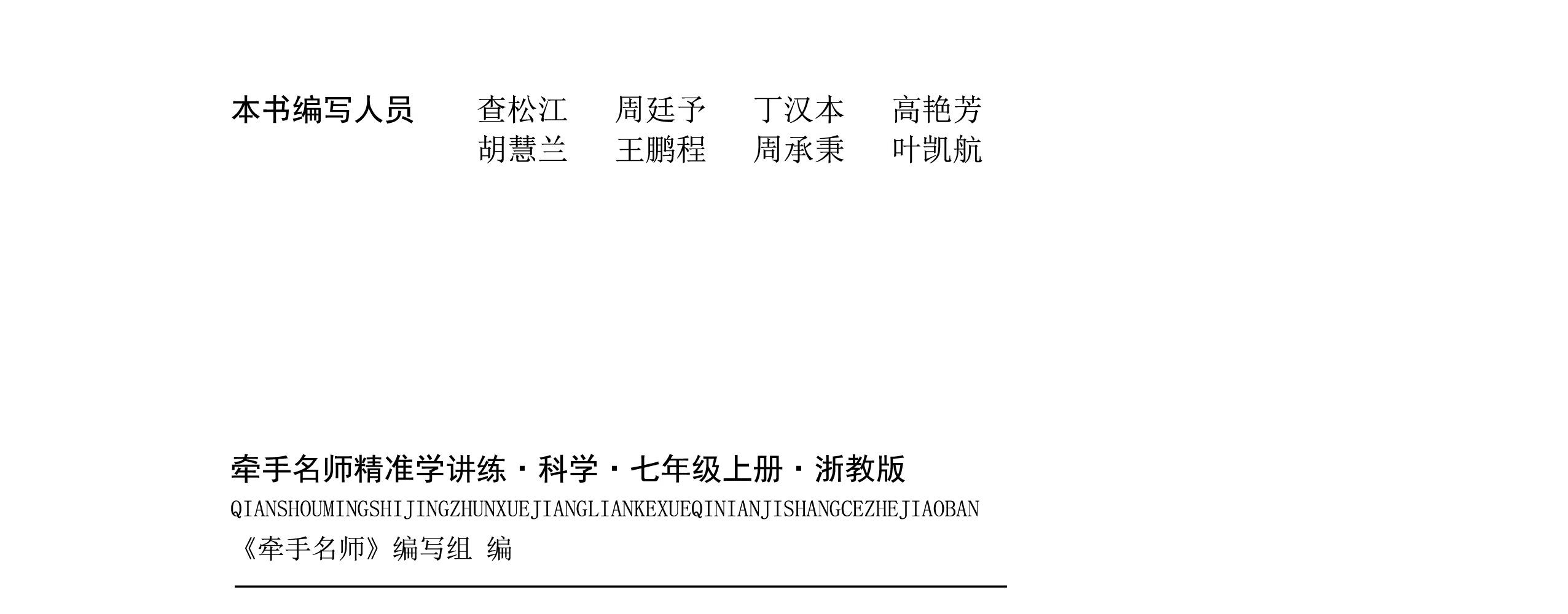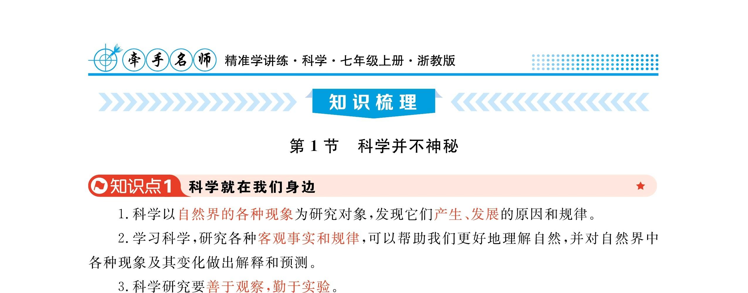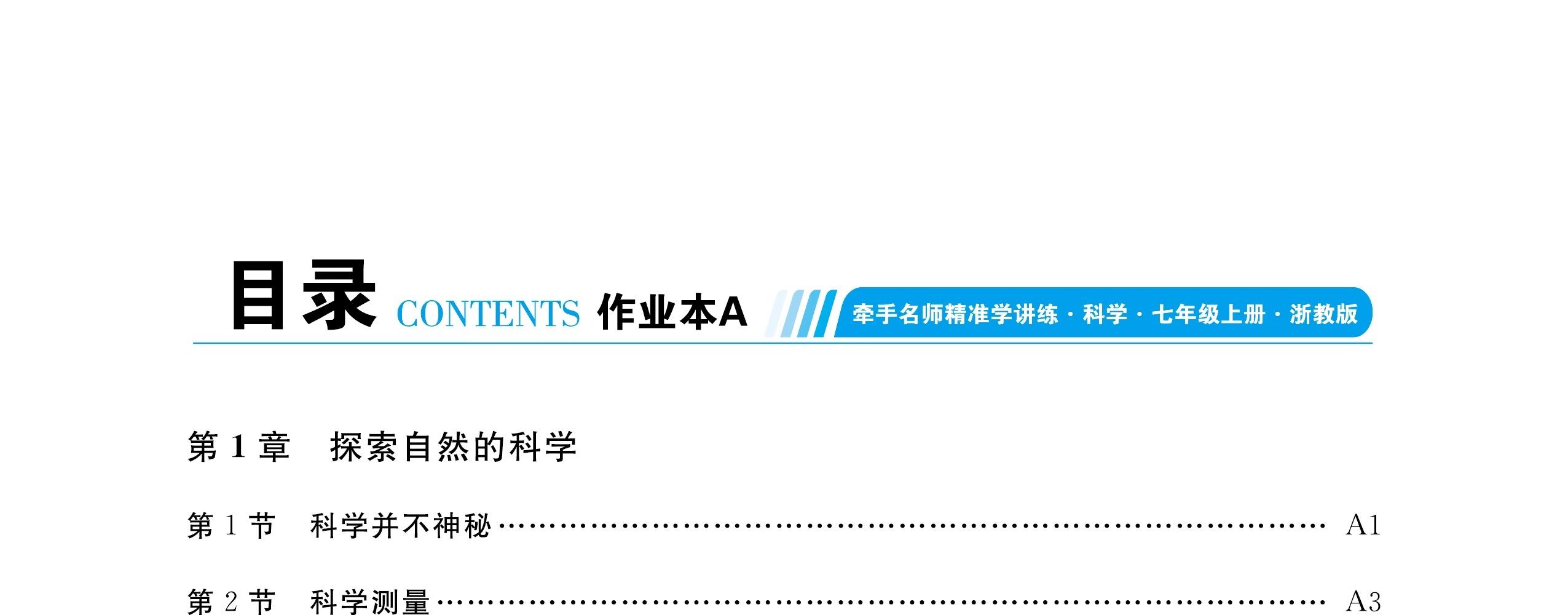 牵手名师精准学讲练科学七年级上册听课本作业本AB本知识梳理卷