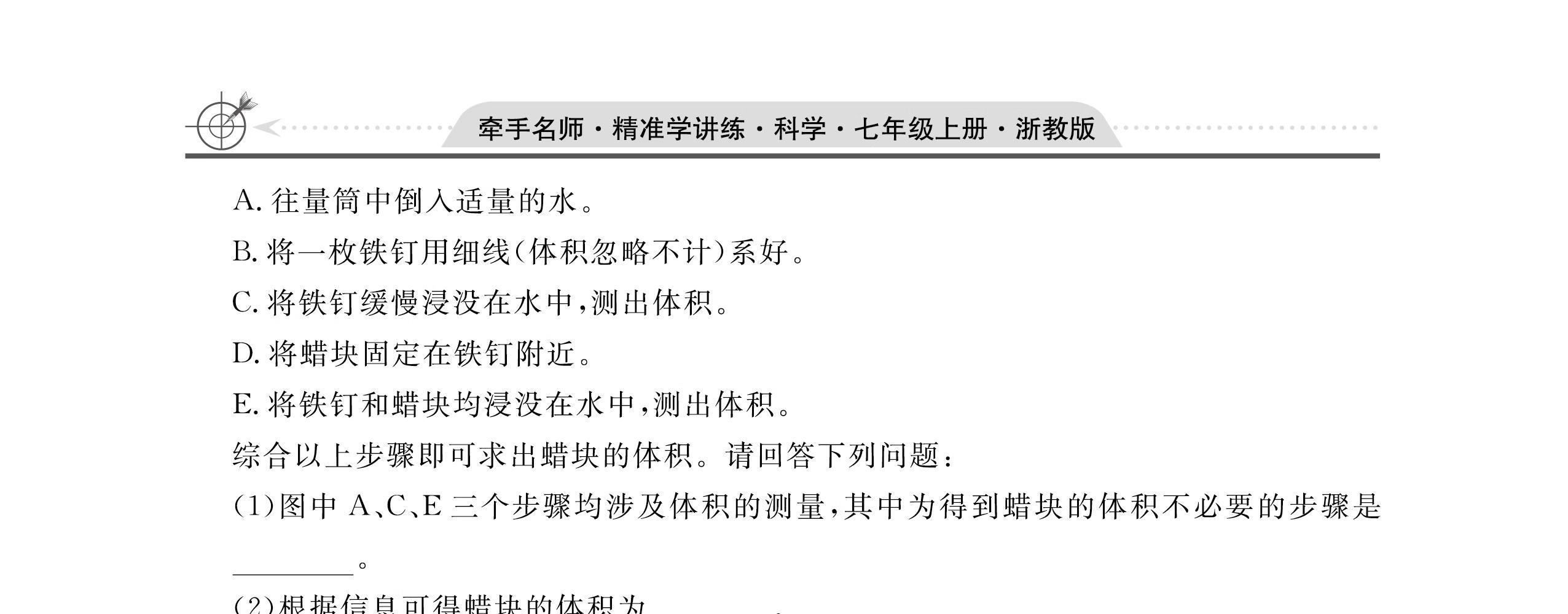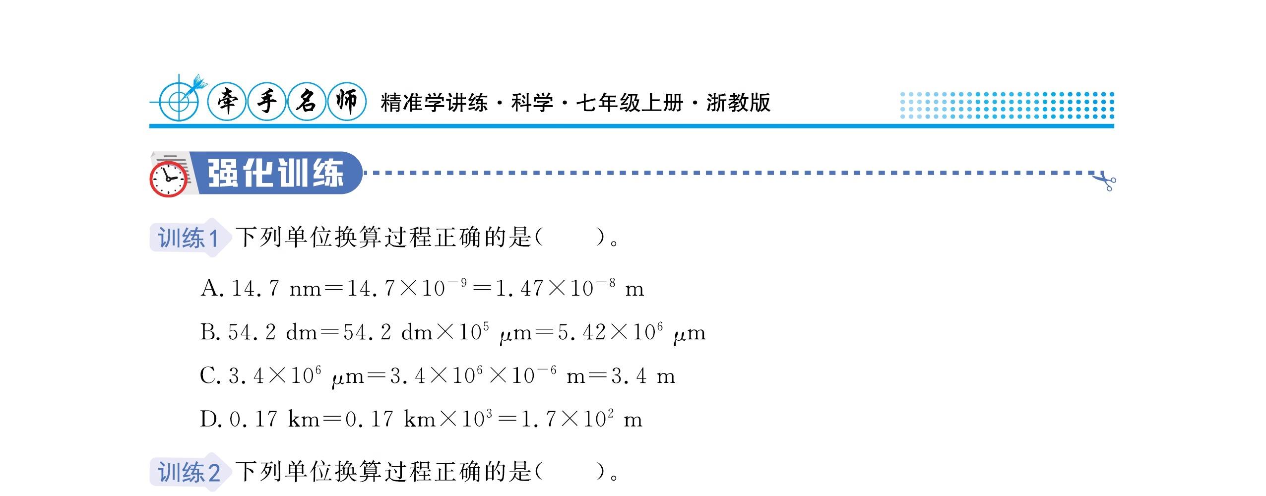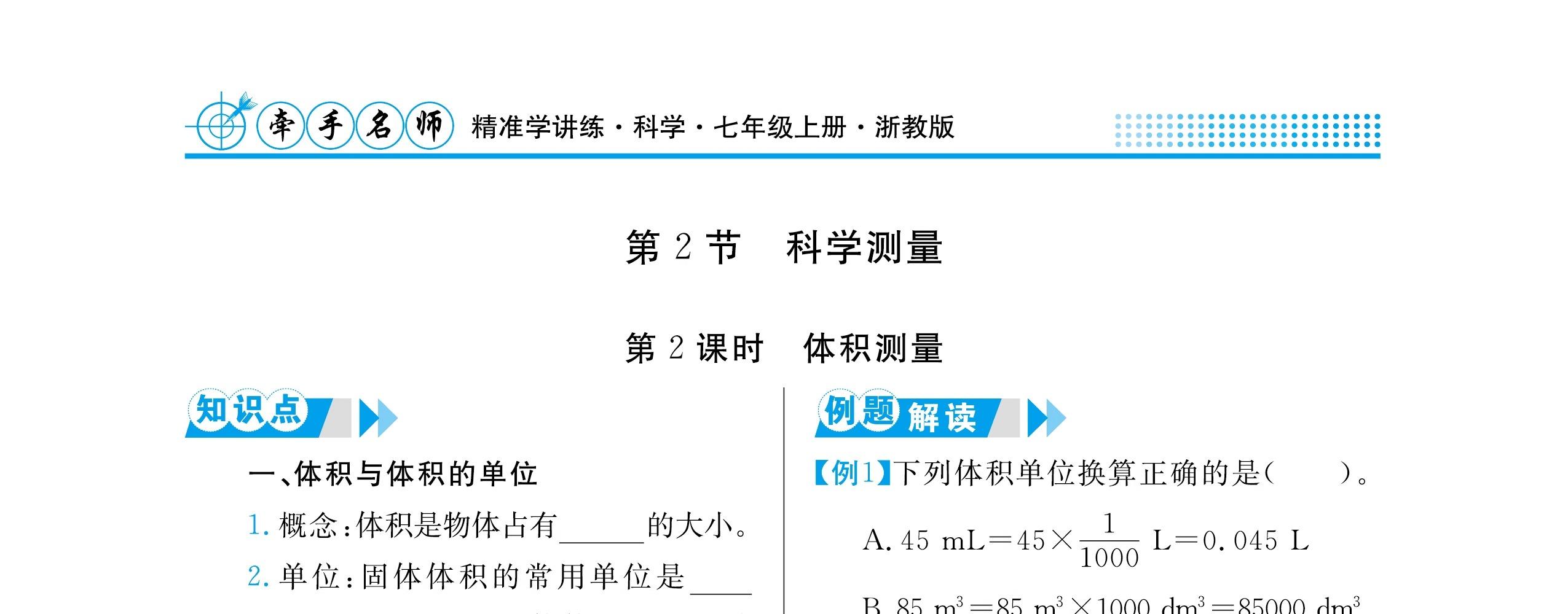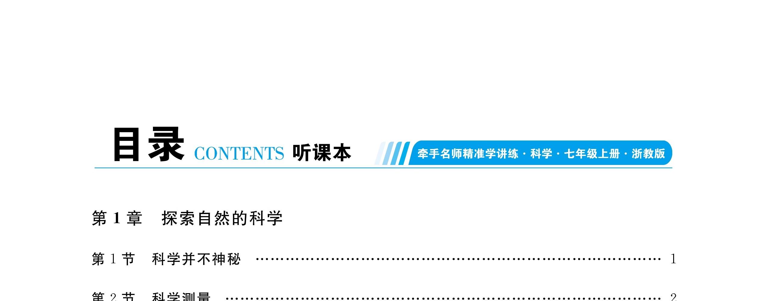 牵手名师精准学讲练科学七年级上册听课本作业本AB本知识梳理卷