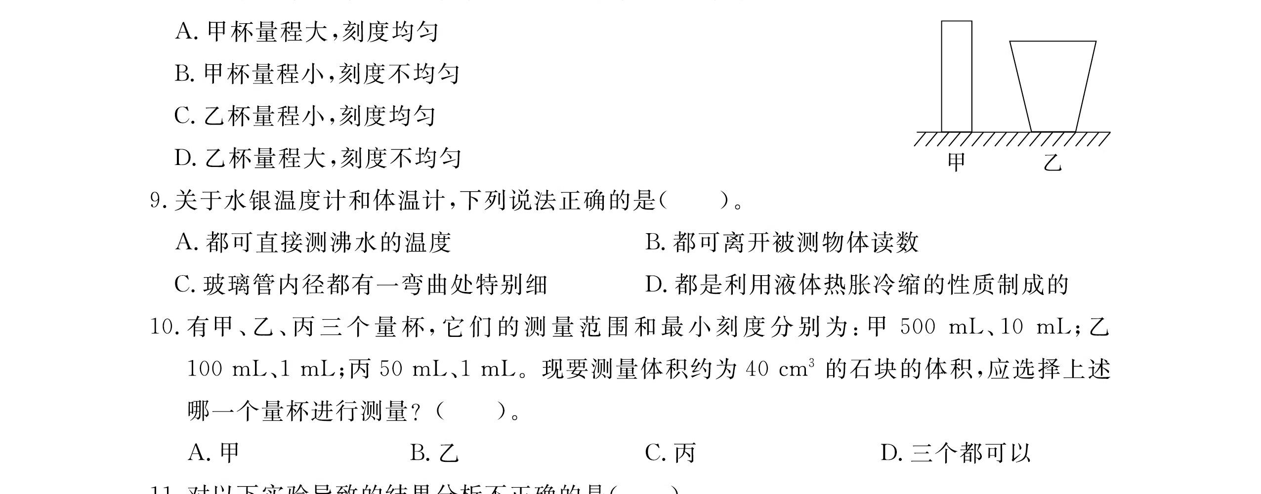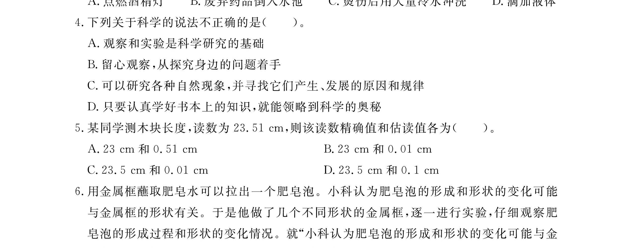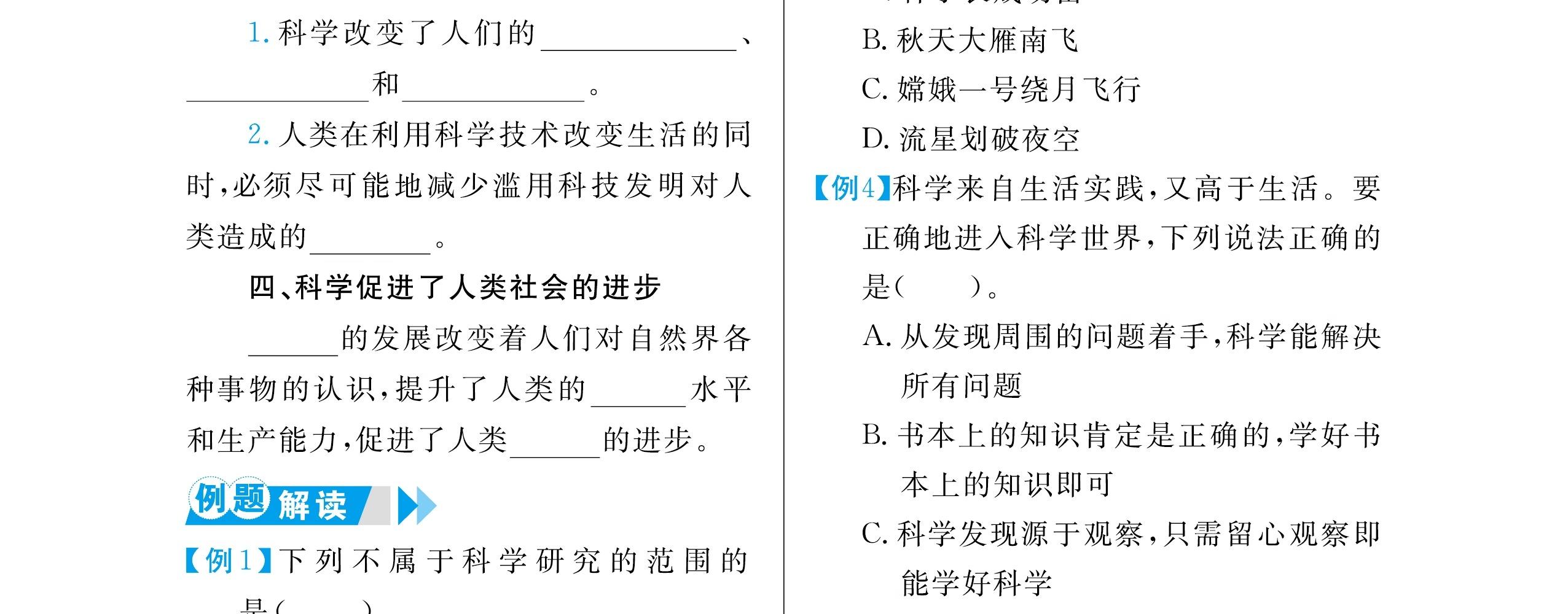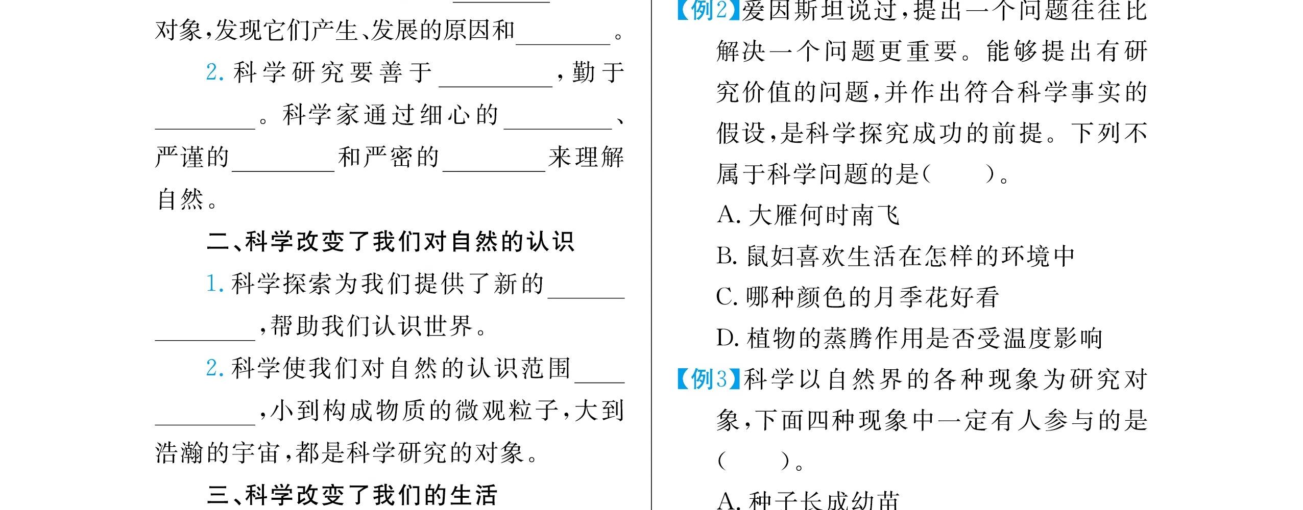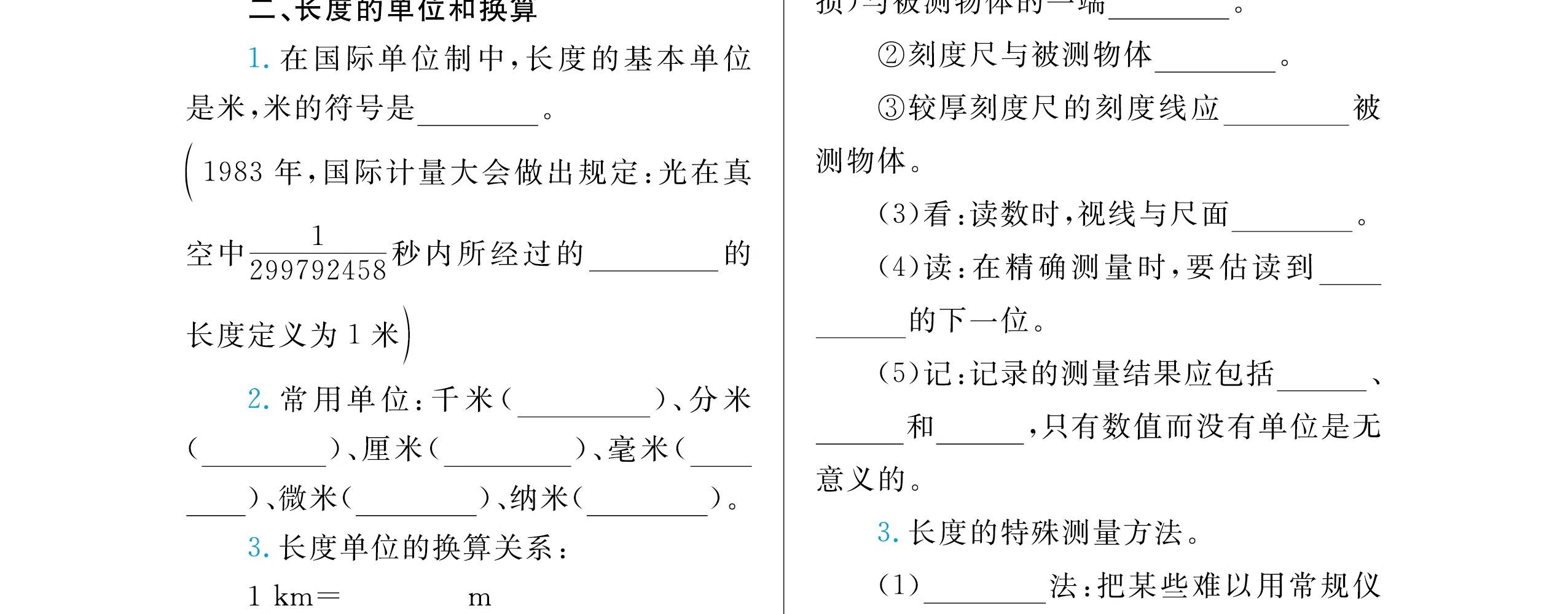 牵手名师精准学讲练科学七年级上册听课本作业本AB本知识梳理卷