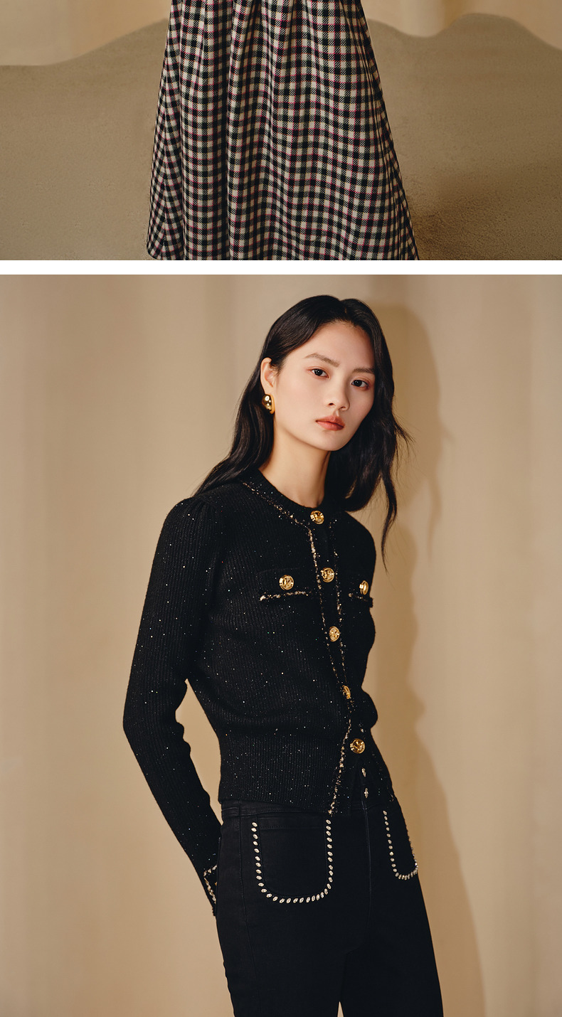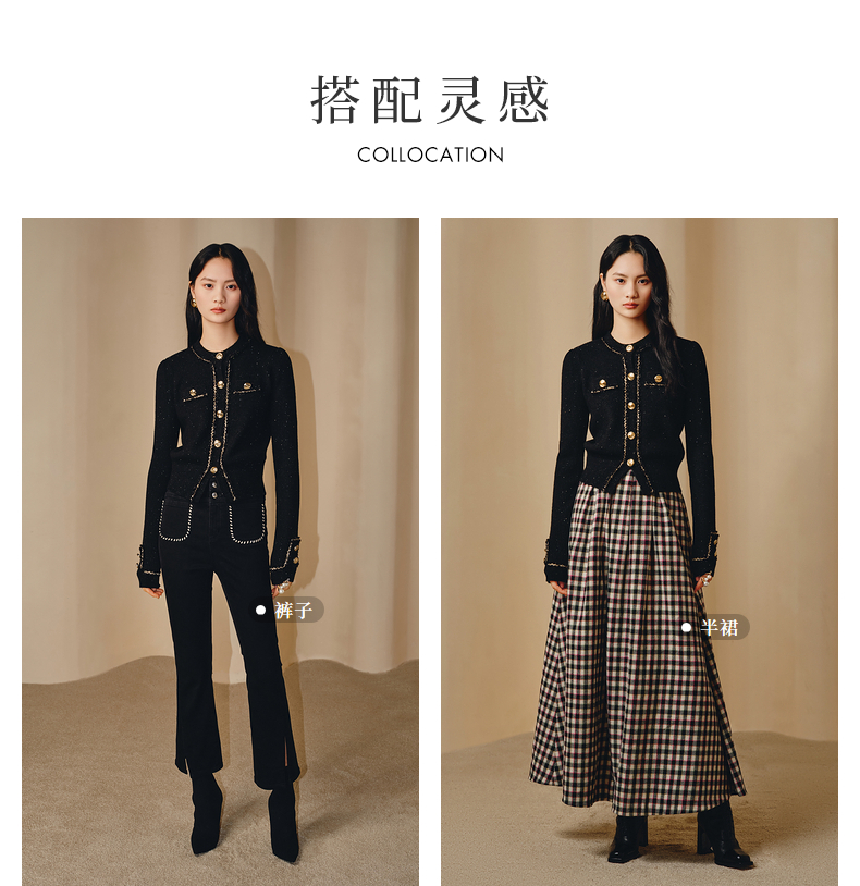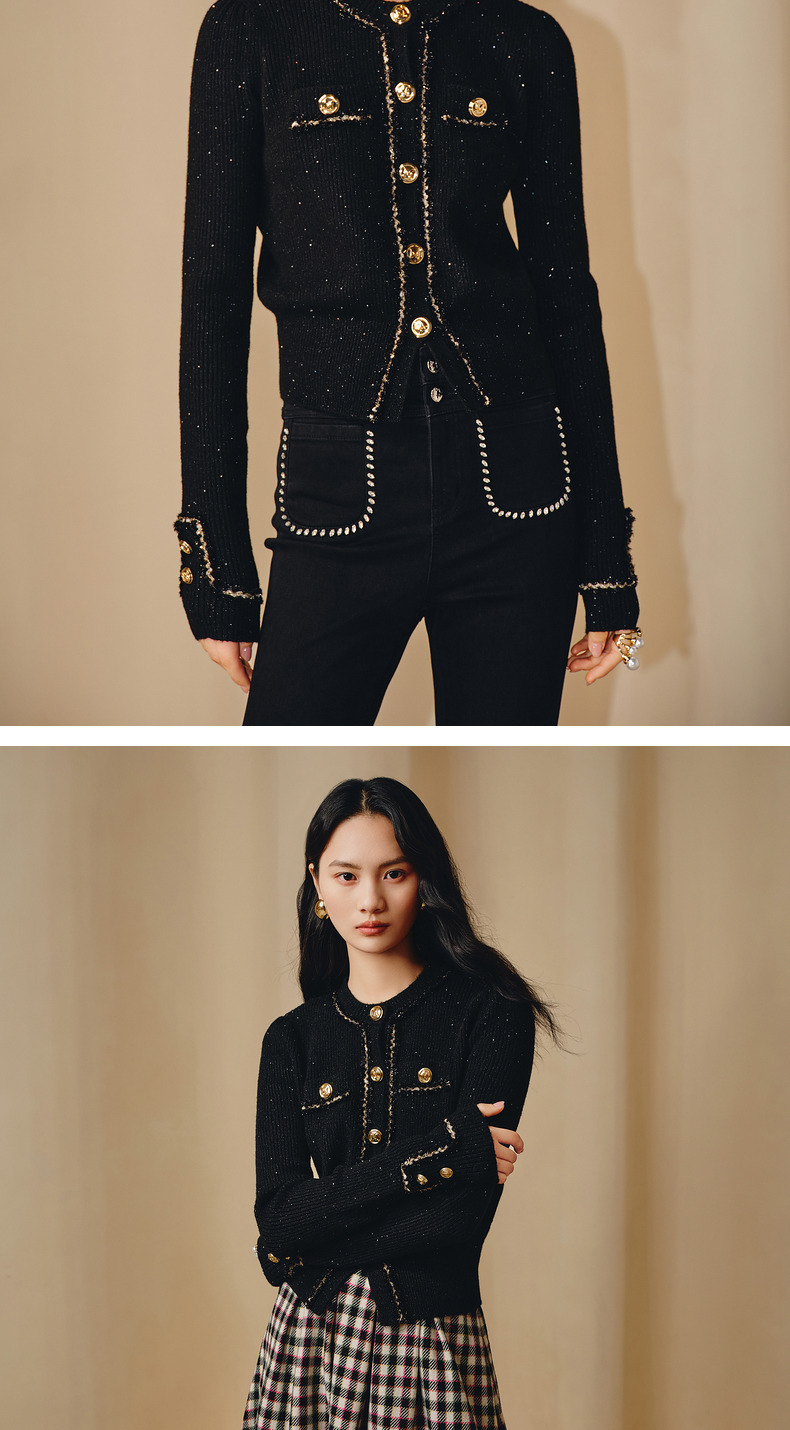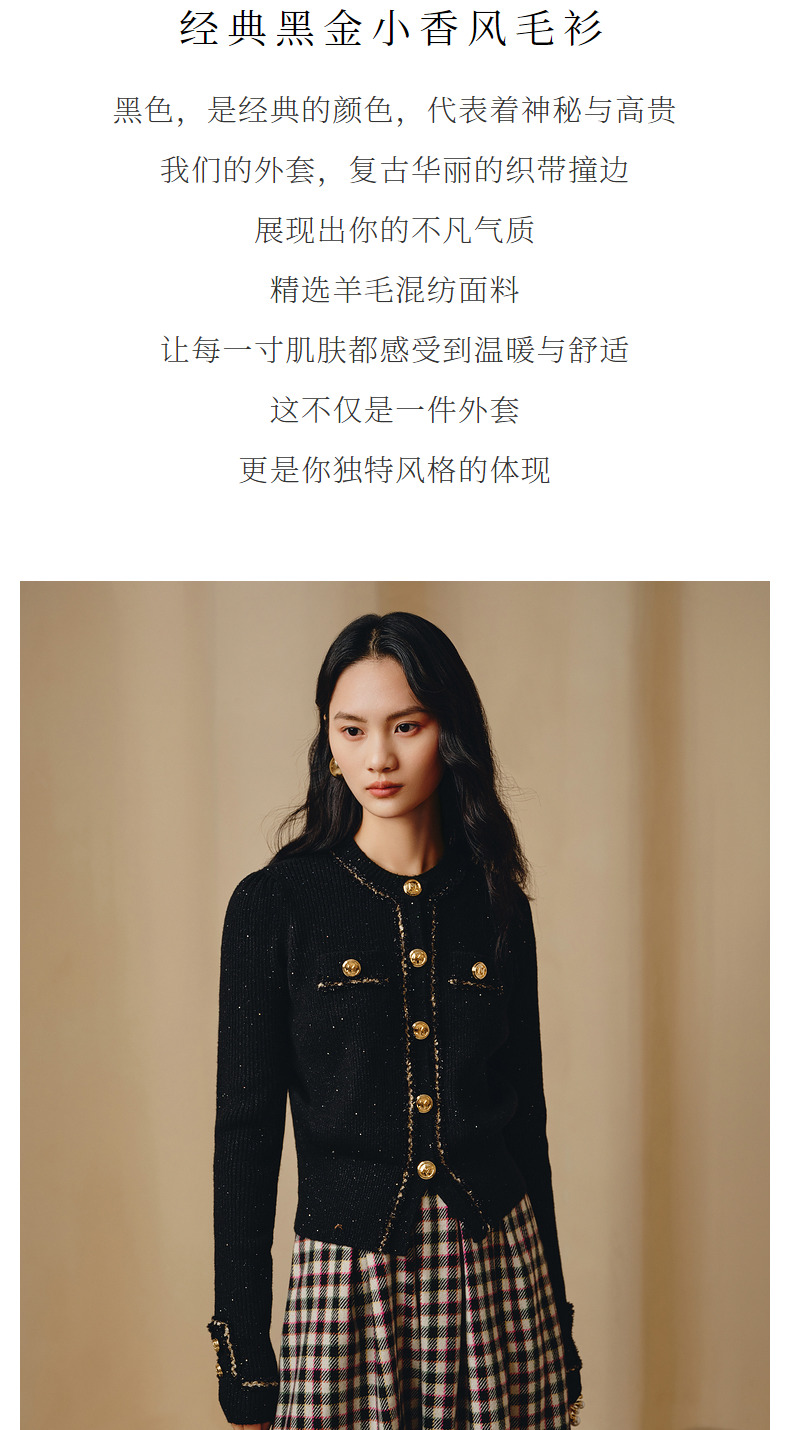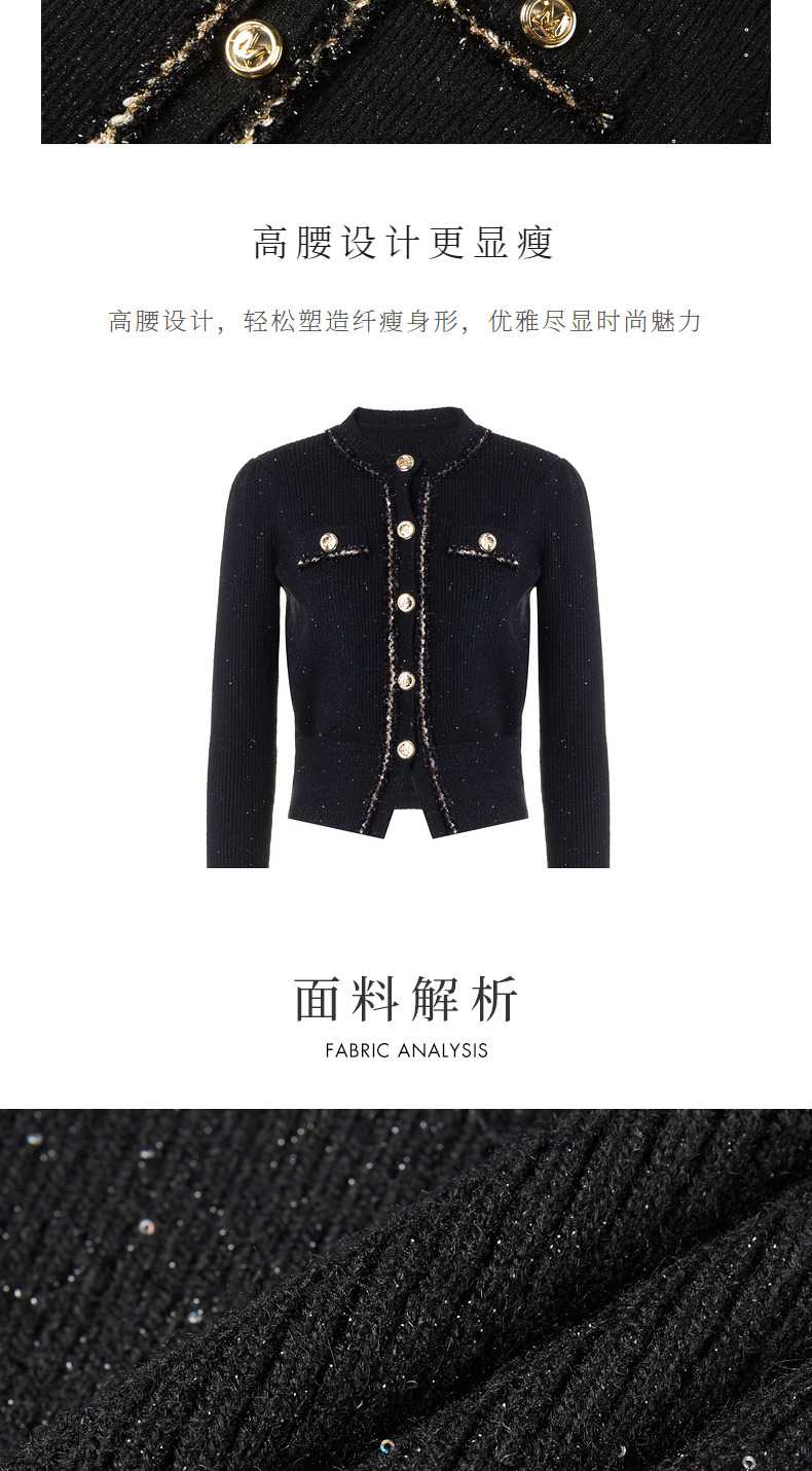 MAXRIENY*黑金小香风短外套毛衫修身上衣(货号:MC88JA838)