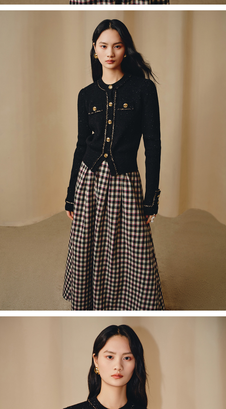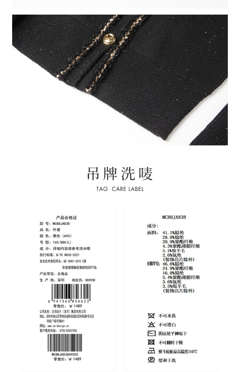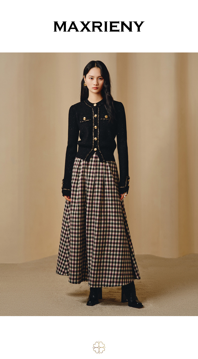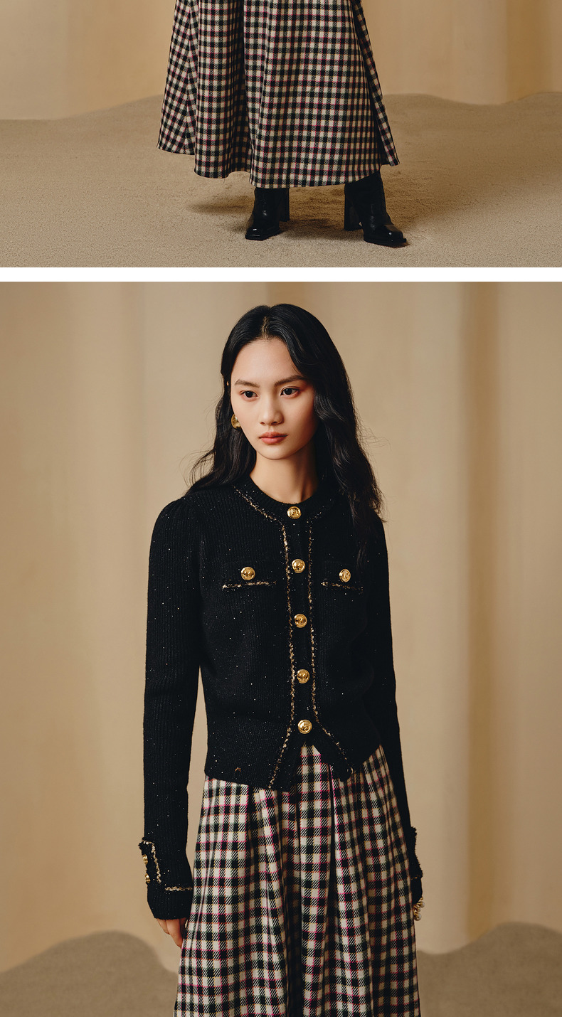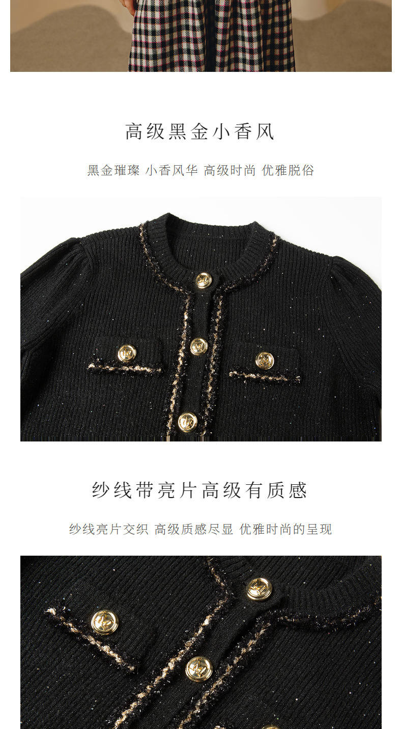 MAXRIENY*黑金小香风短外套毛衫修身上衣(货号:MC88JA838)