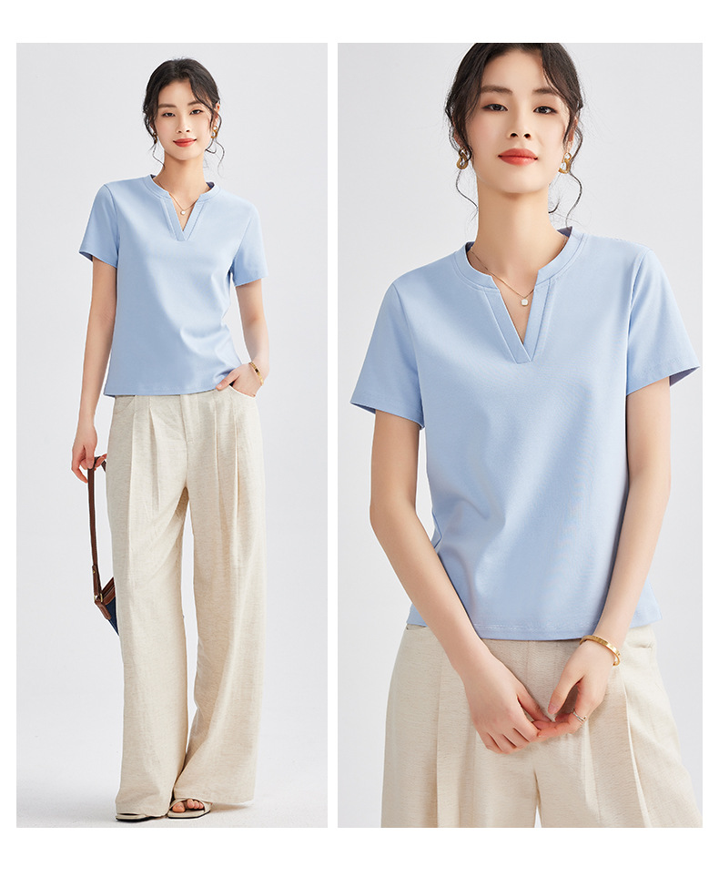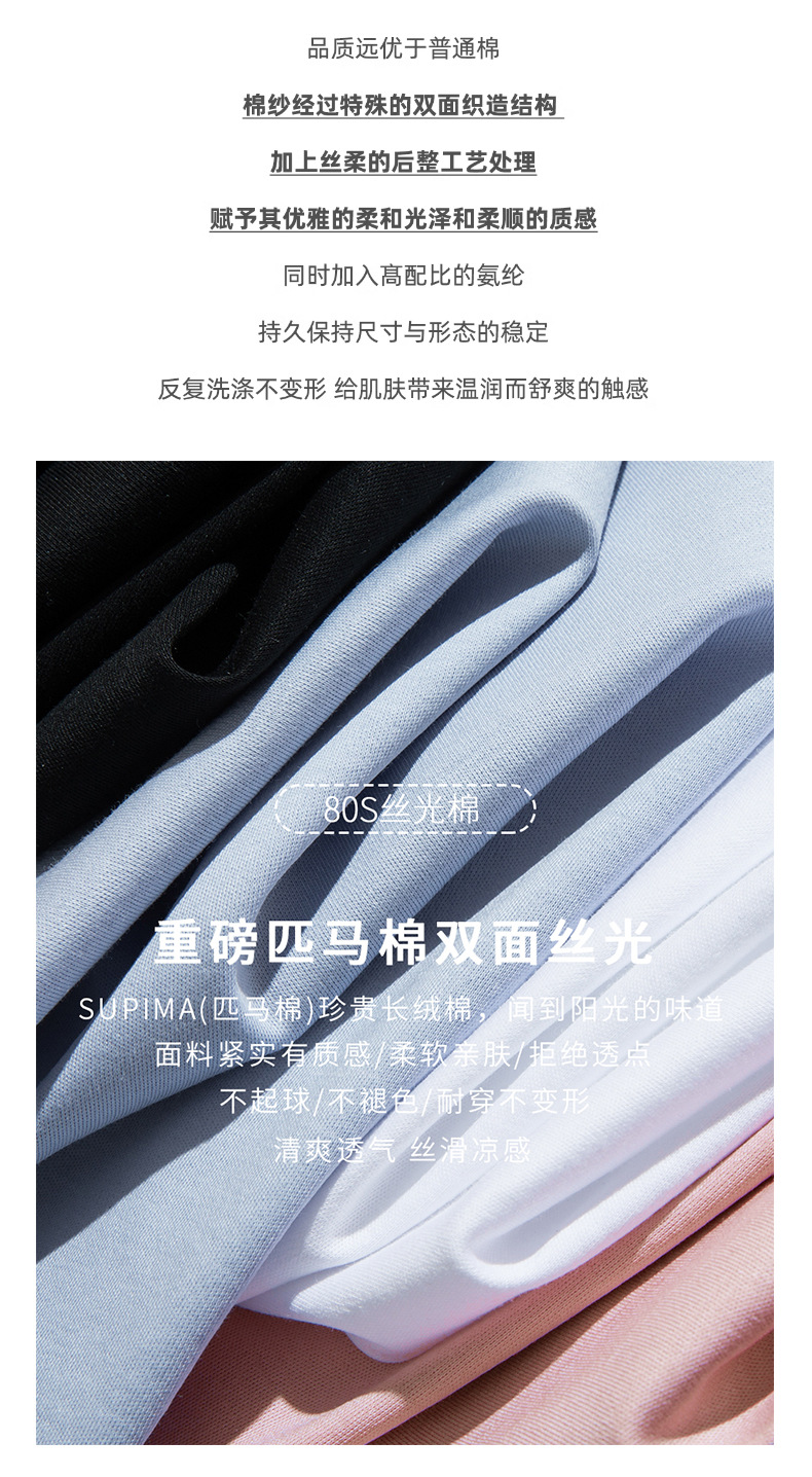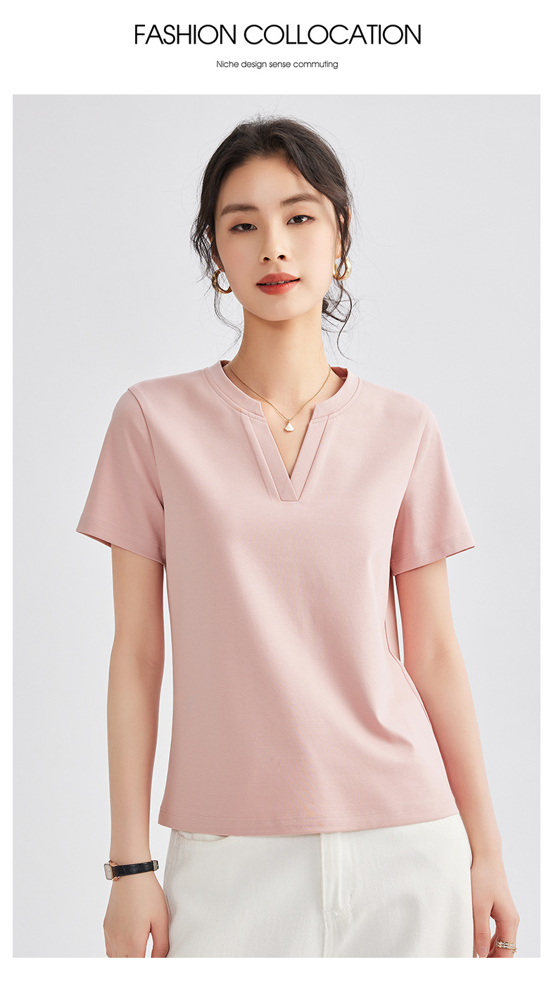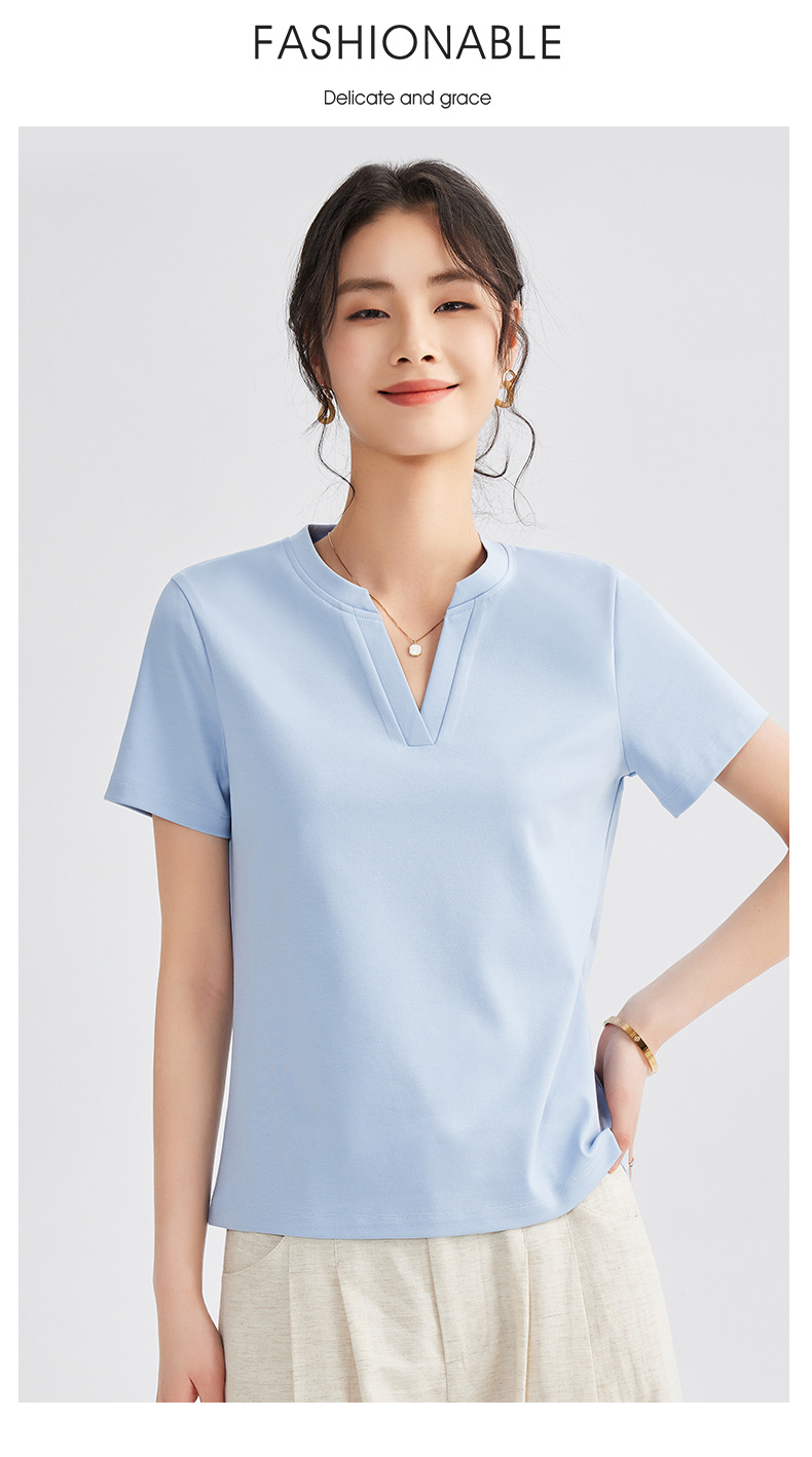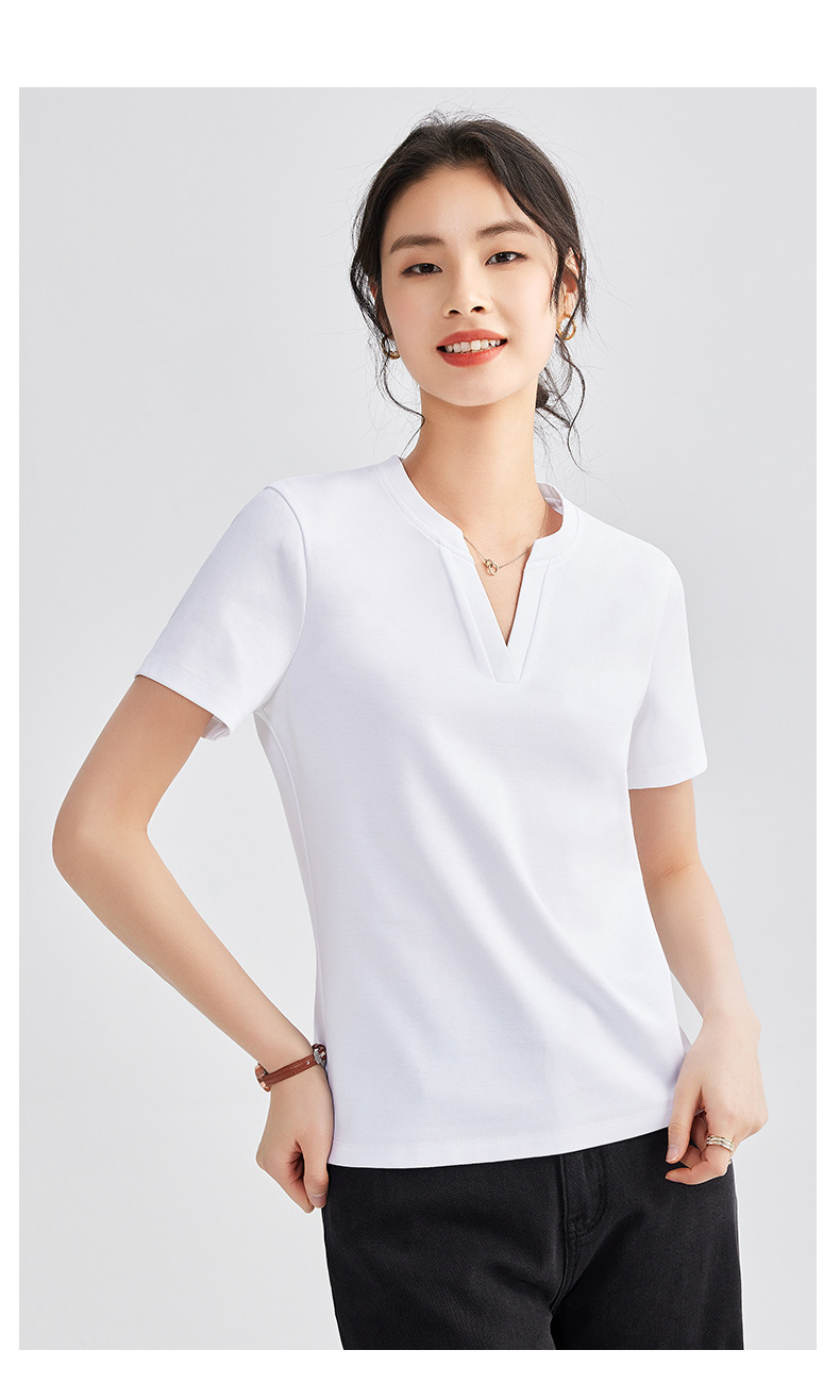 丁摩 80s双面丝光棉T设计感短袖T恤女夏季正肩合身V领纯色上衣挺括体恤5ZF- M674