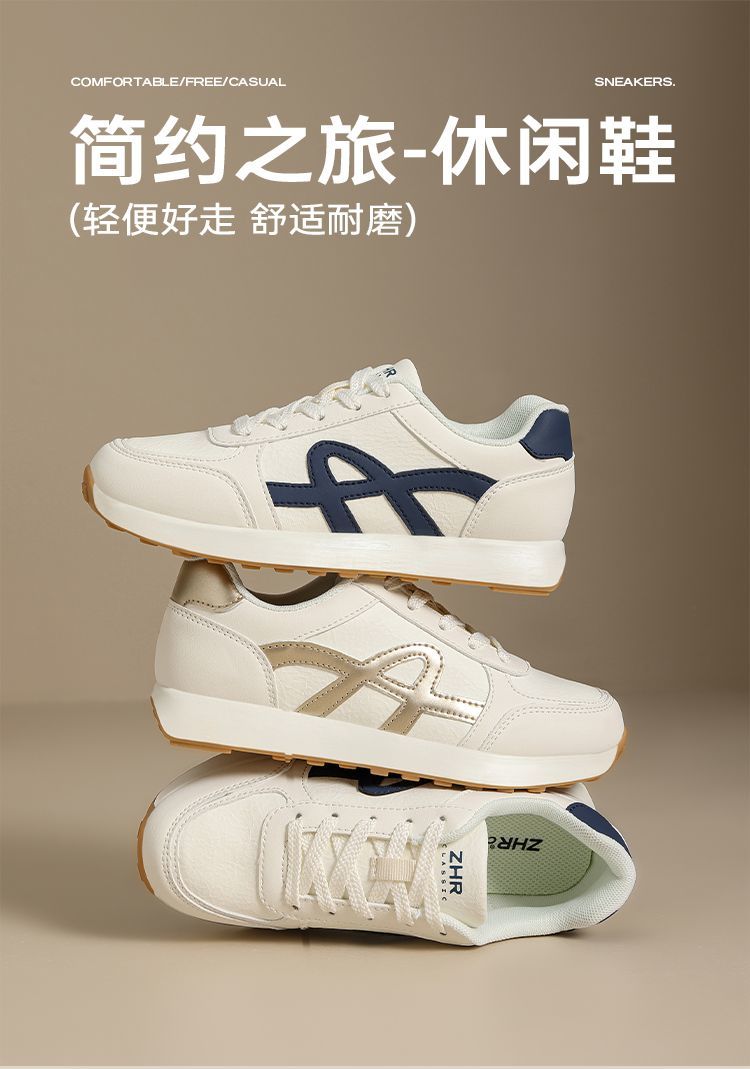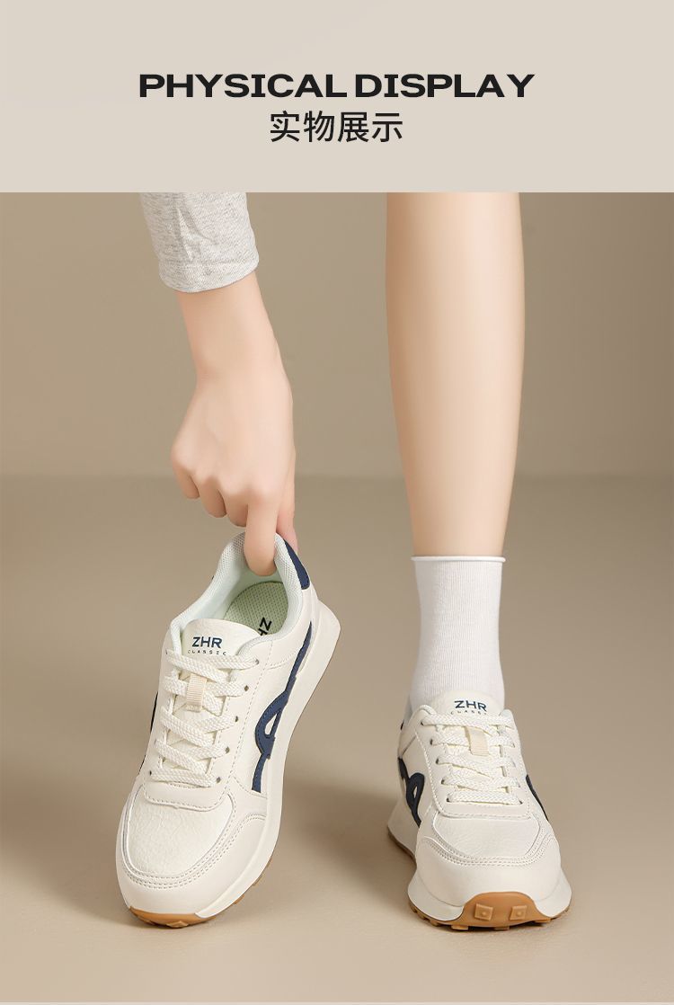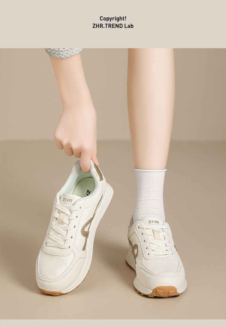ZHR复古厚底德训鞋女2025秋季超软百搭小白鞋增高轻便休闲运动鞋