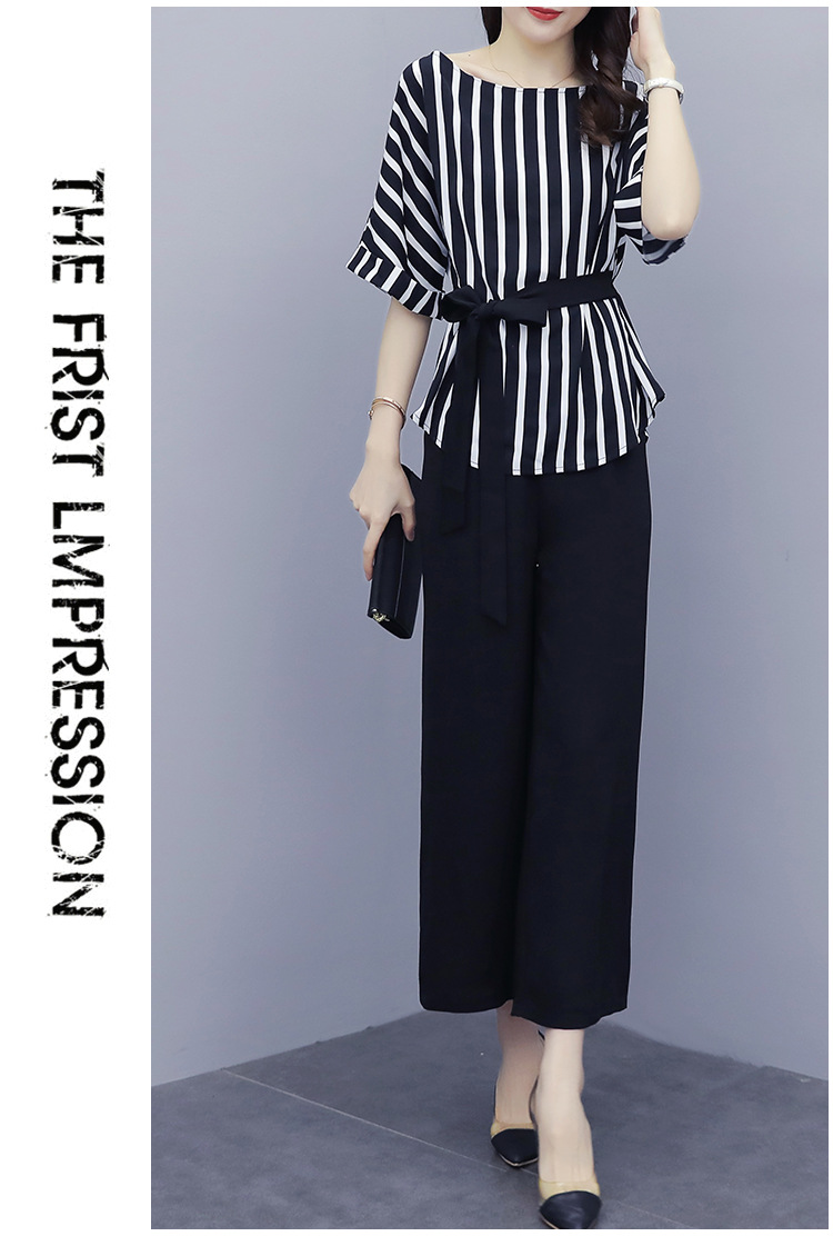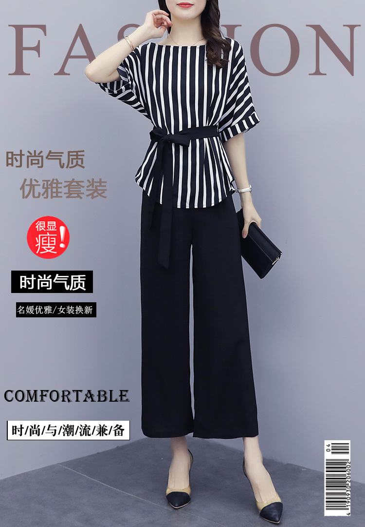 QYYS-H322355大码夏新款韩版胖妹妹阔腿裤两件套