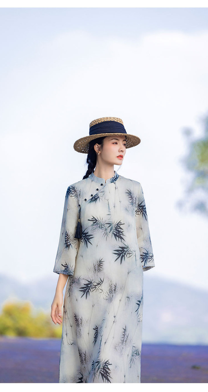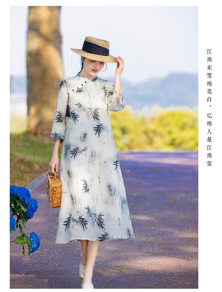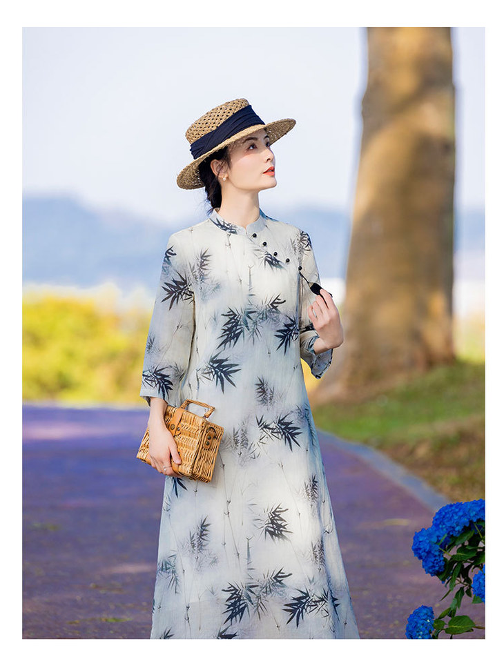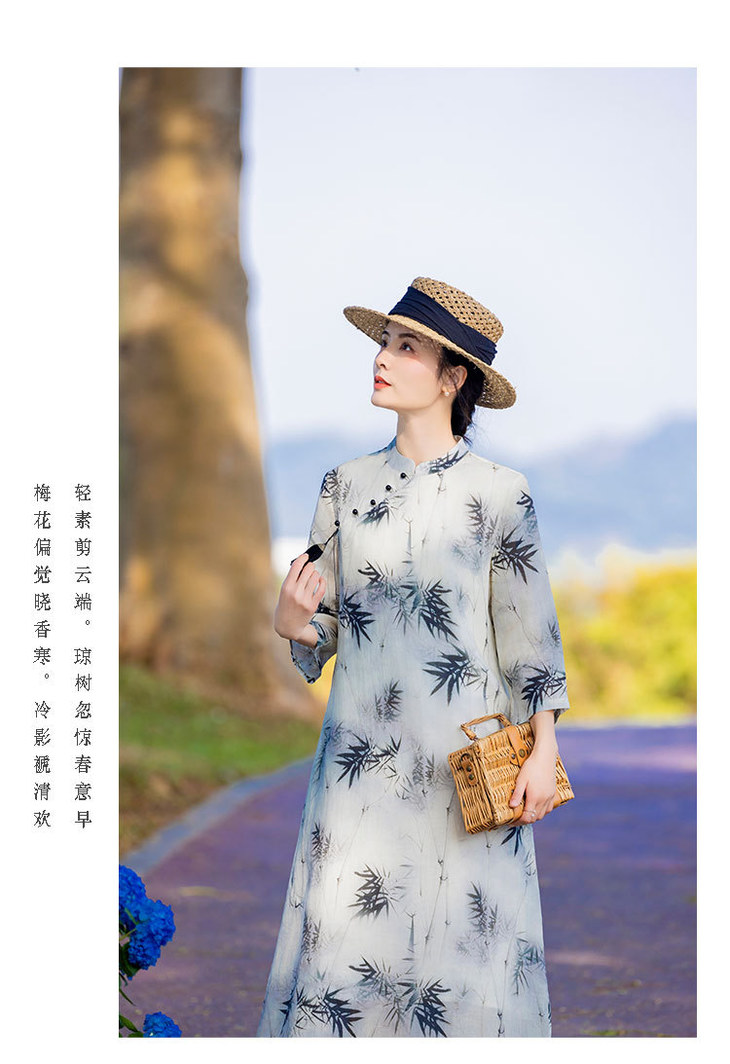 新中式棉麻女装苎麻连衣裙,立领国风复古改良旗袍TT-96222