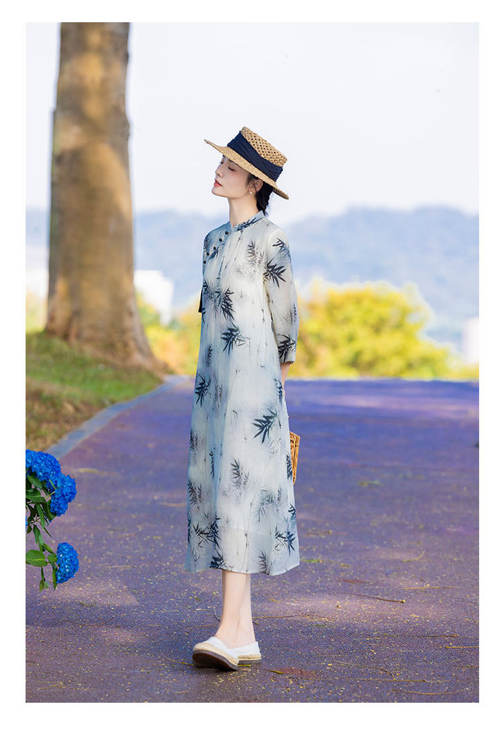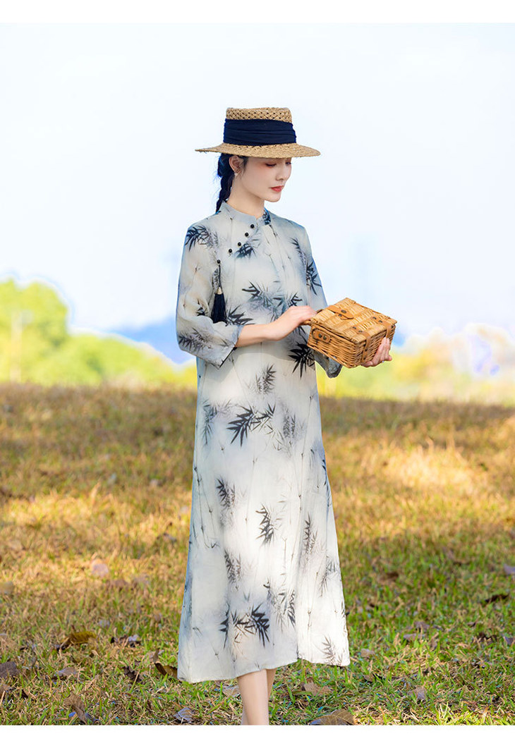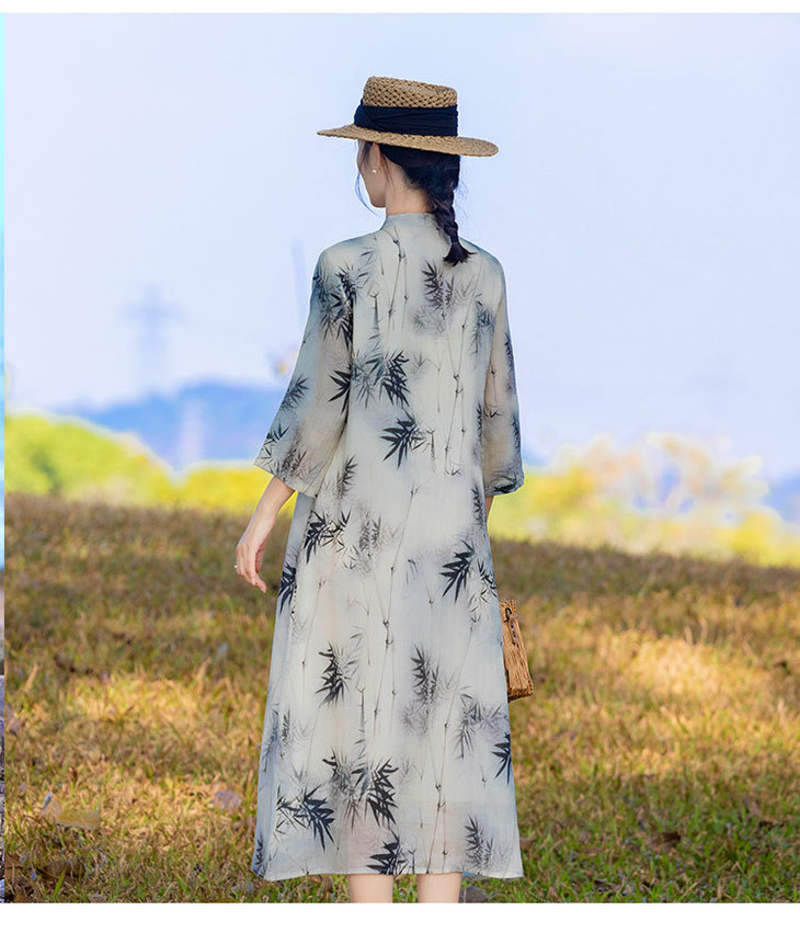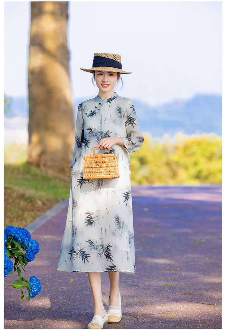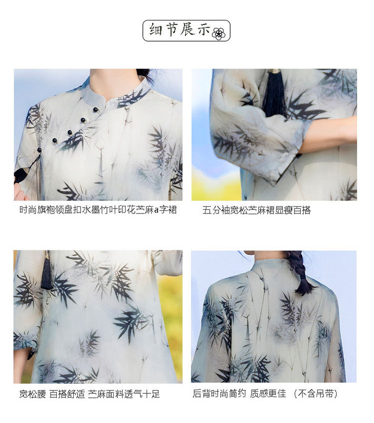 新中式棉麻女装苎麻连衣裙,立领国风复古改良旗袍TT-96222
