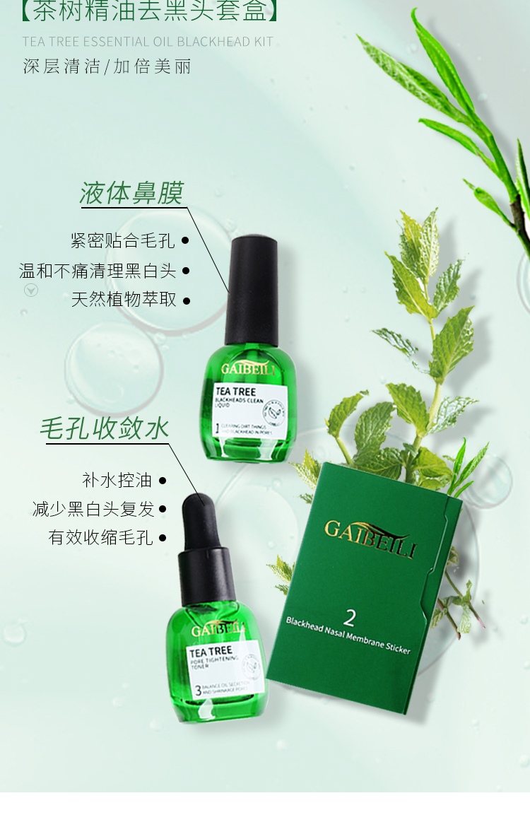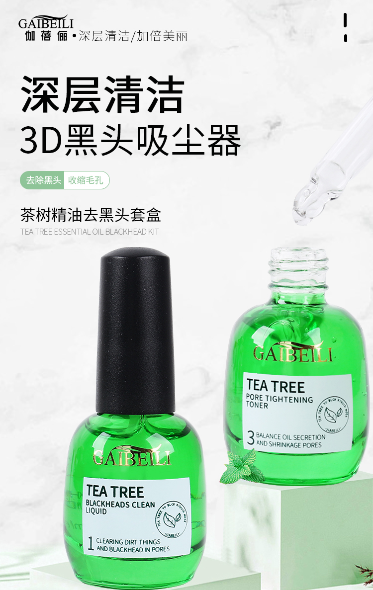 【3D黑头吸尘器】伽蓓俪Gaibeili茶树去黑头套盒(鼻膜液15ml+收敛精华15ml+鼻贴纸90张)