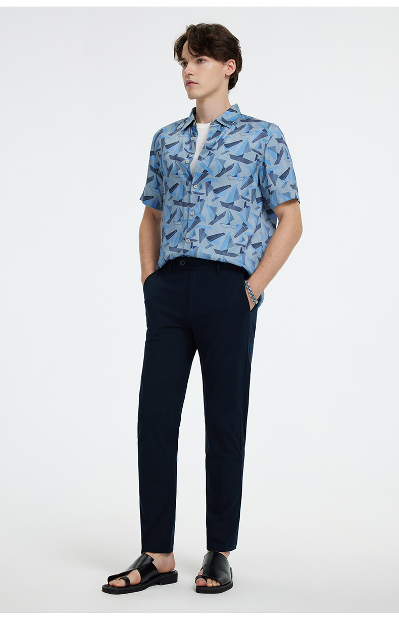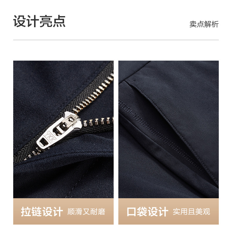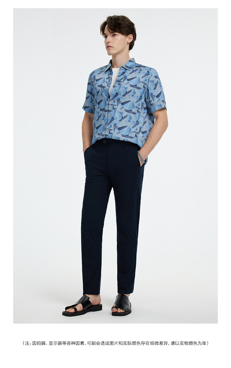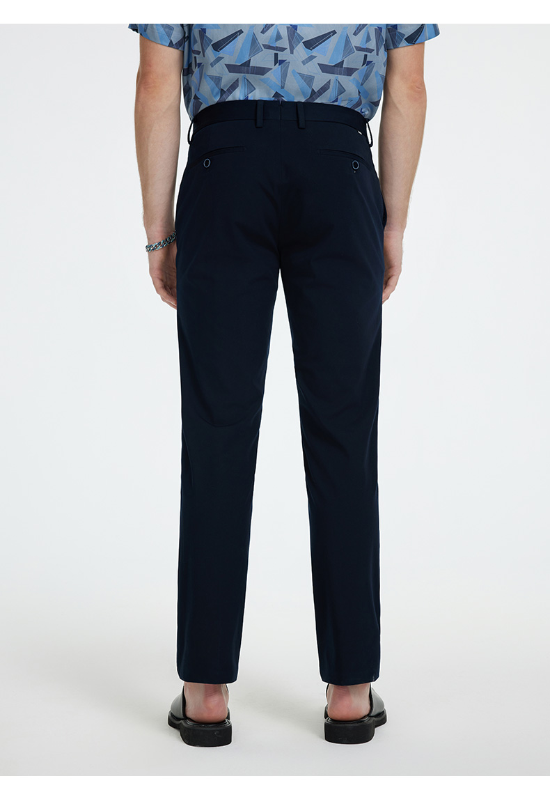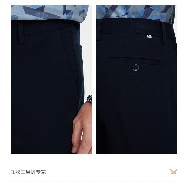 九牧王 明星同款 春夏修身版无褶藏青斜插休闲裤JB1D80832