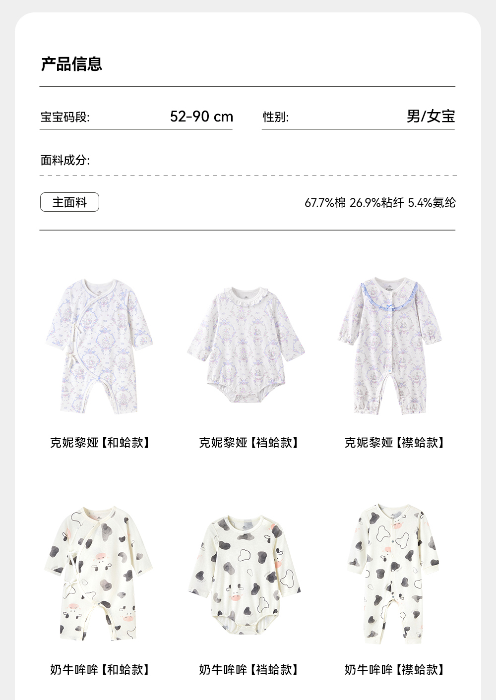 英氏【优可丝】7A抑菌婴儿衣服四季连体衣男女童长袖爬服新款新生儿衣服