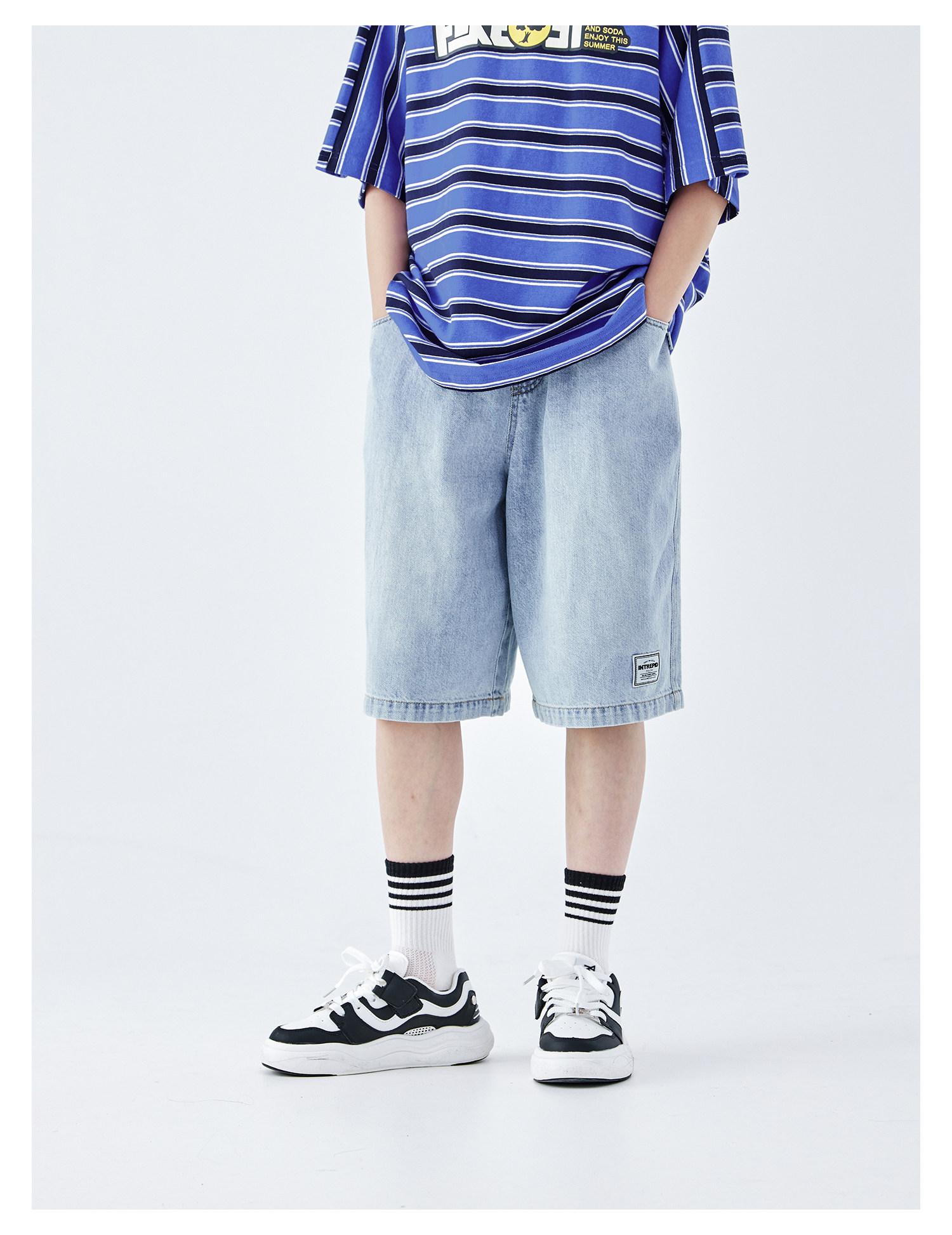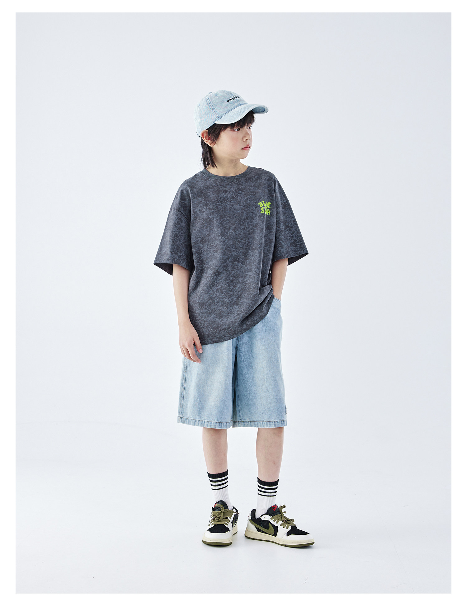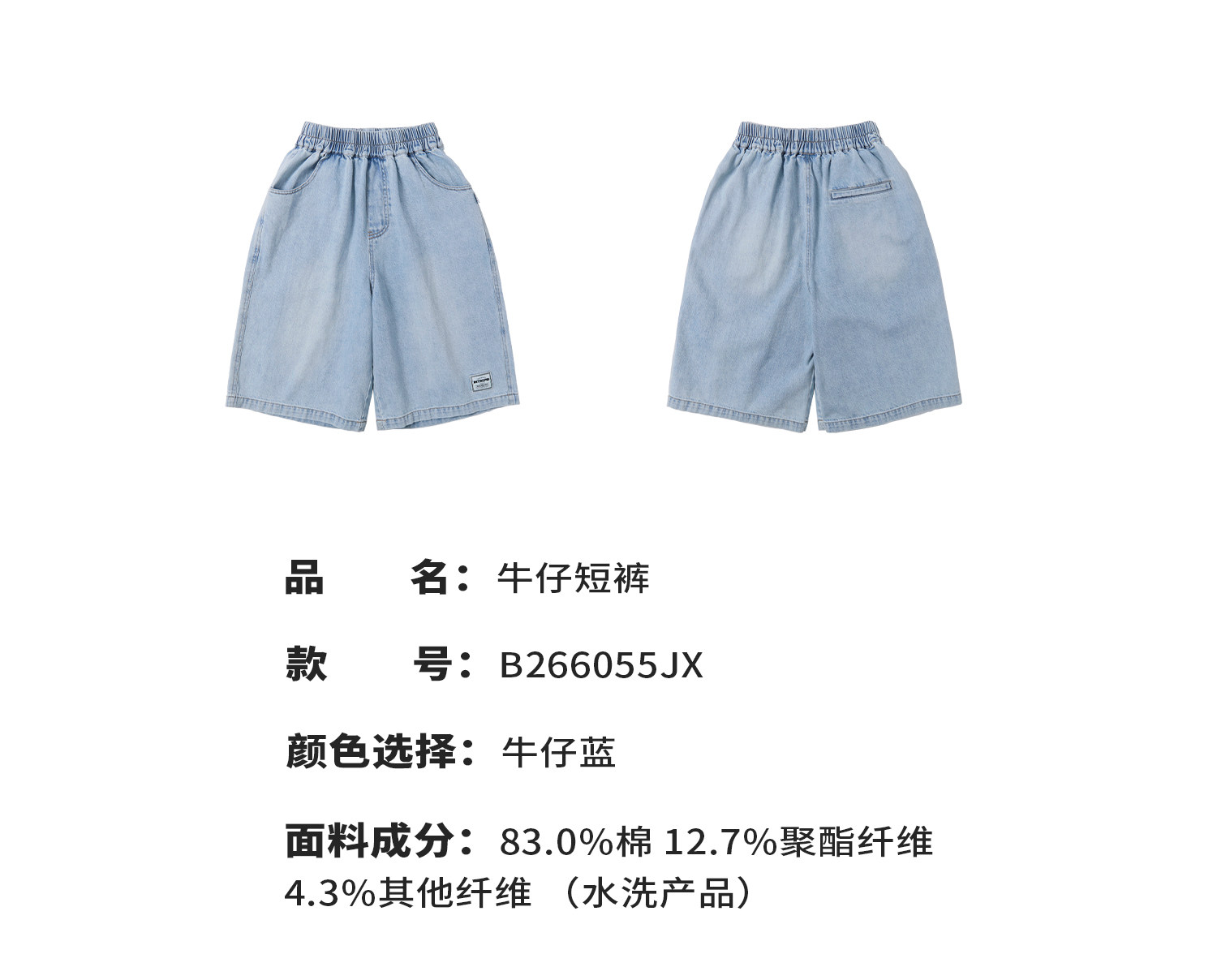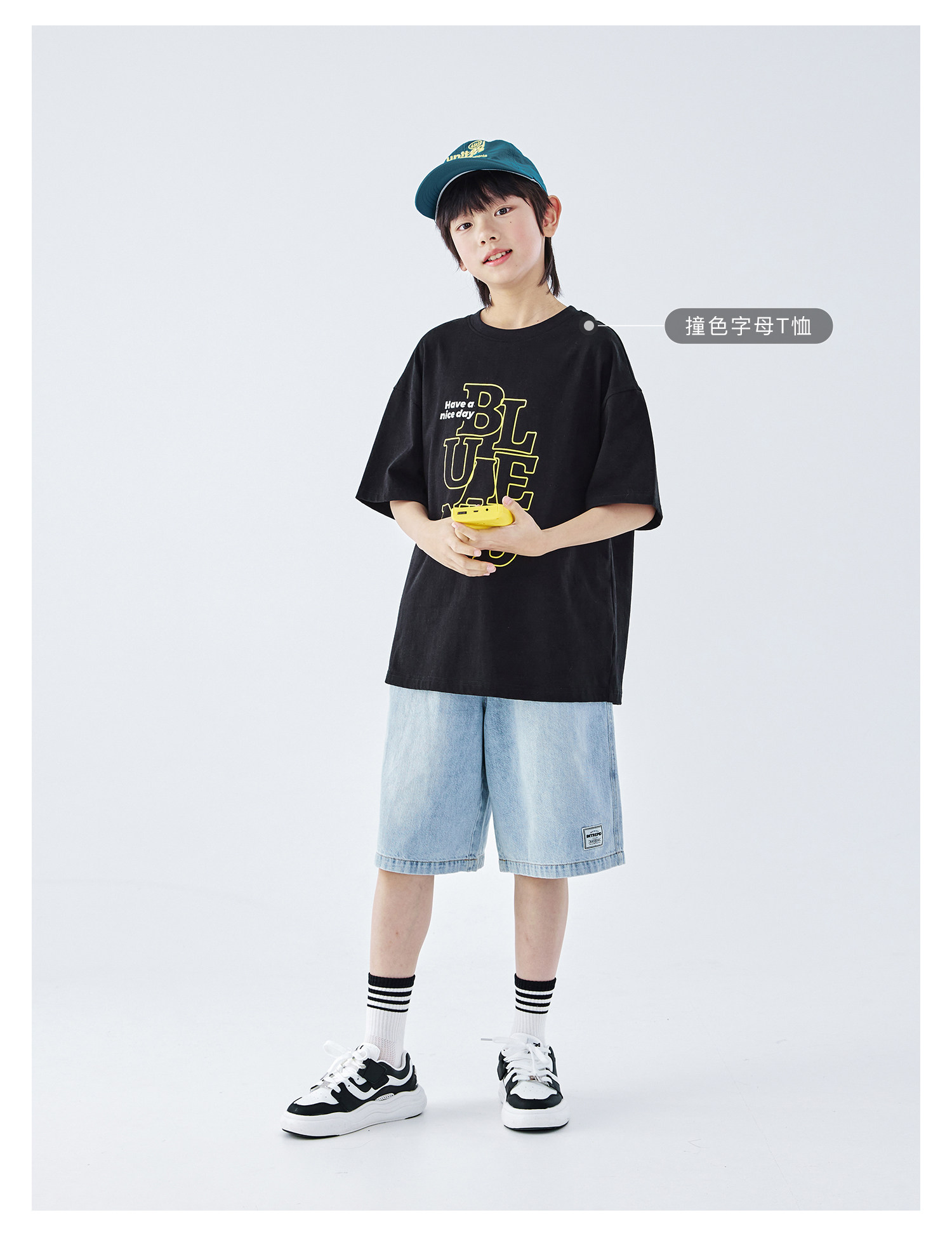 蓝汽水2026夏新款男童休闲裤青少年美式复古水洗亲肤直筒牛仔短裤