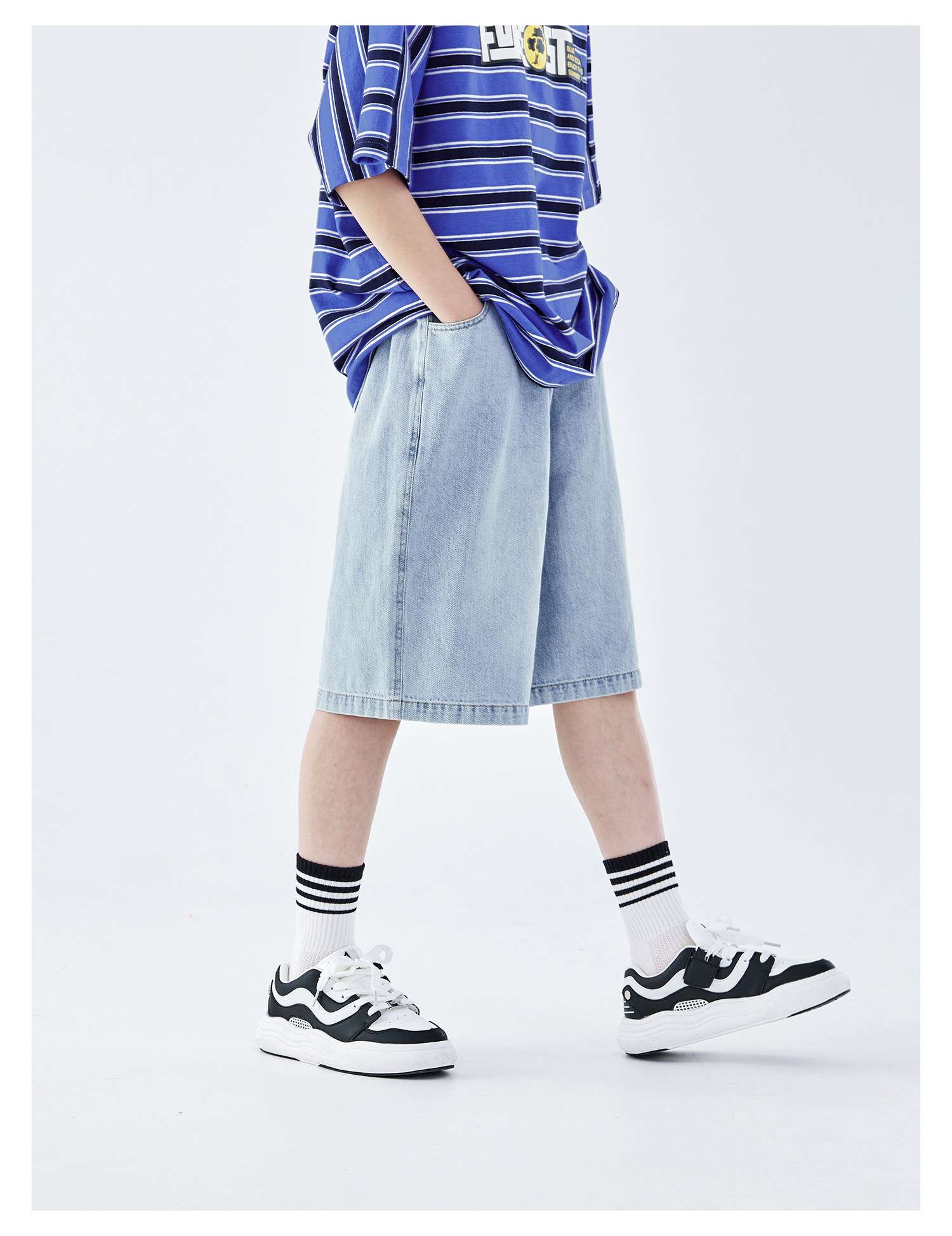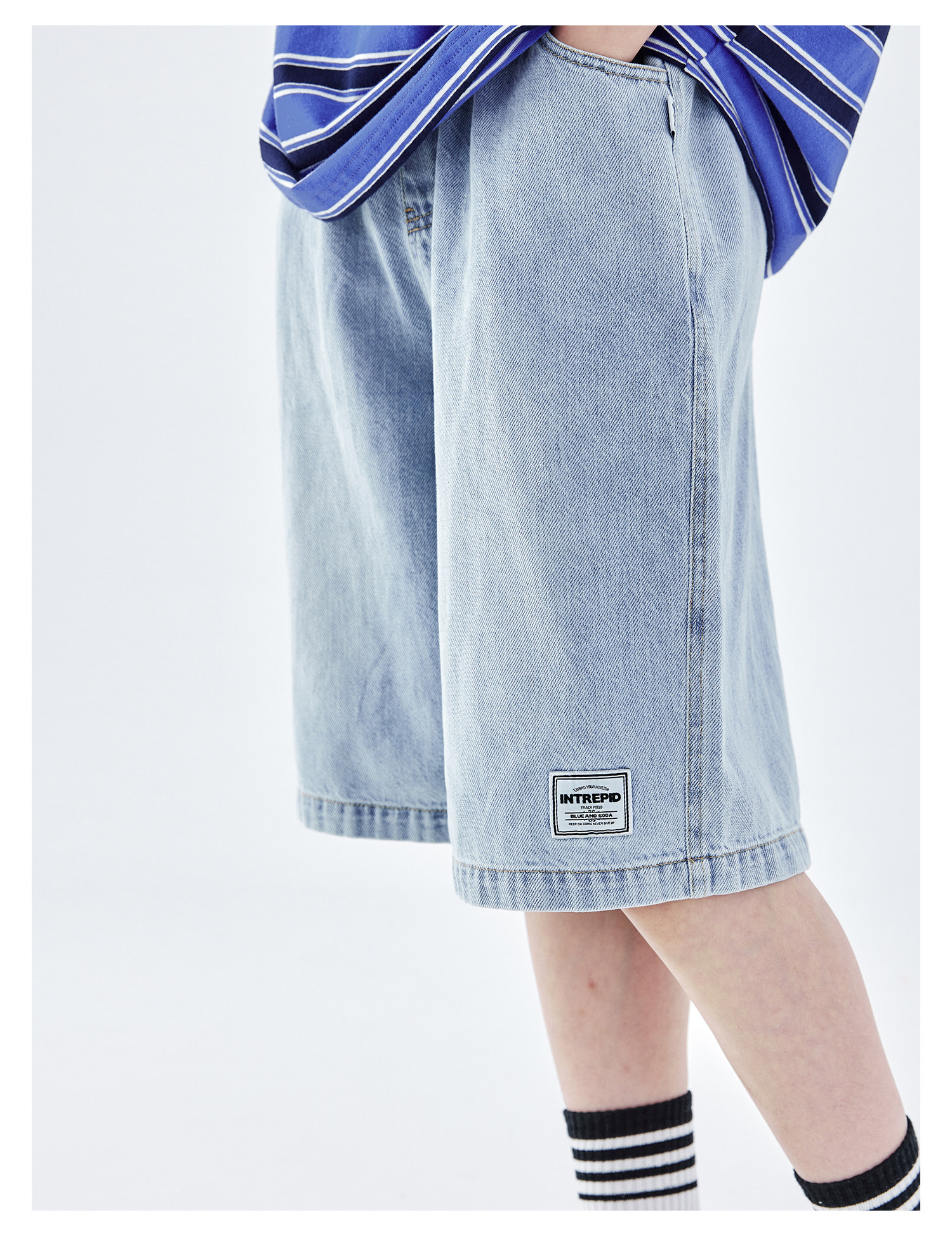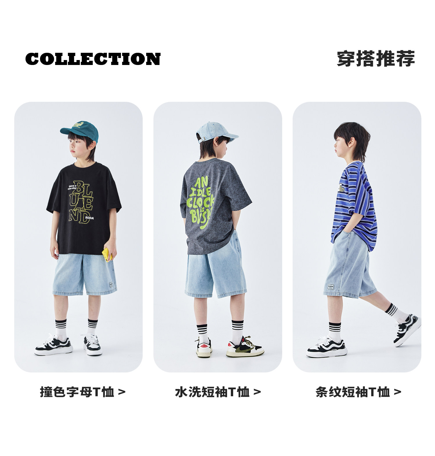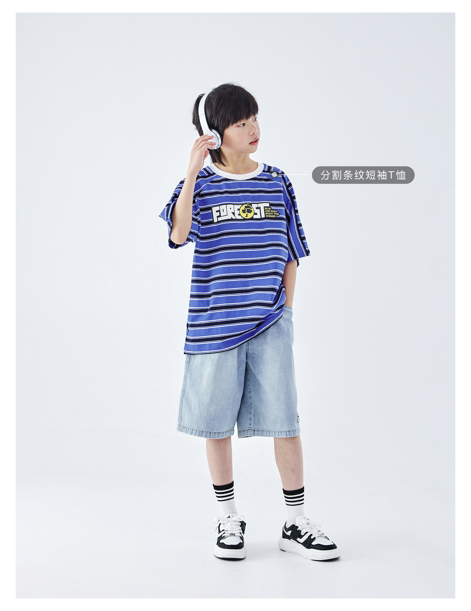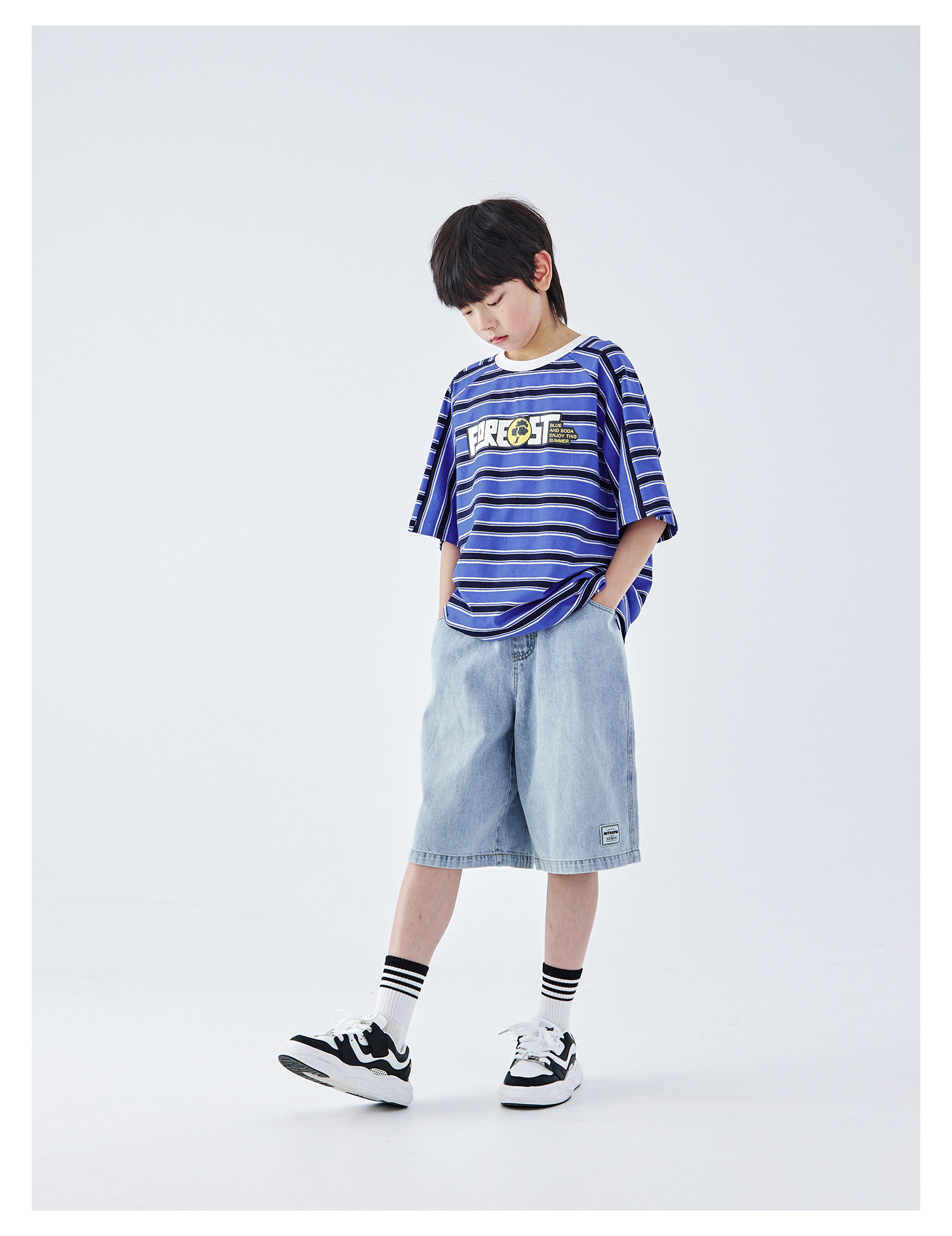 蓝汽水2026夏新款男童休闲裤青少年美式复古水洗亲肤直筒牛仔短裤
