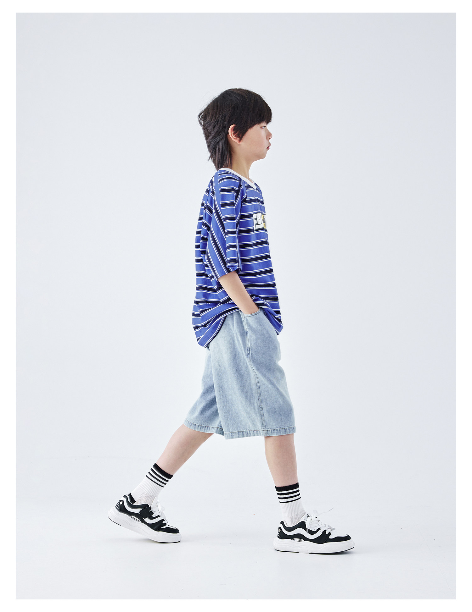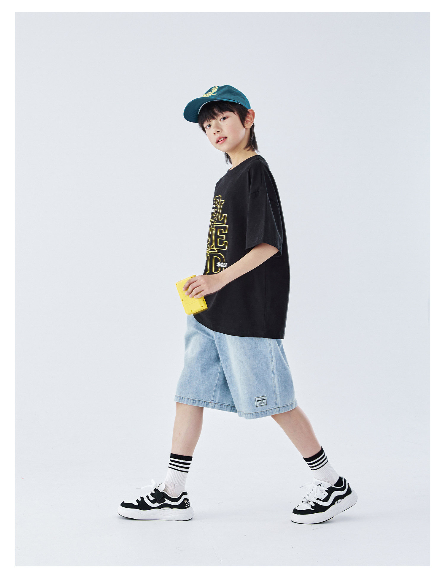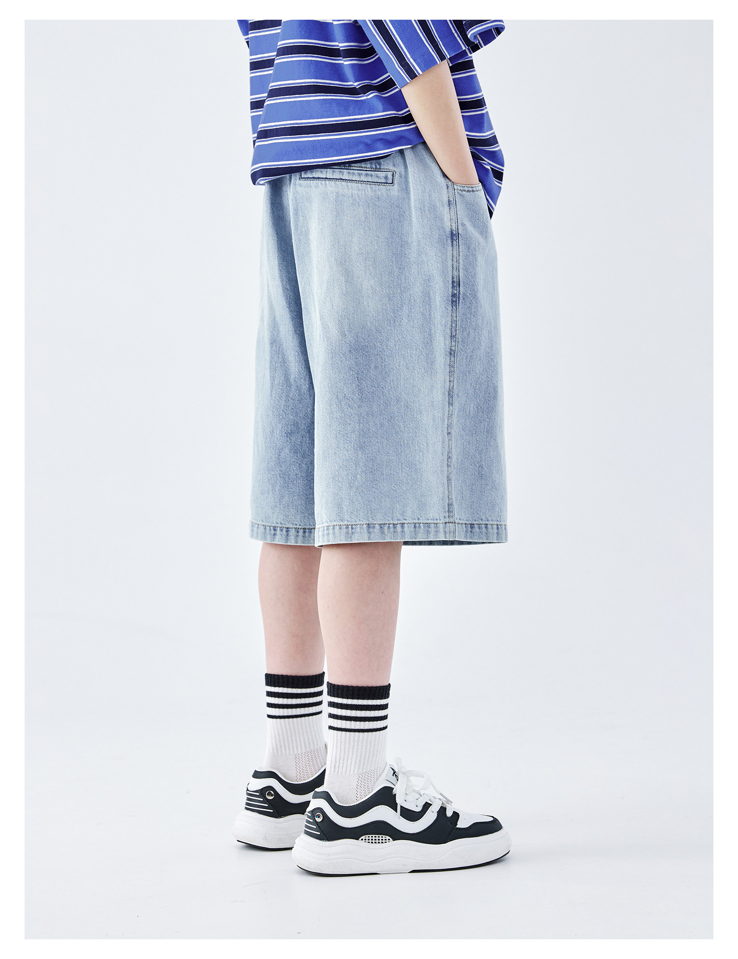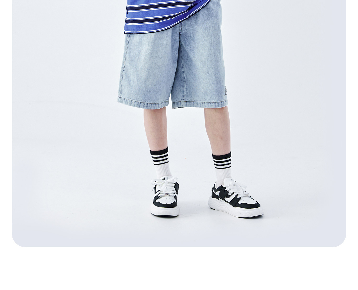 蓝汽水2026夏新款男童休闲裤青少年美式复古水洗亲肤直筒牛仔短裤