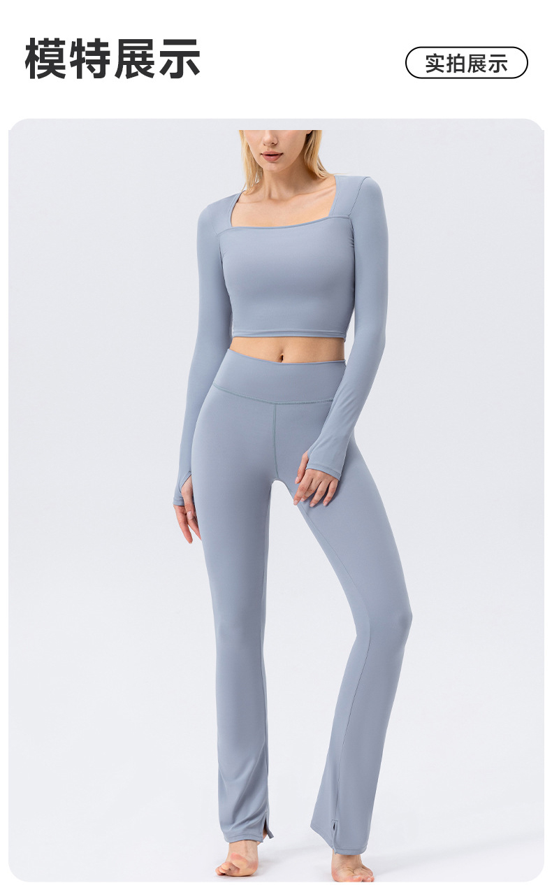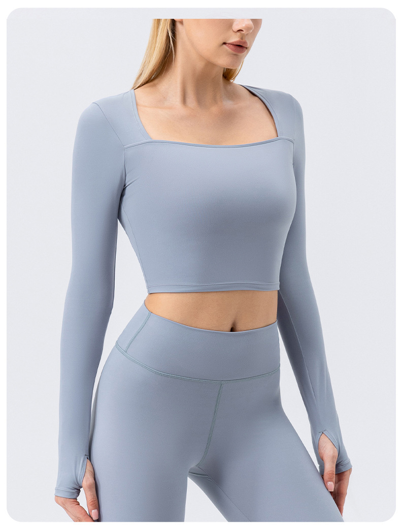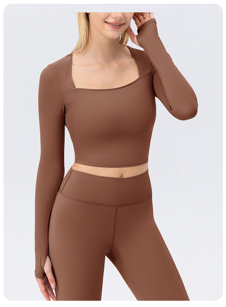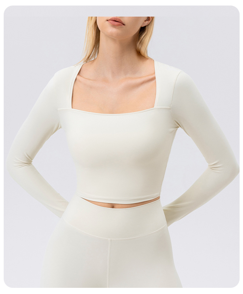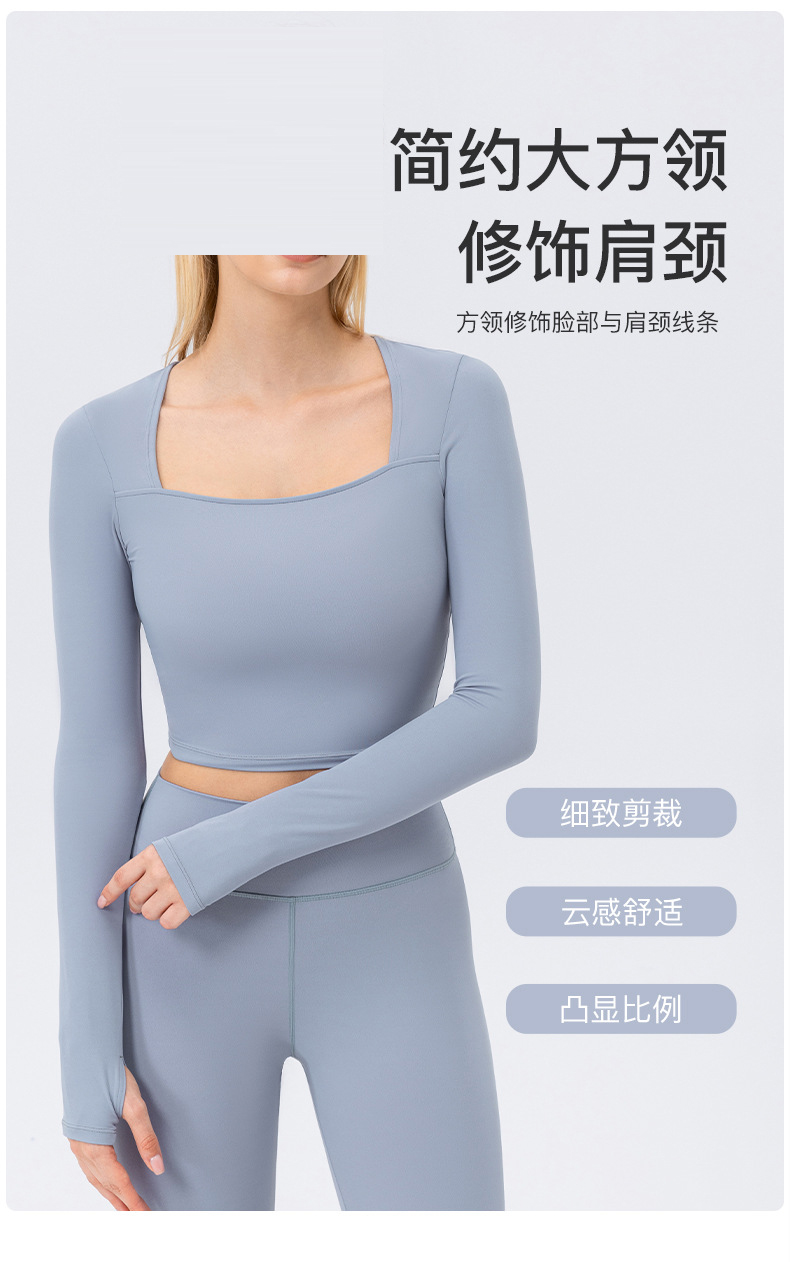 跃牌【欲动春风】系列 秋冬瑜伽服长袖女方领裸感紧身运动T恤42552(此款为欧码)(无胸垫)