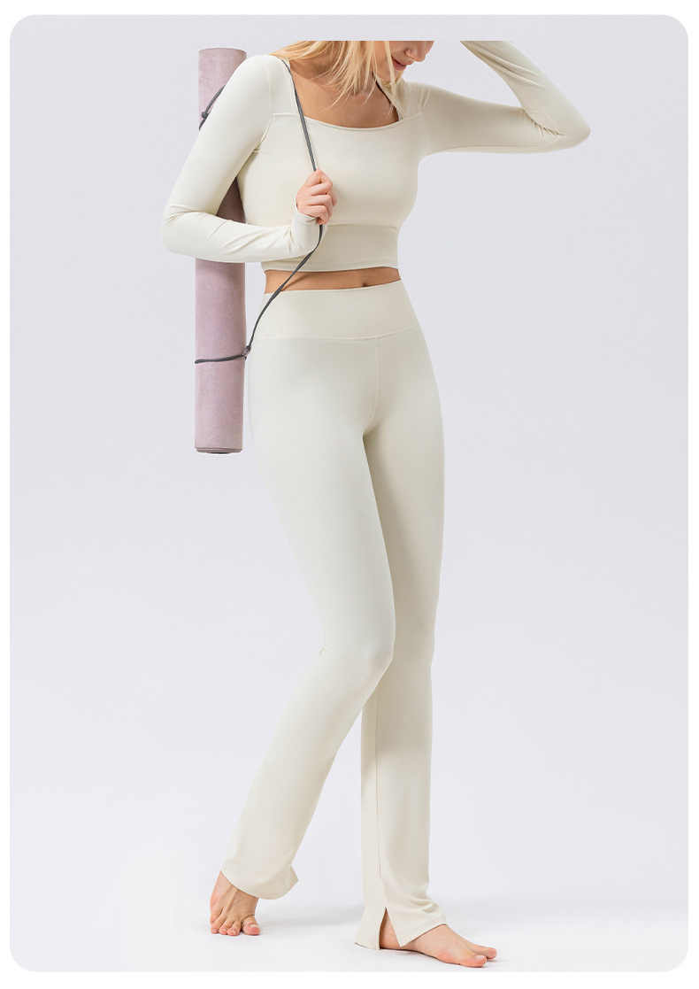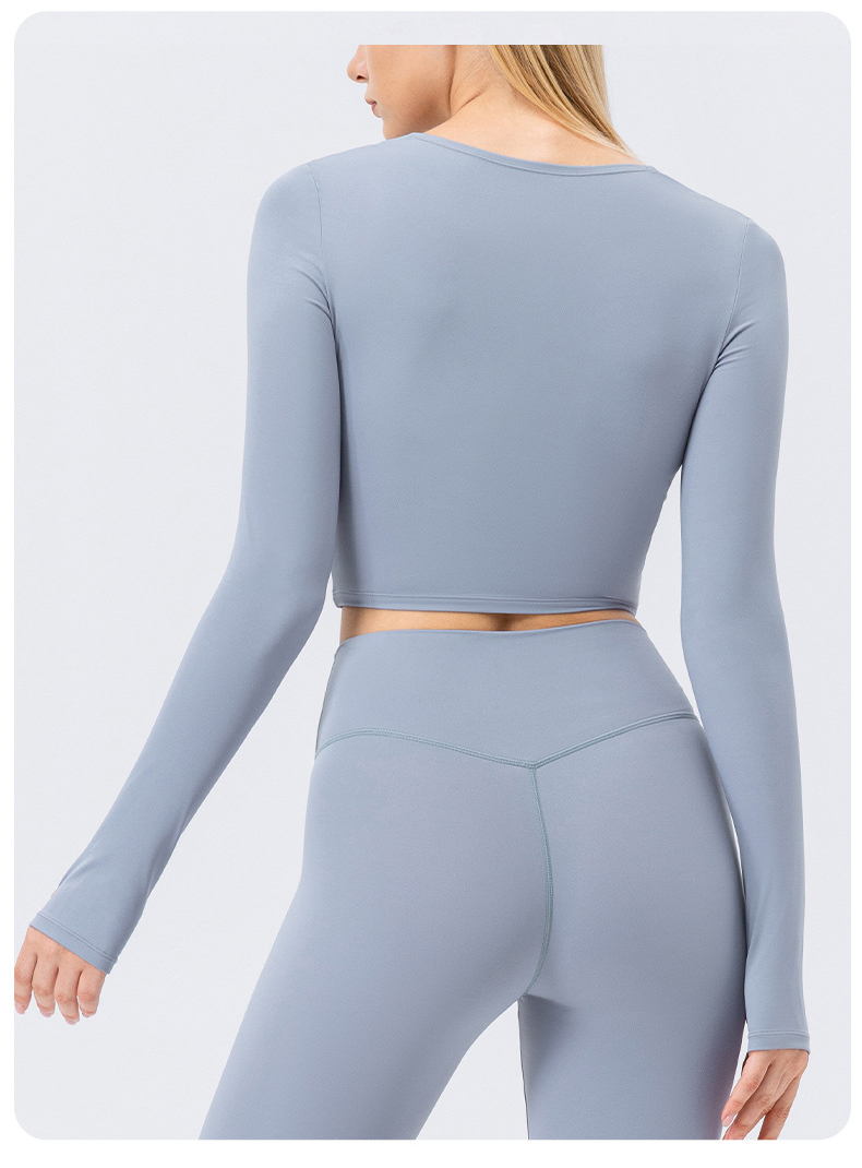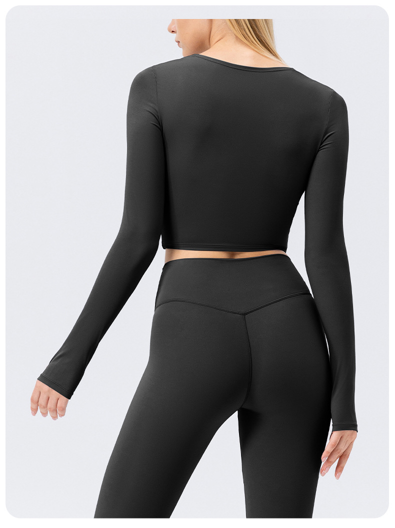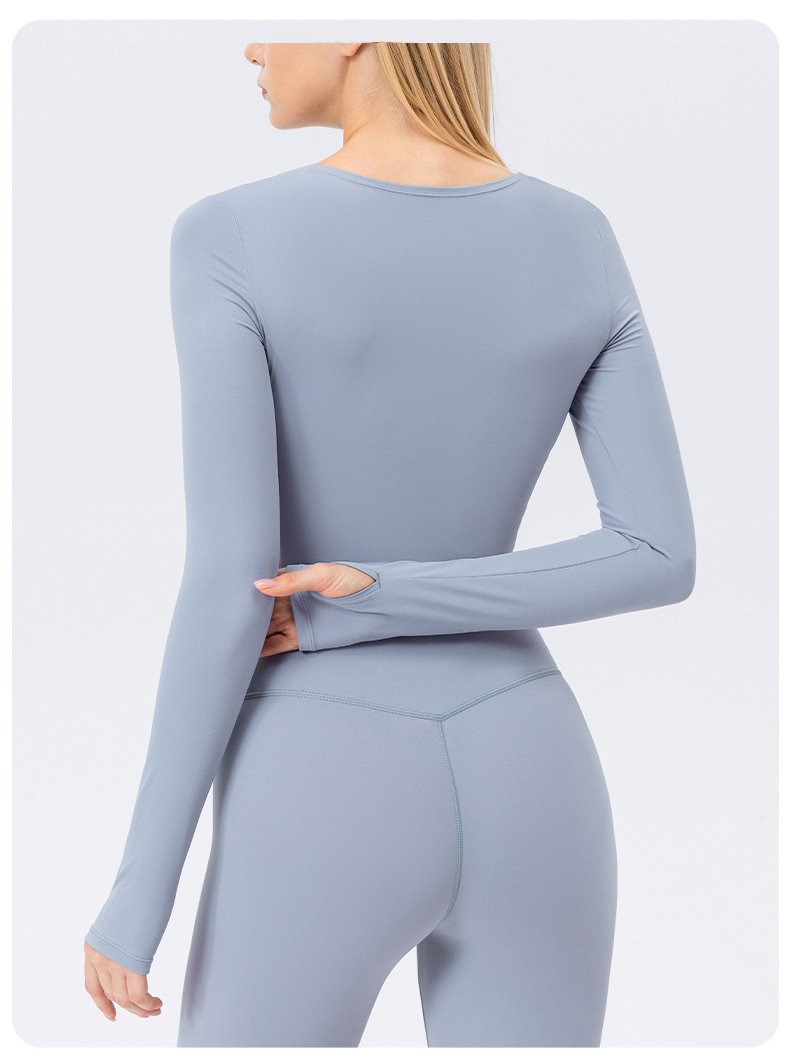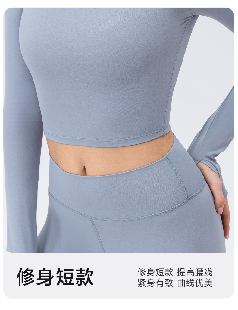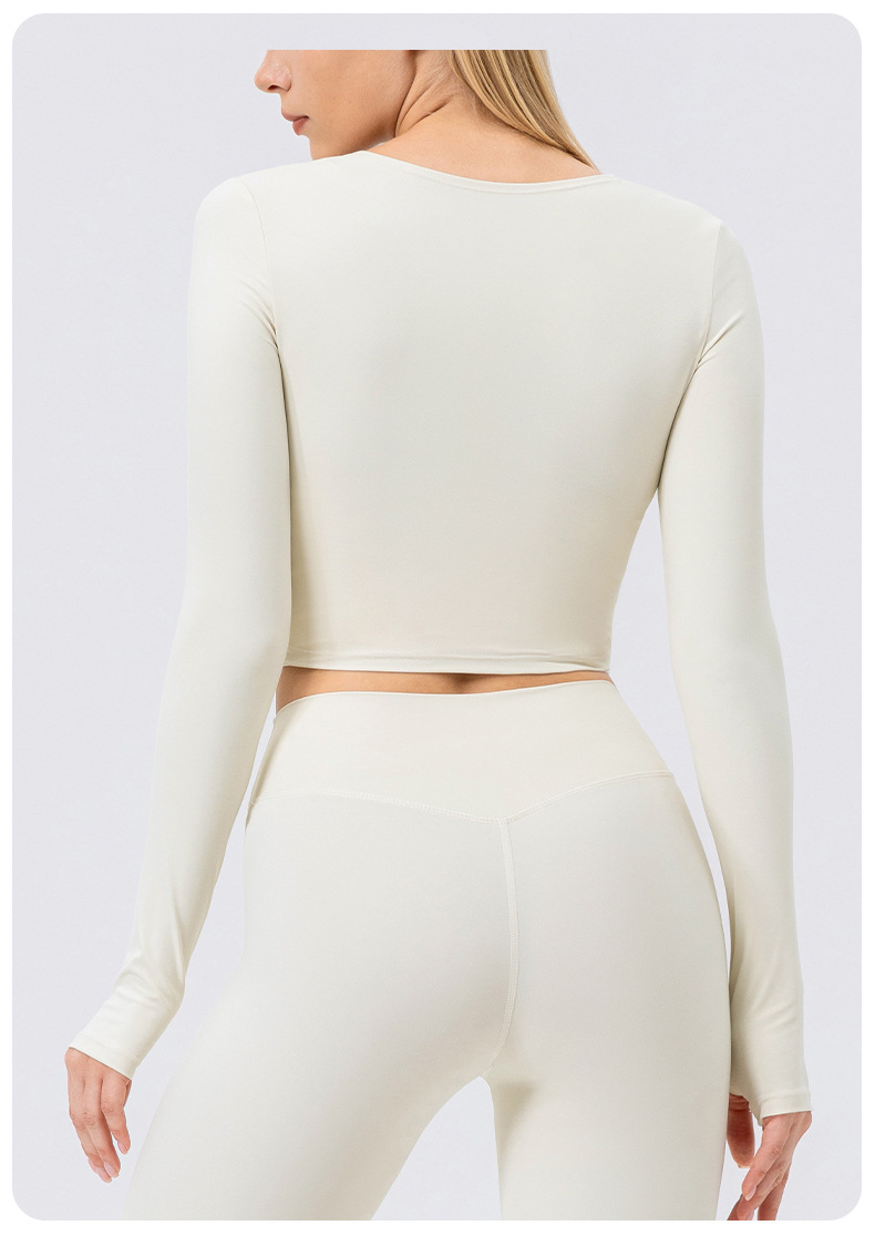 跃牌【欲动春风】系列 秋冬瑜伽服长袖女方领裸感紧身运动T恤42552(此款为欧码)(无胸垫)