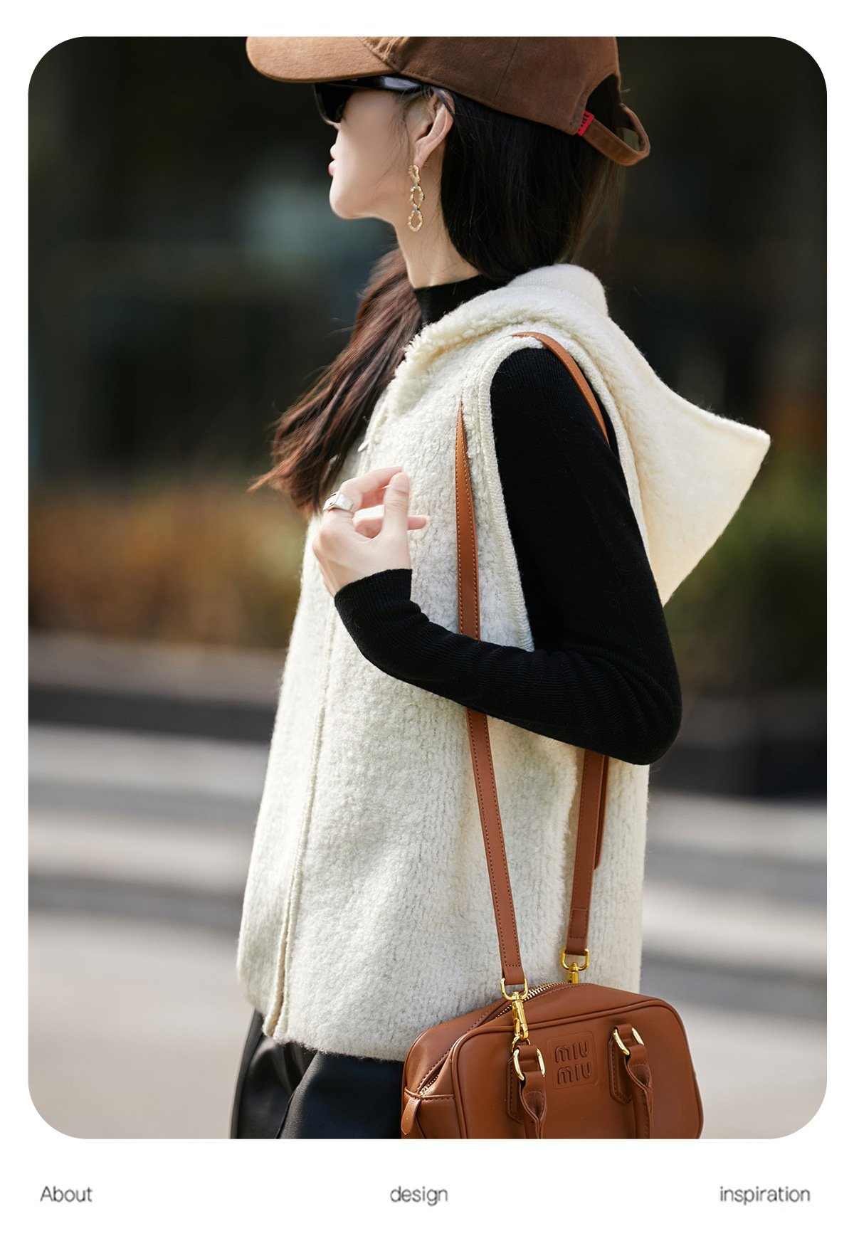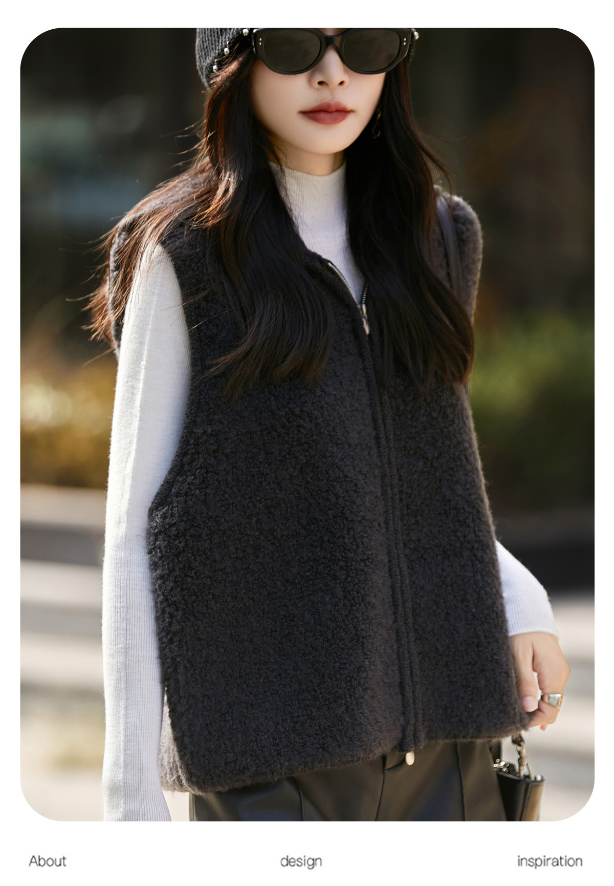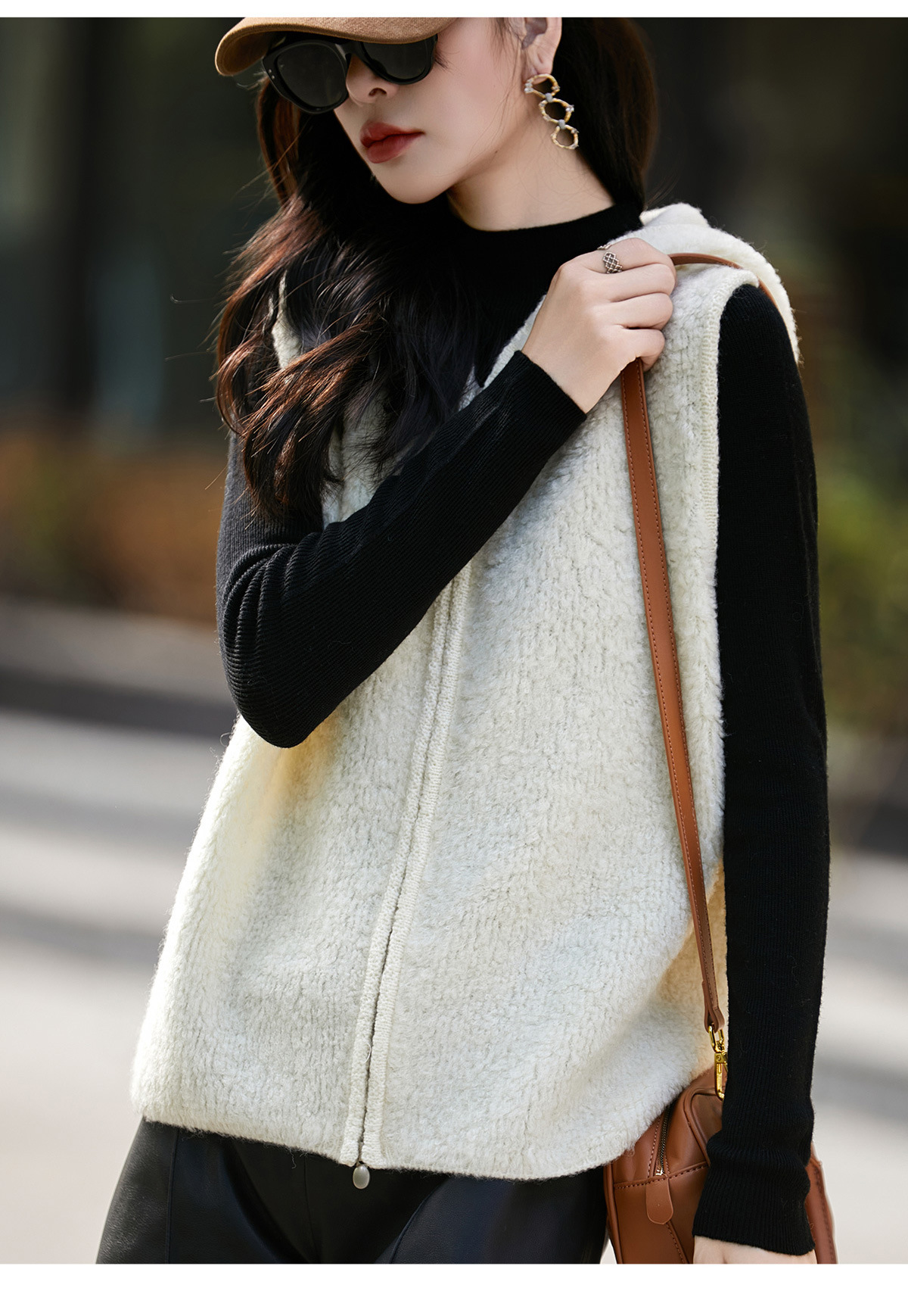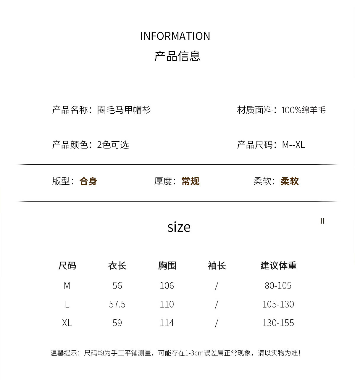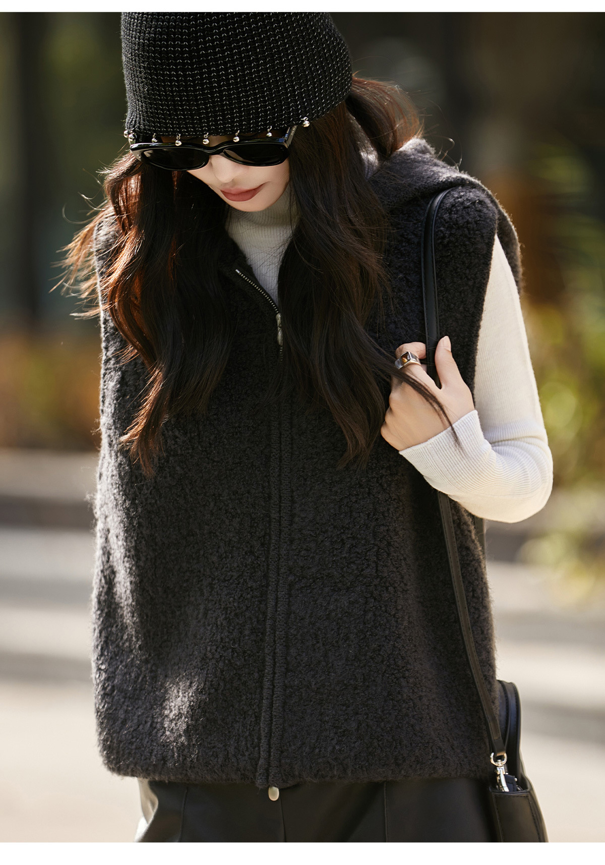 丁摩 100%纯羊毛马甲女外搭拉链连帽背心 PY-5158