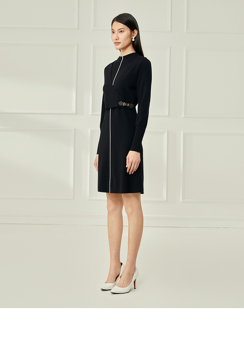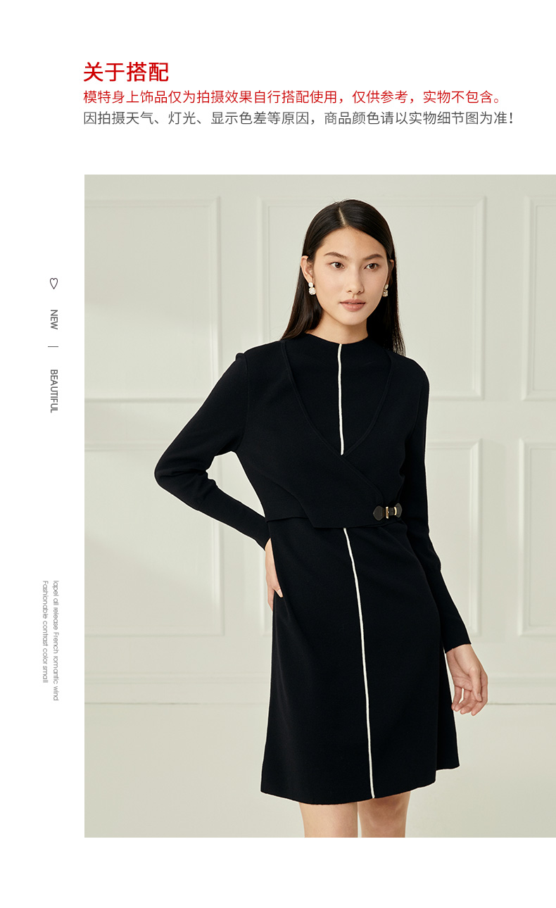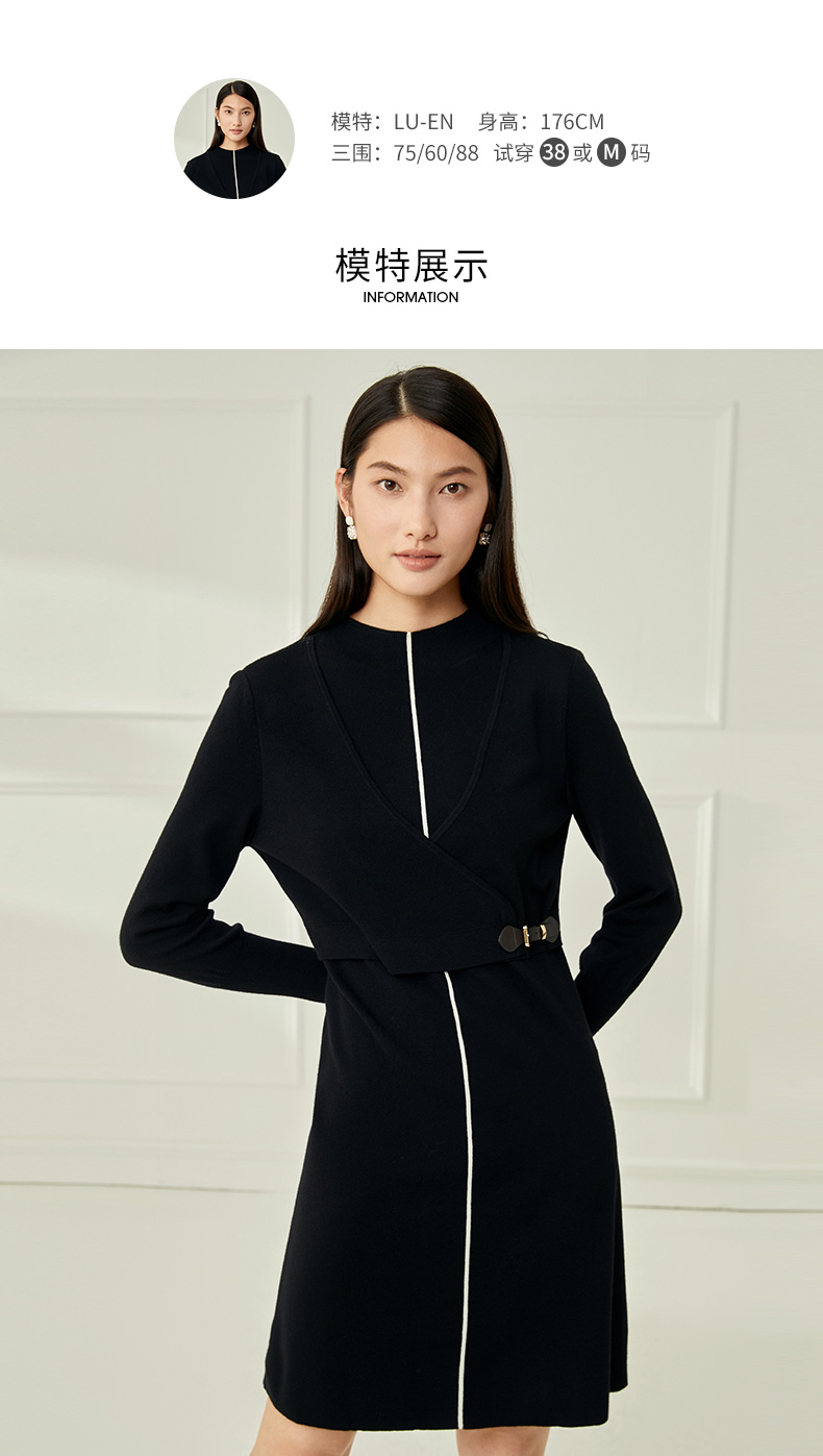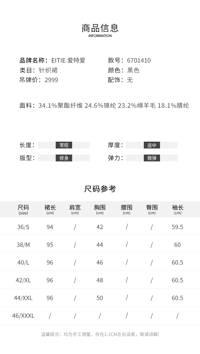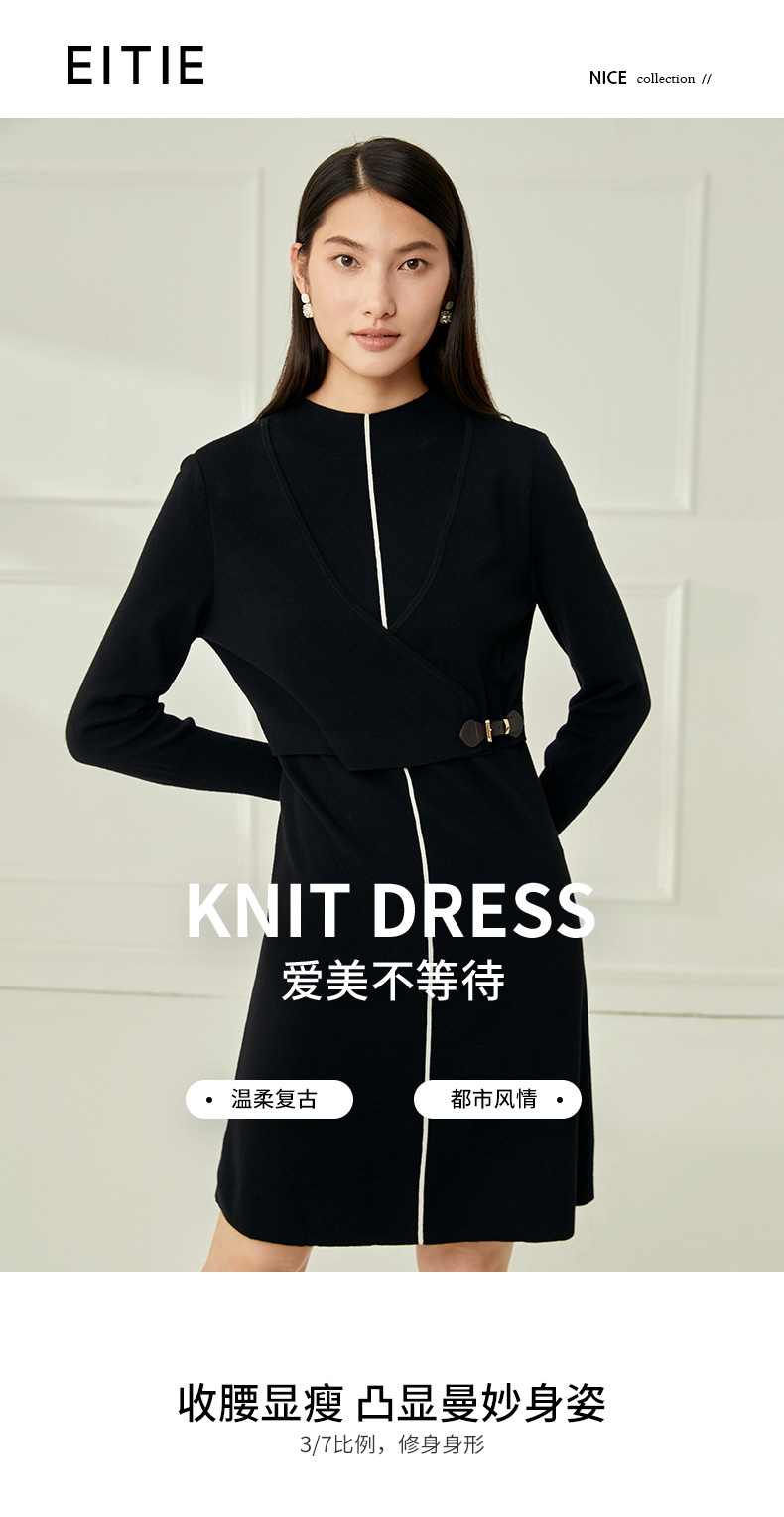 EITIE爱特爱秋季新款女装半高领修身显瘦打底针织衫连衣裙6701410