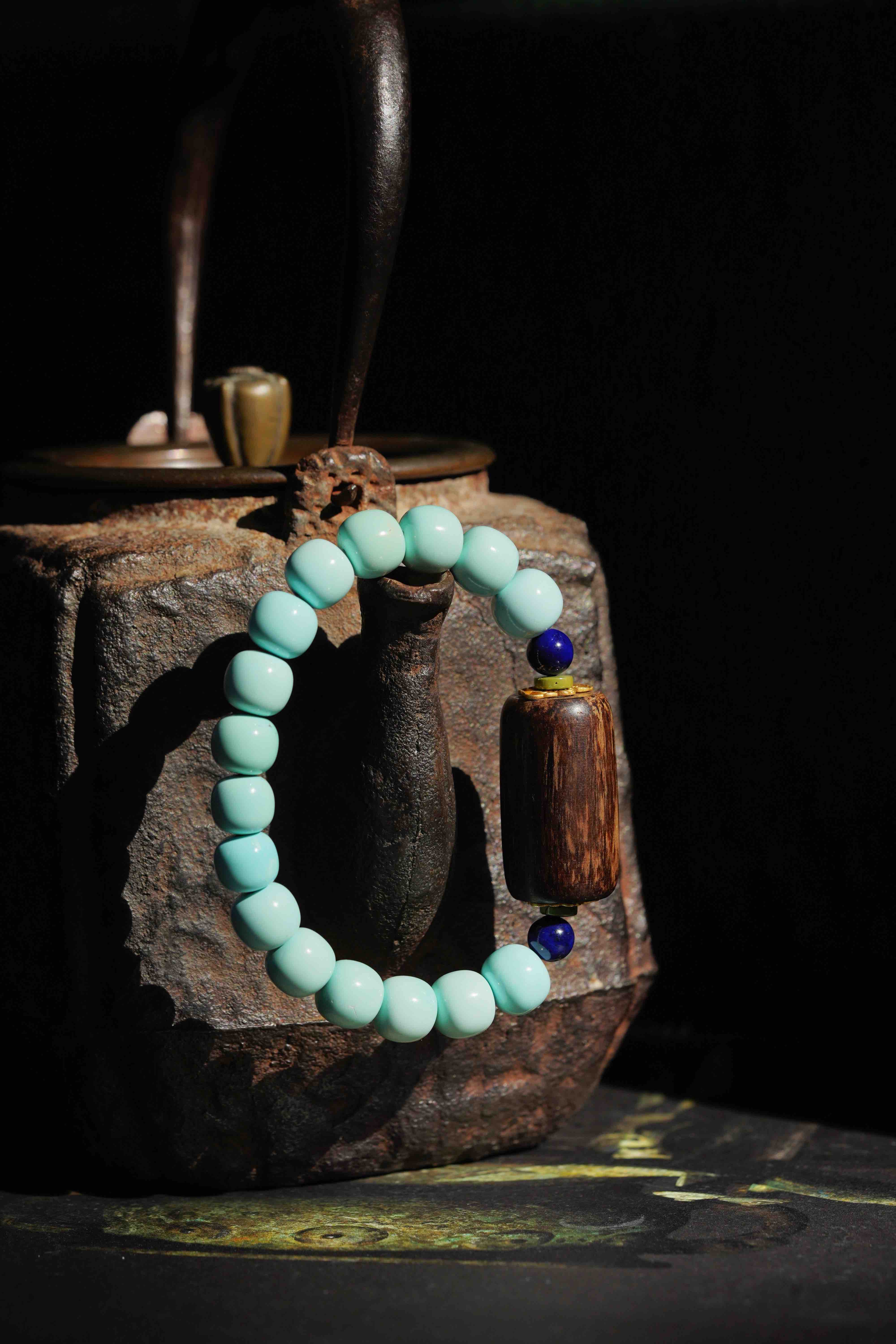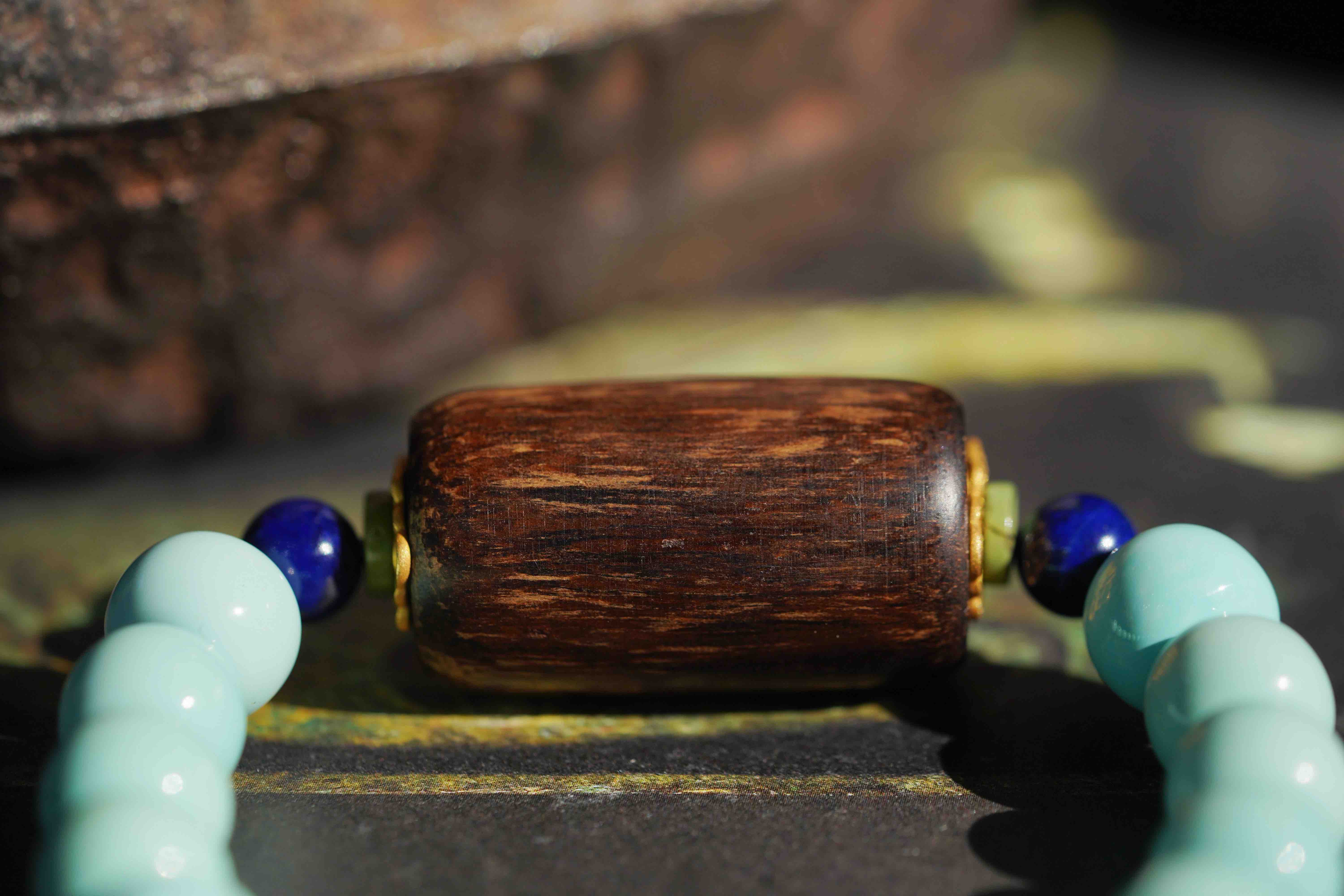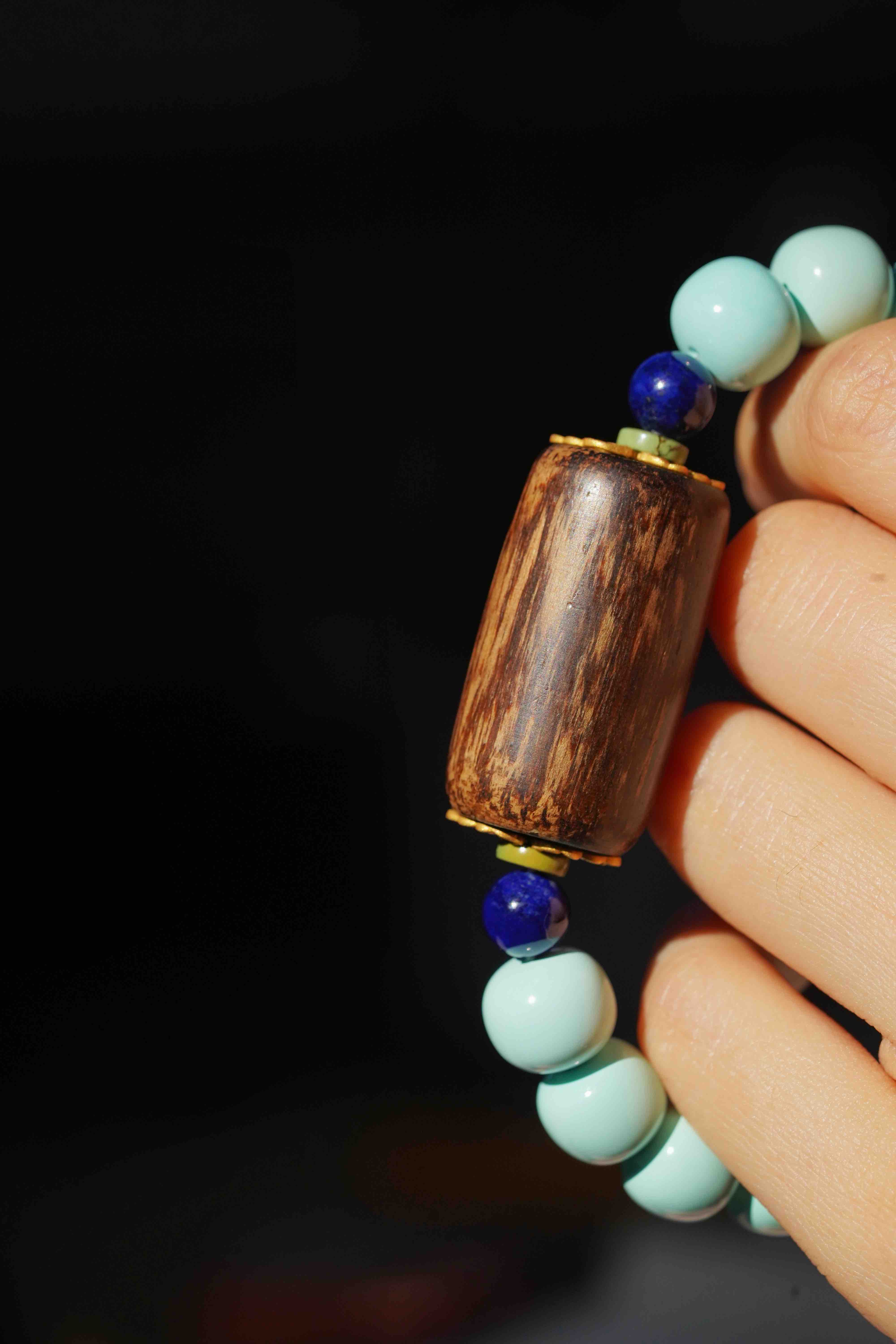 沉香绿松手串