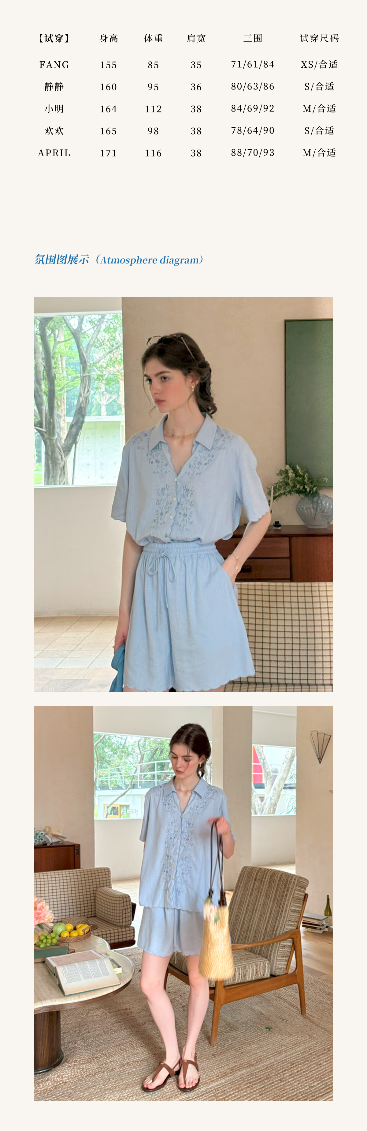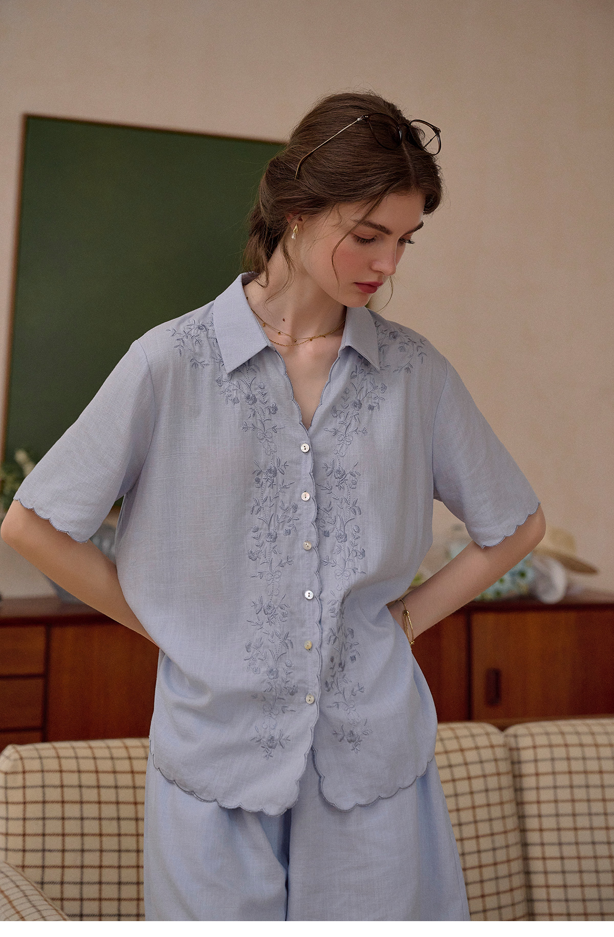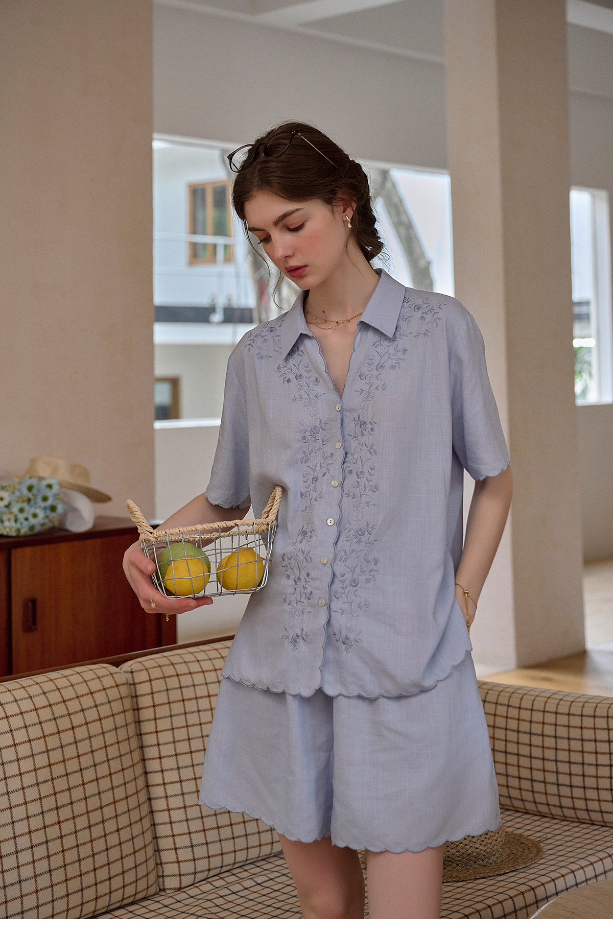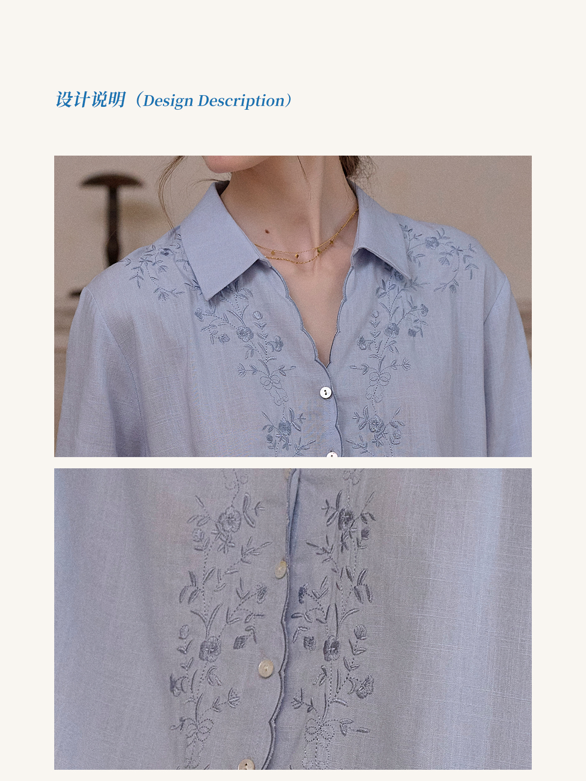(小眠专属)SimpleRetro柔感亚麻复古刺绣纹理感套装女