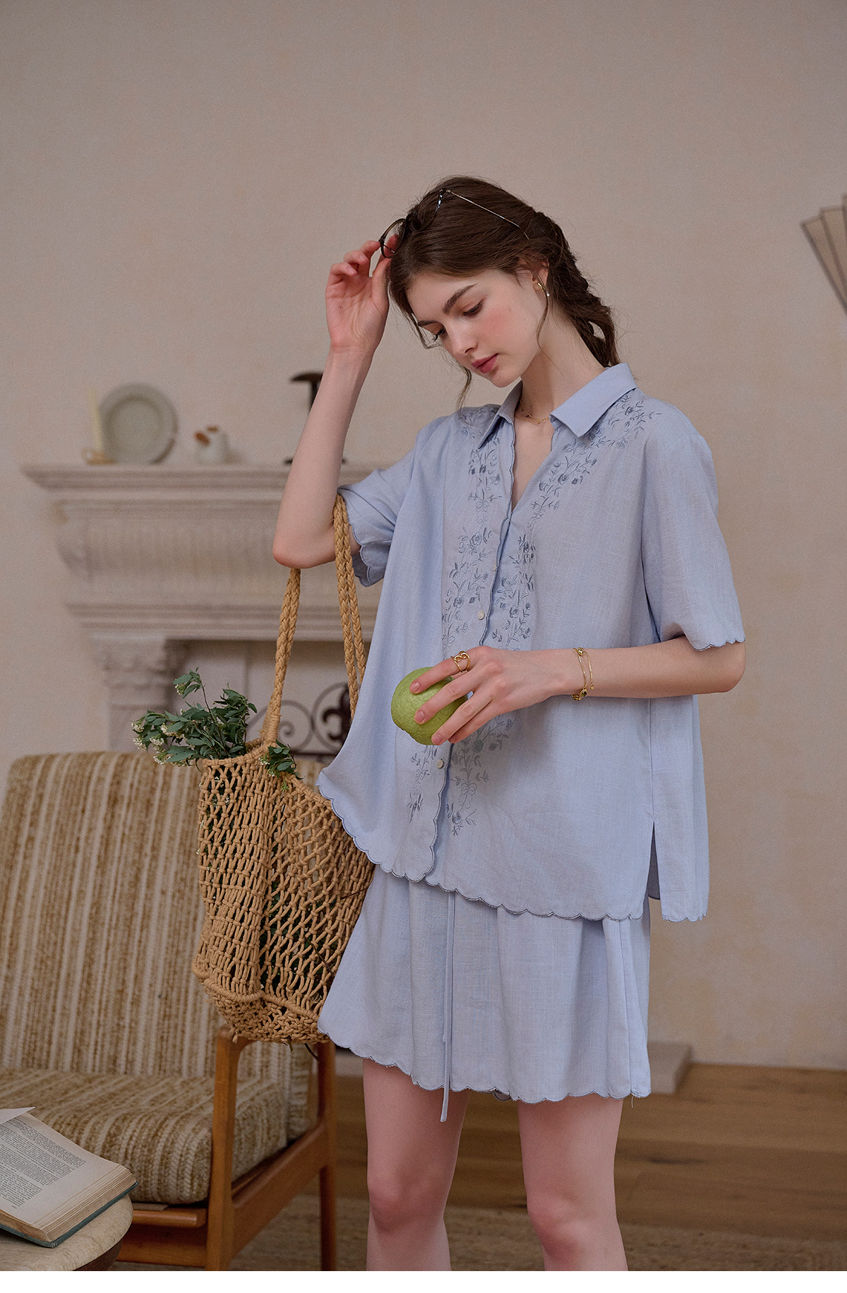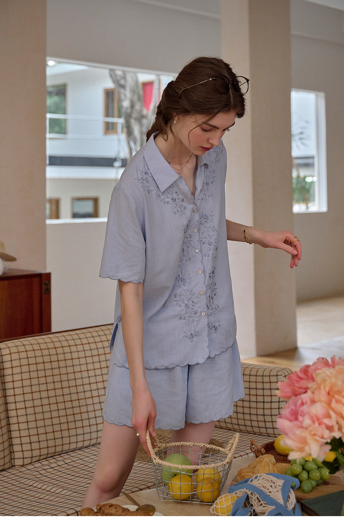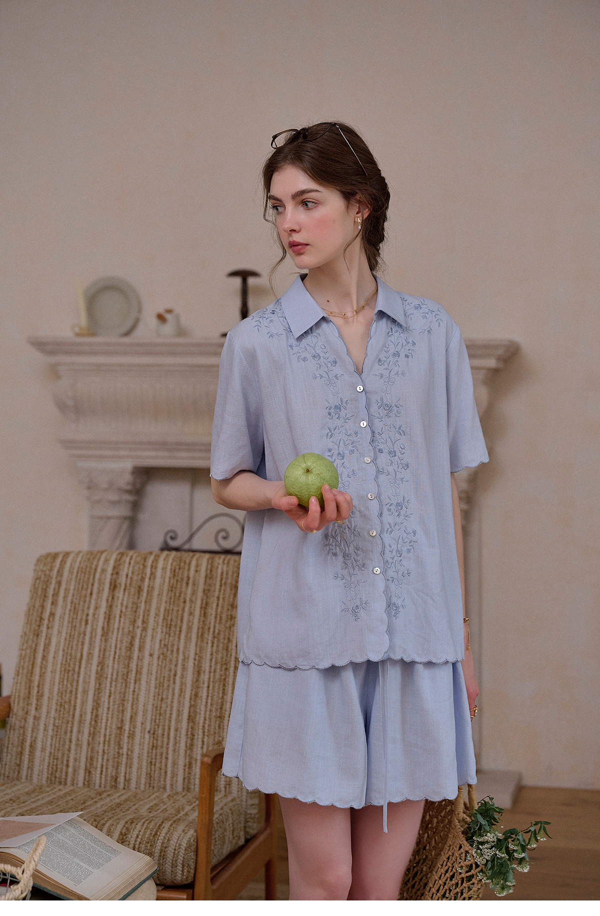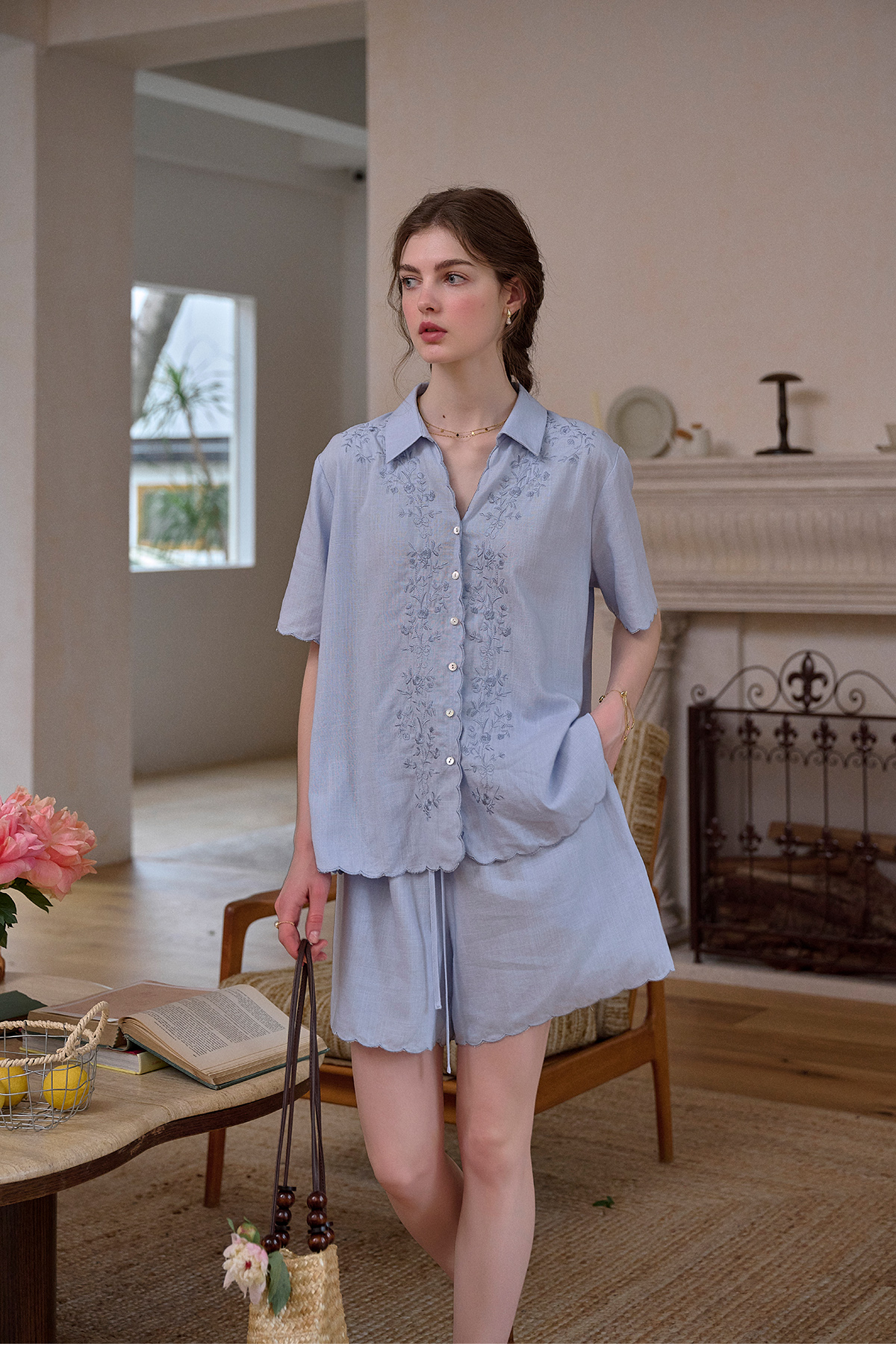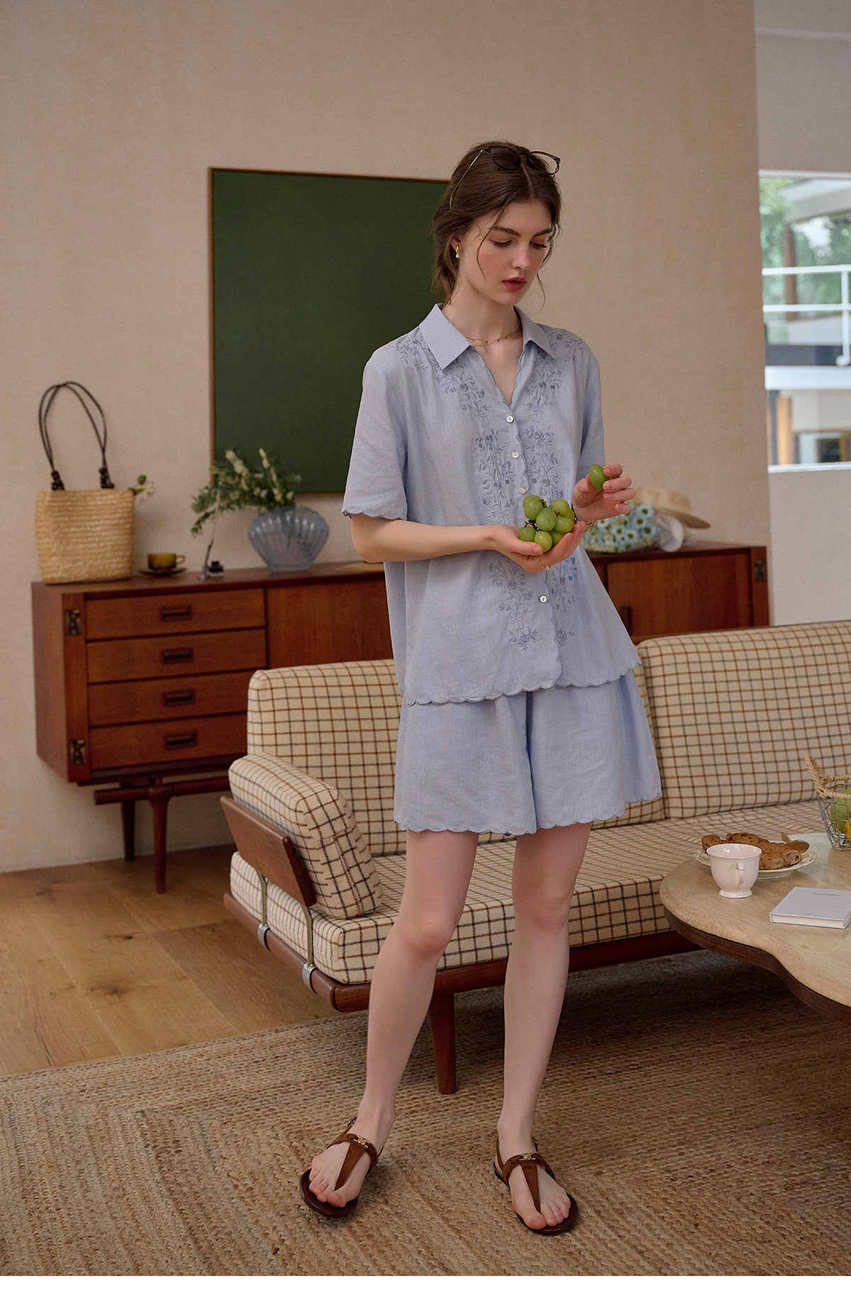 (小眠专属)SimpleRetro柔感亚麻复古刺绣纹理感套装女