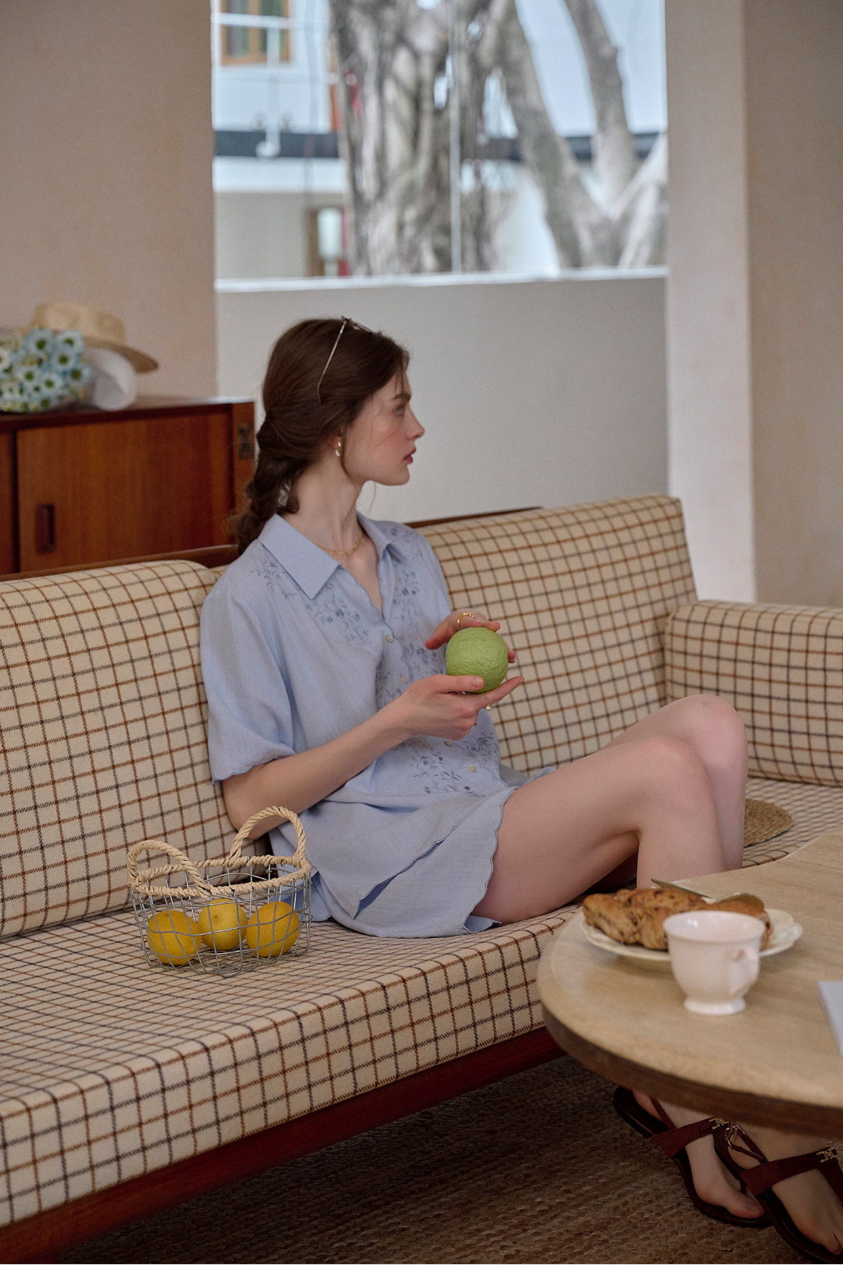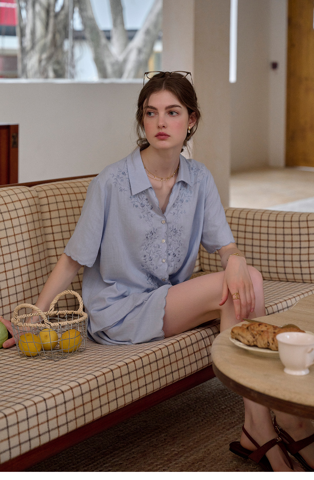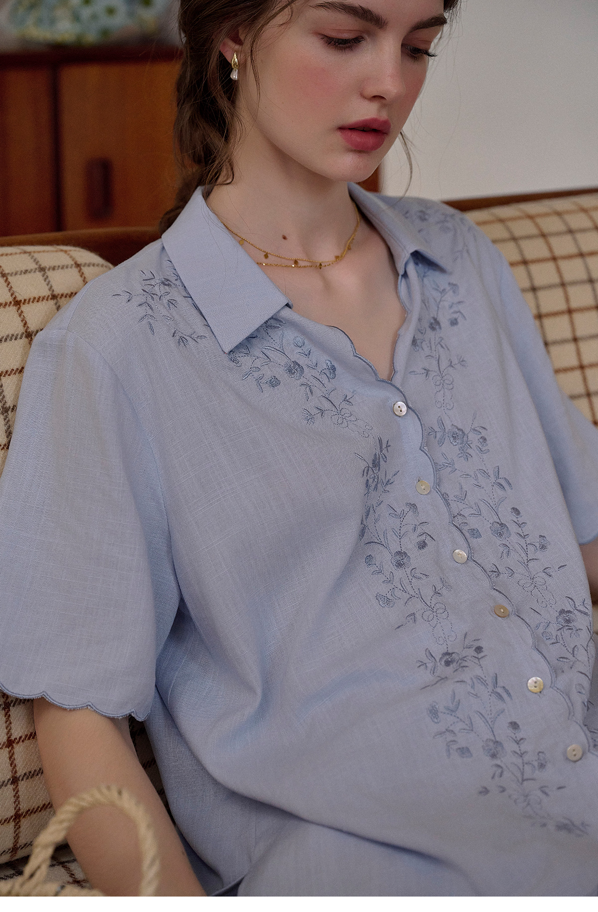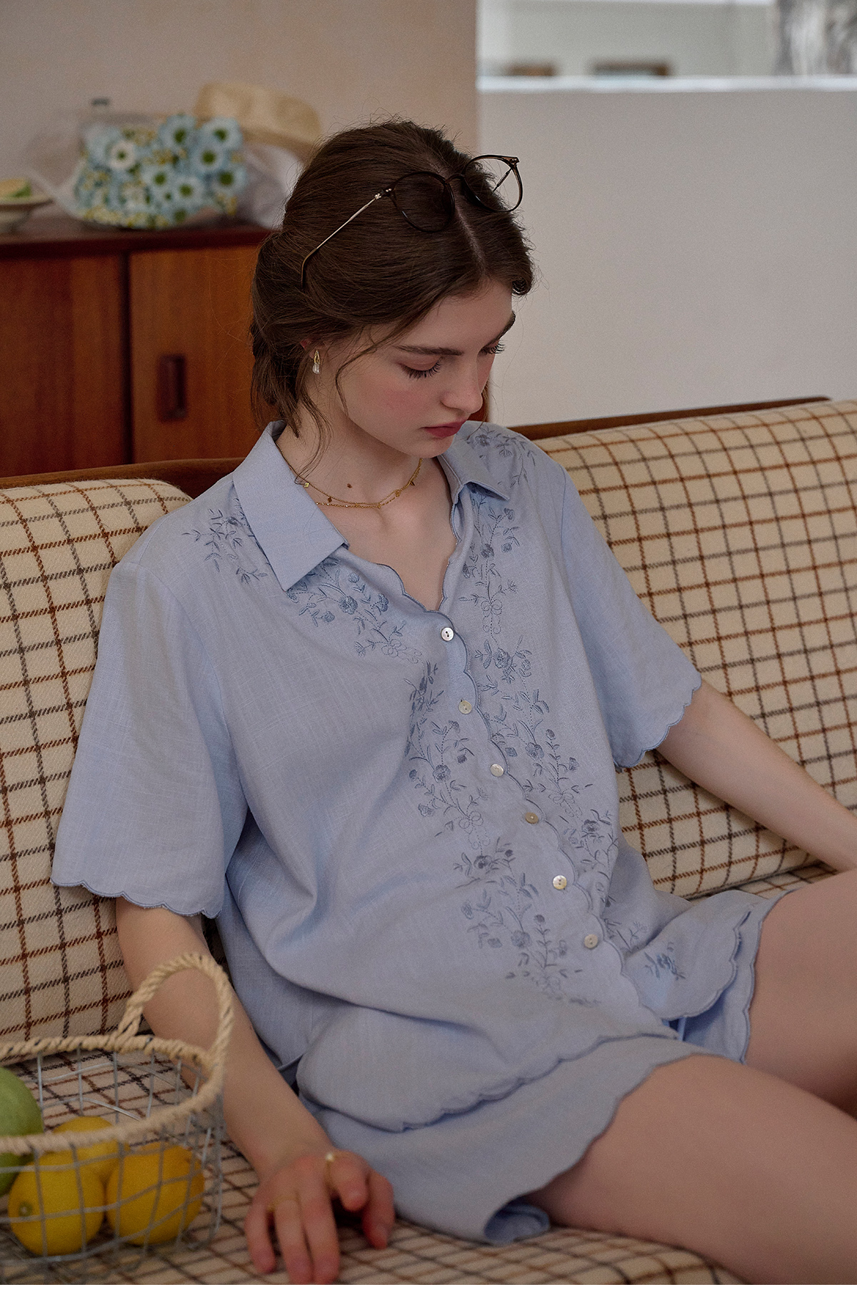 (小眠专属)SimpleRetro柔感亚麻复古刺绣纹理感套装女