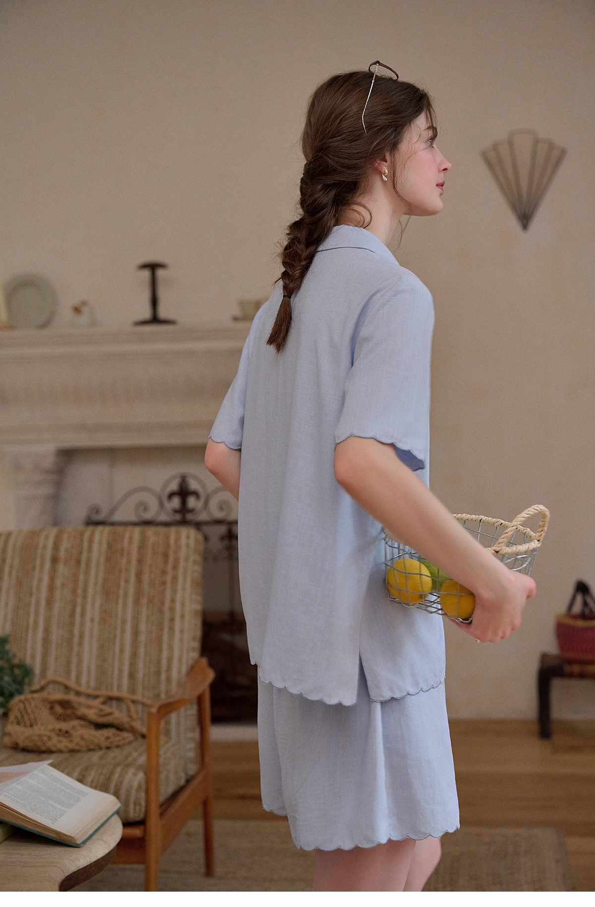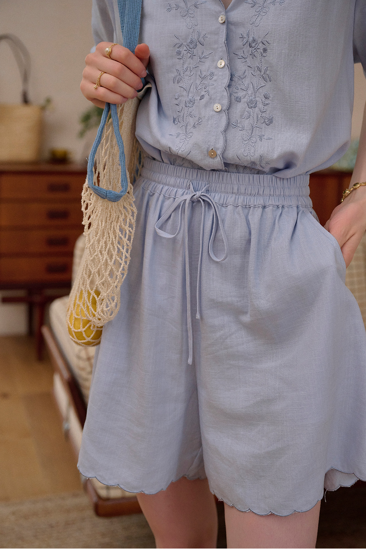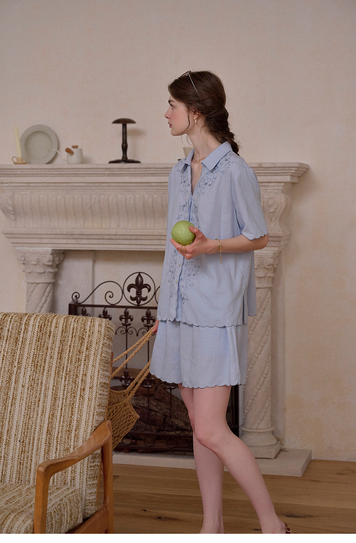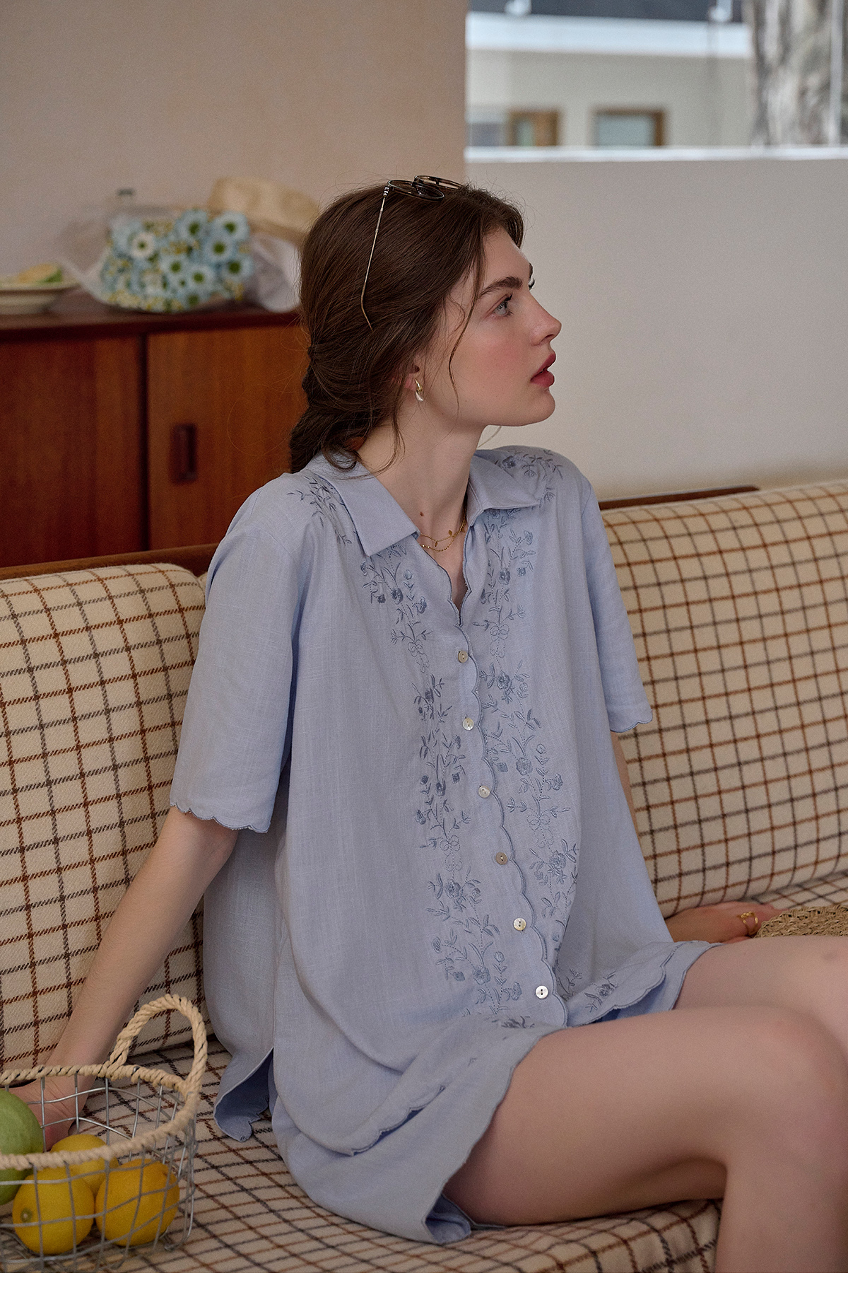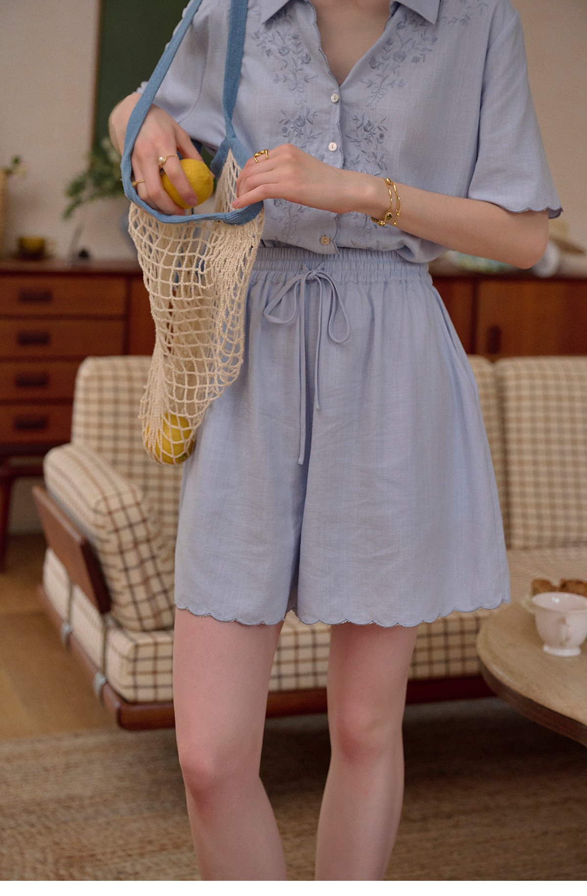 (小眠专属)SimpleRetro柔感亚麻复古刺绣纹理感套装女
