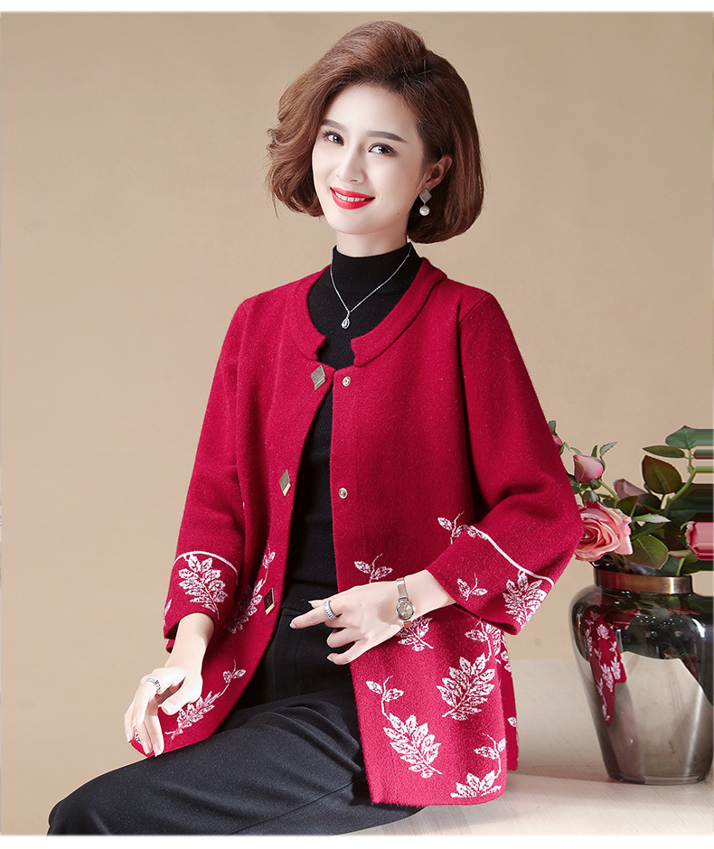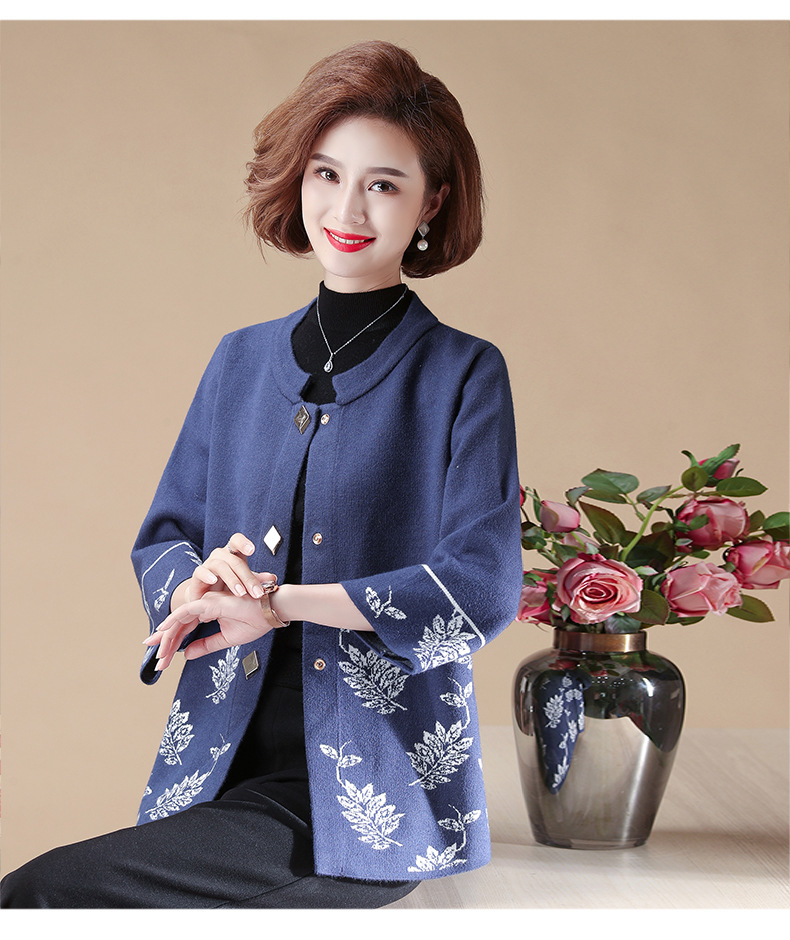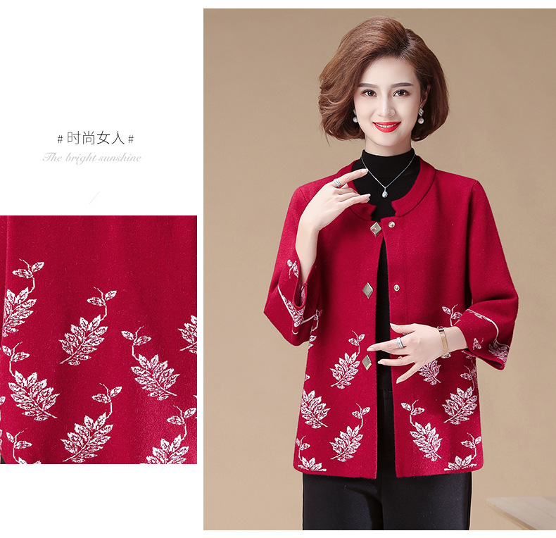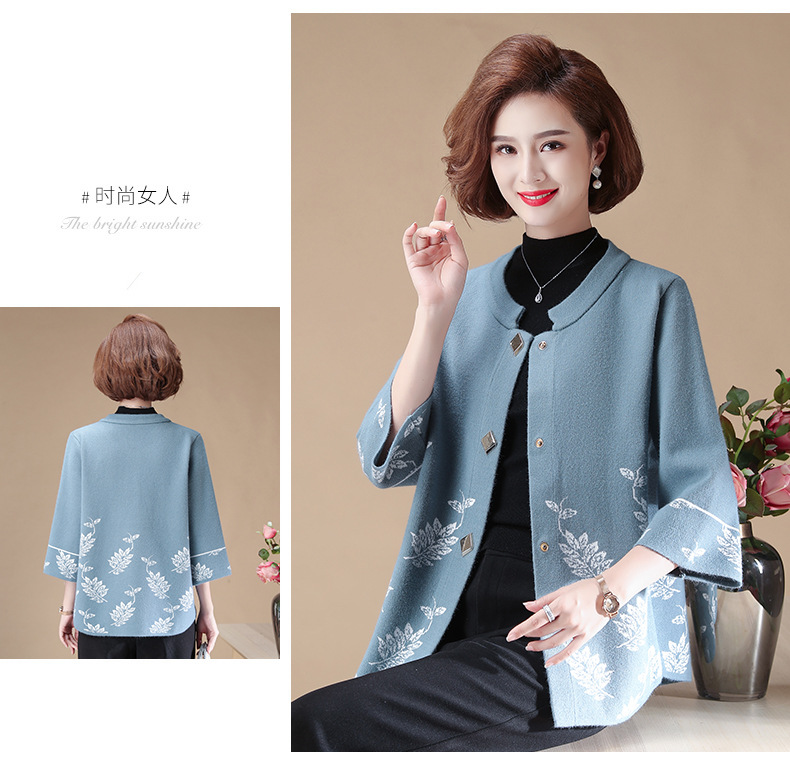 ZFFS-ZJ-HW-902洋气长袖外套上衣中老年薄款针织开衫
