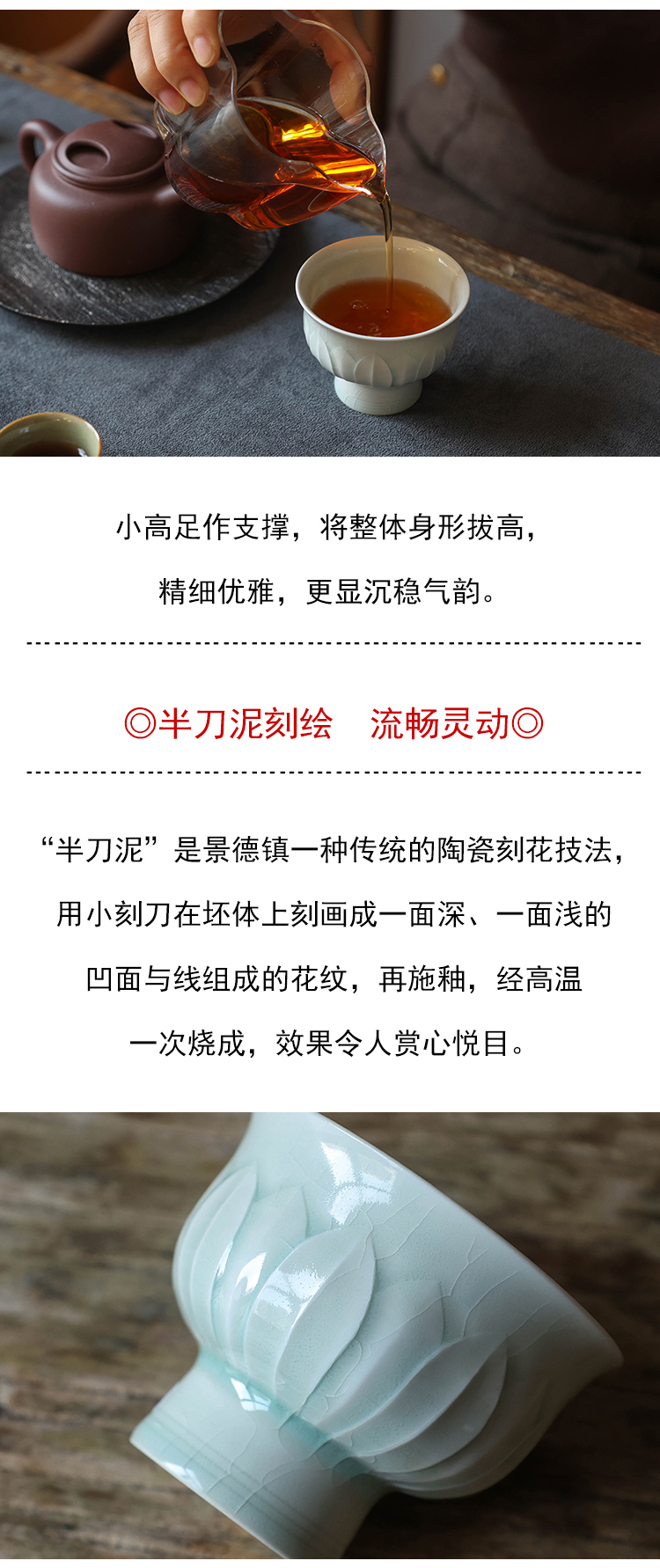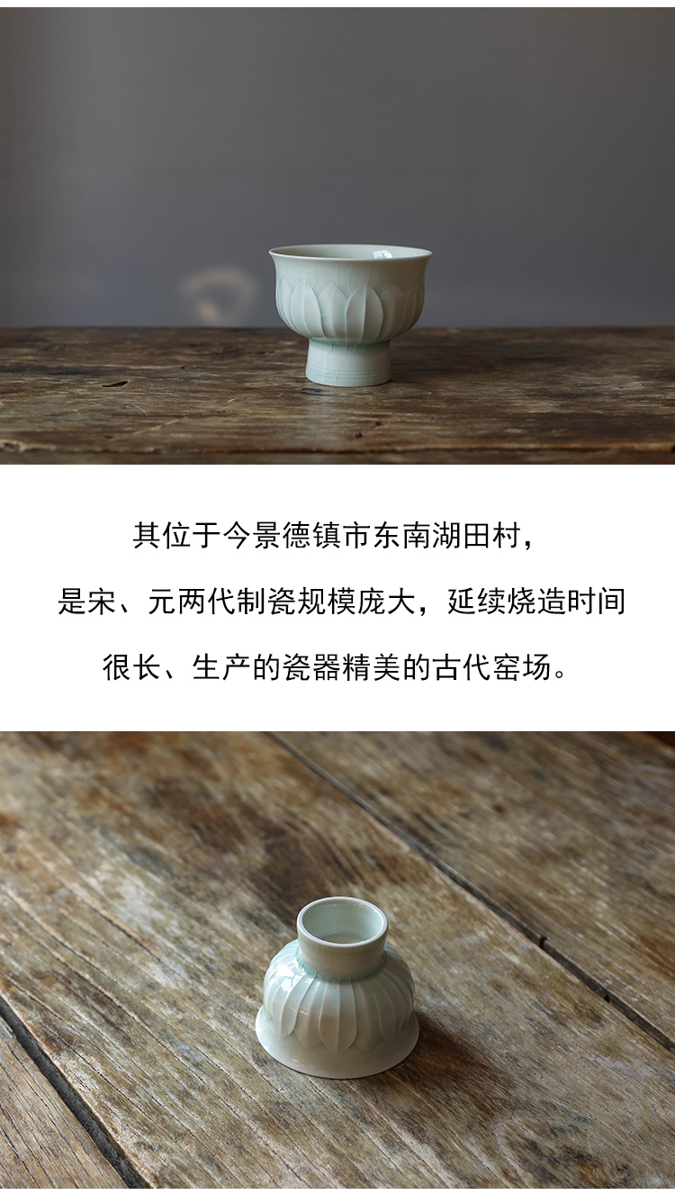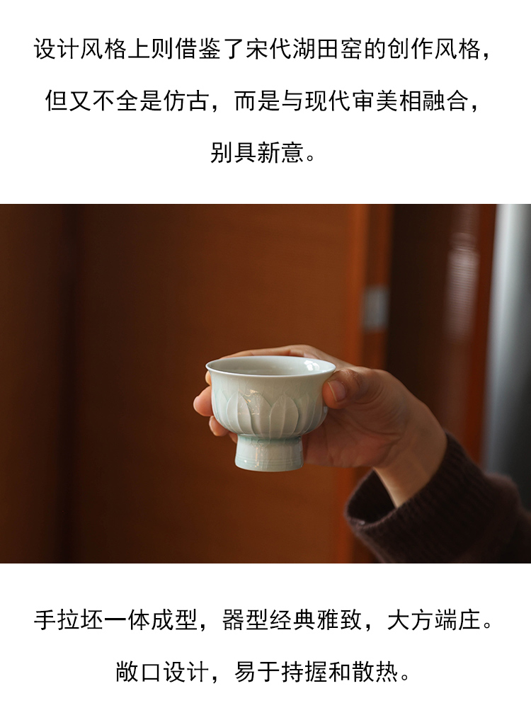 茶香记 湖田窑主人杯青釉莲花杯80ml开片灵动高足茶杯清雅主人杯