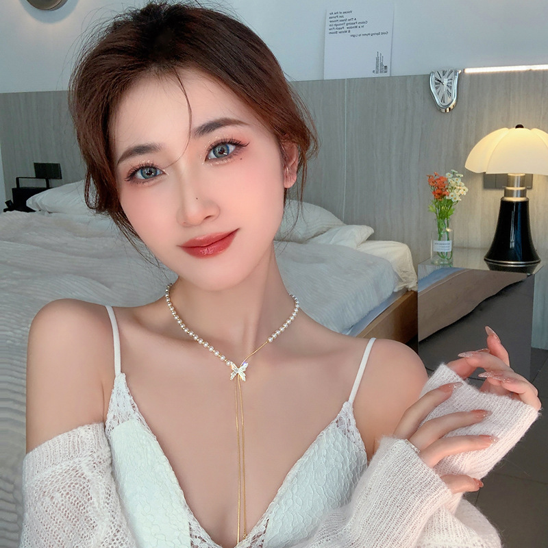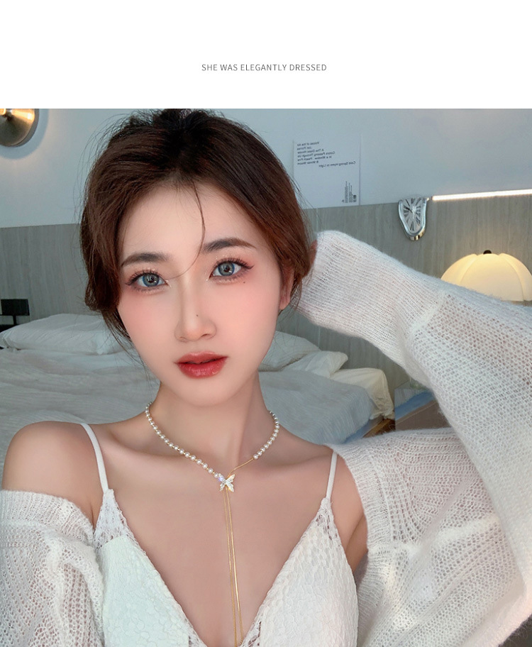 PD-X880蝴蝶珍珠项链可调节流苏吊坠锁骨链
